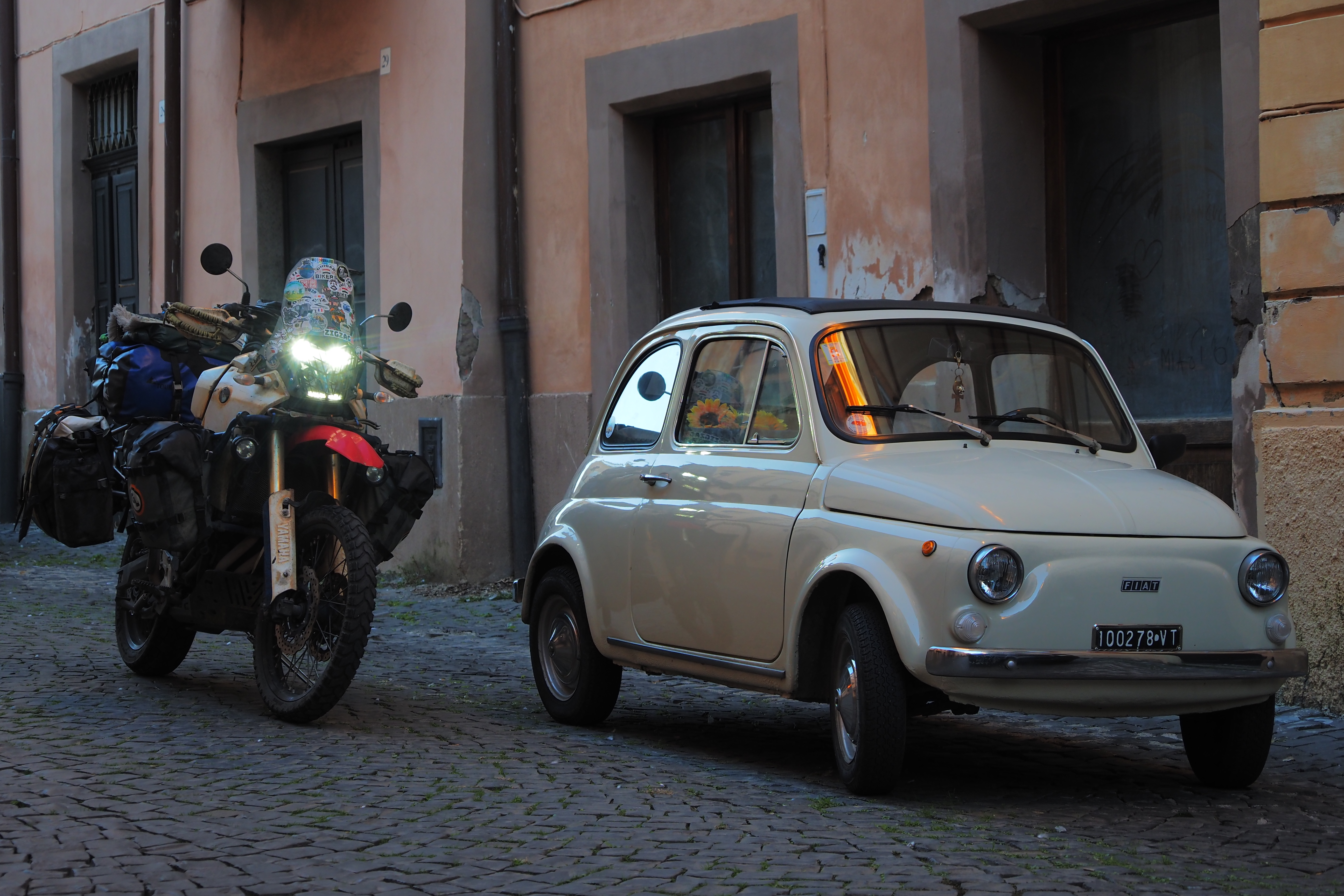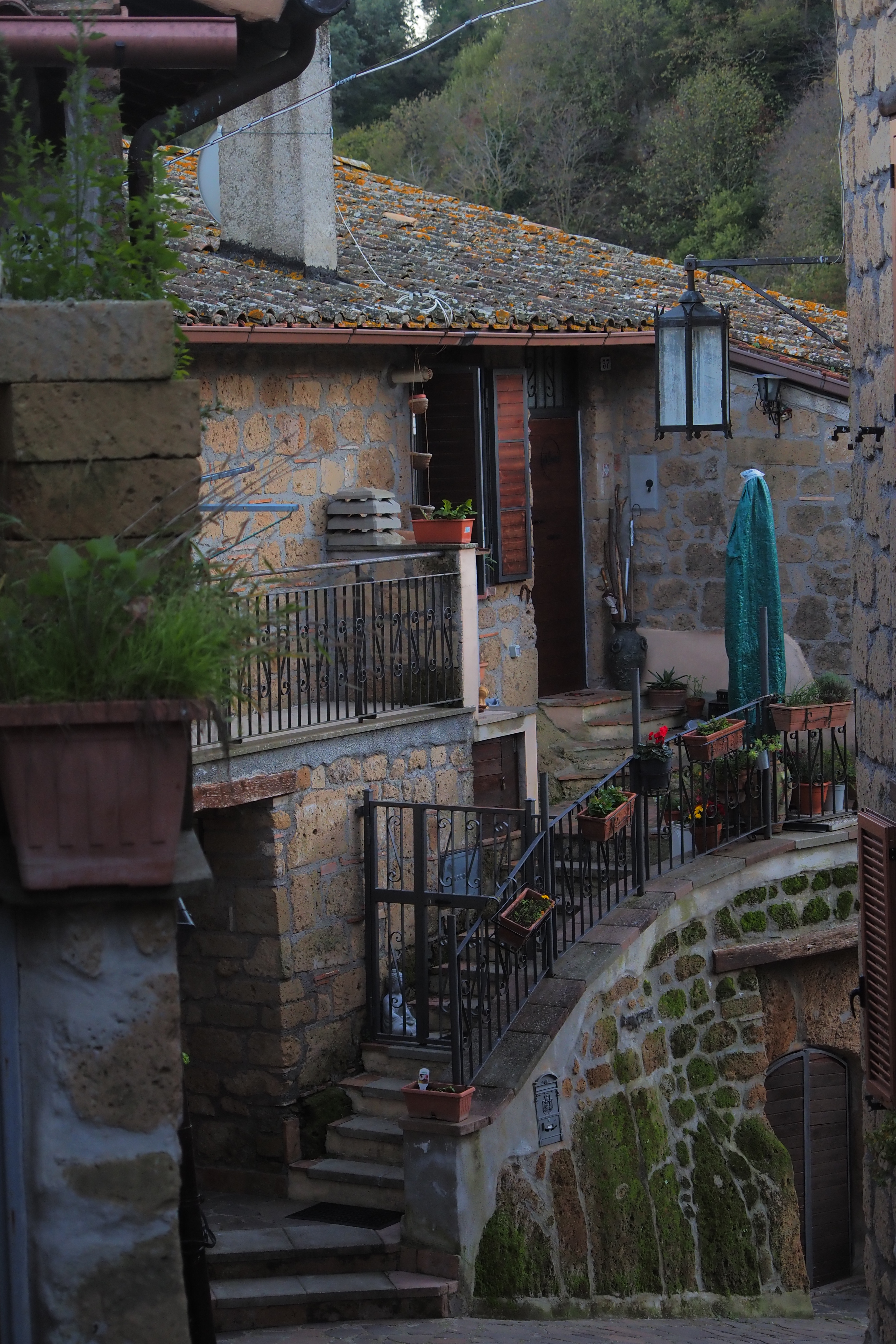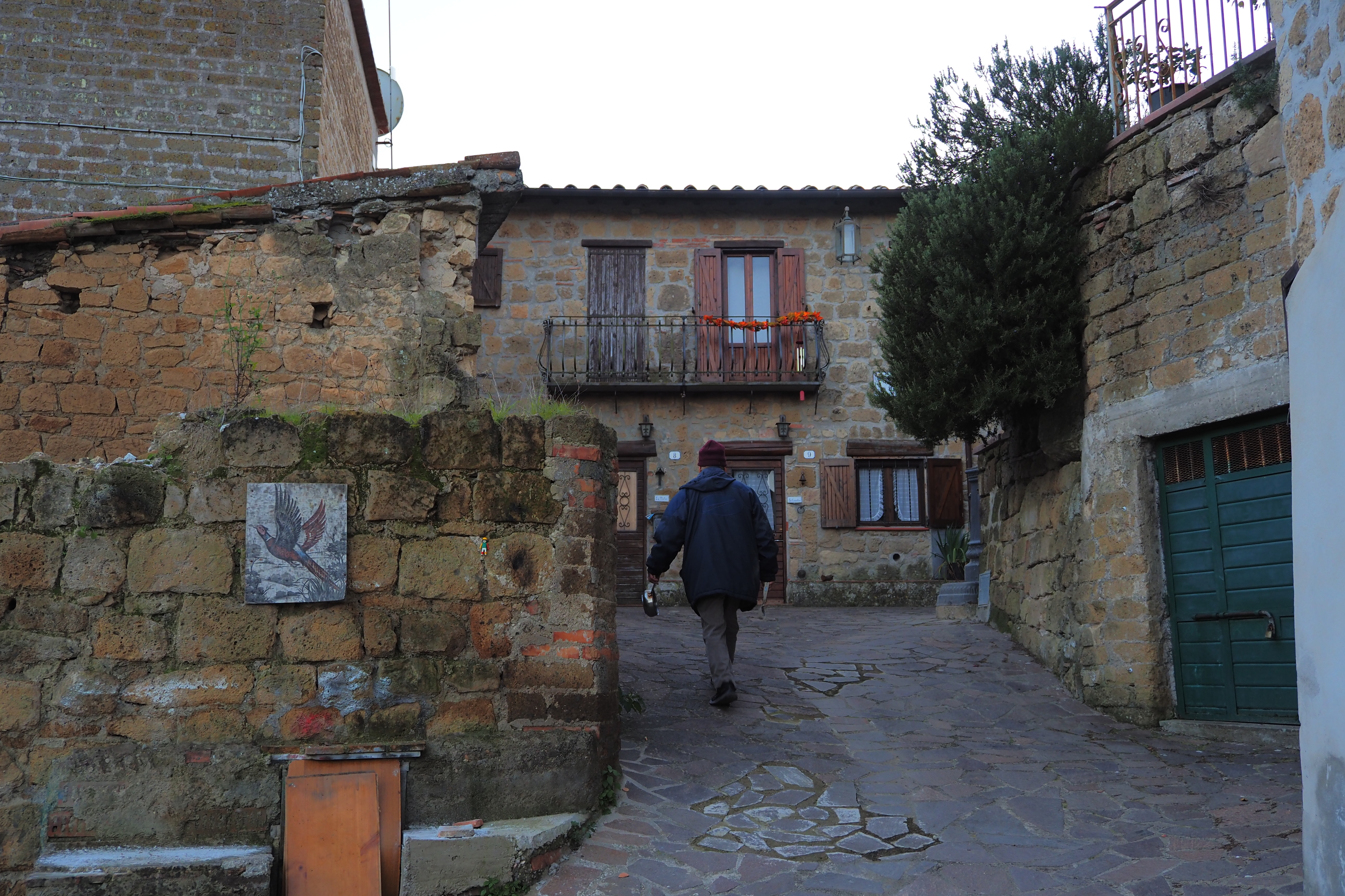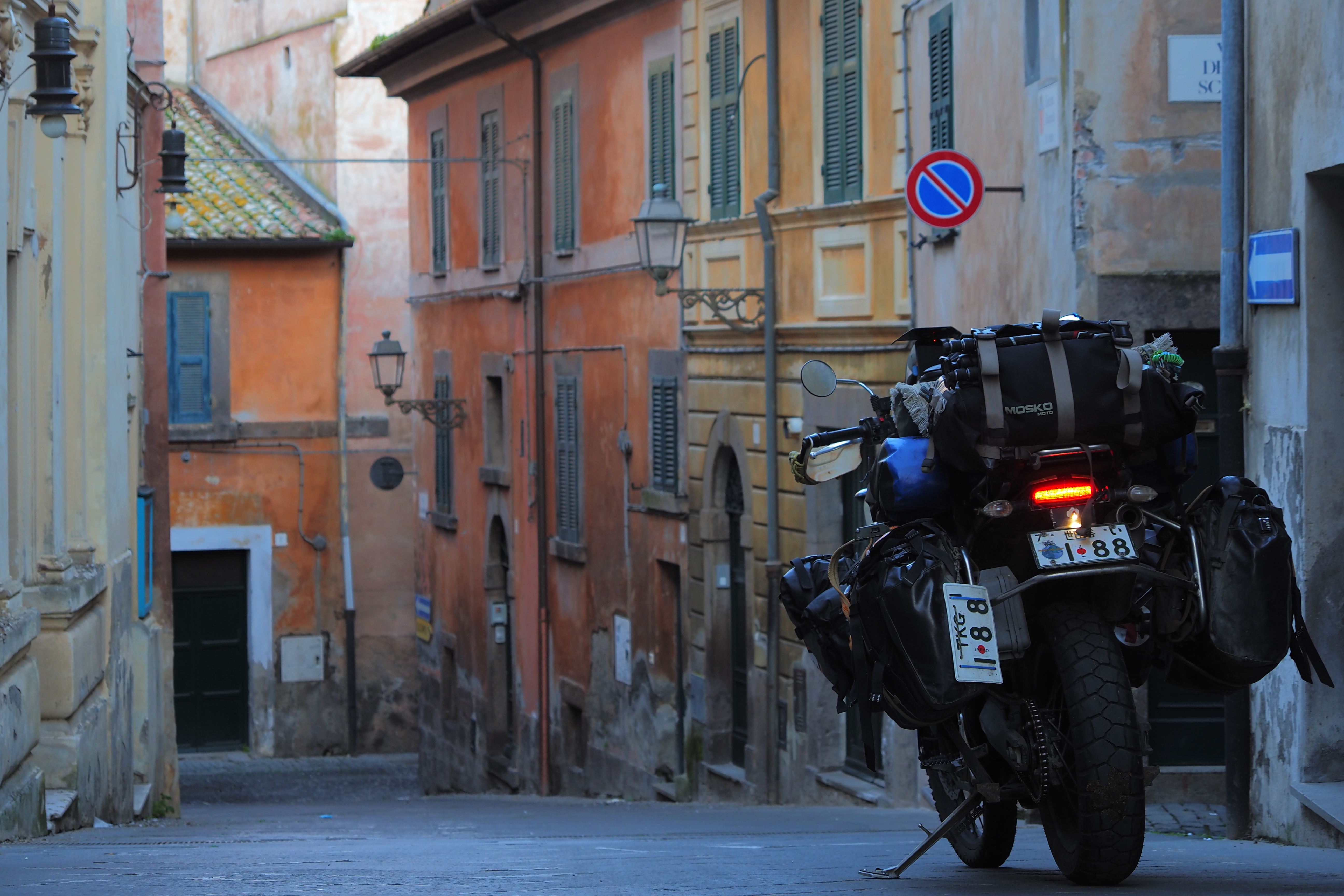 日が暮れそうなこの時間帯と、トゥスカーニアの味わい深いやれた壁面が相まって最高にいい雰囲気じゃないか。