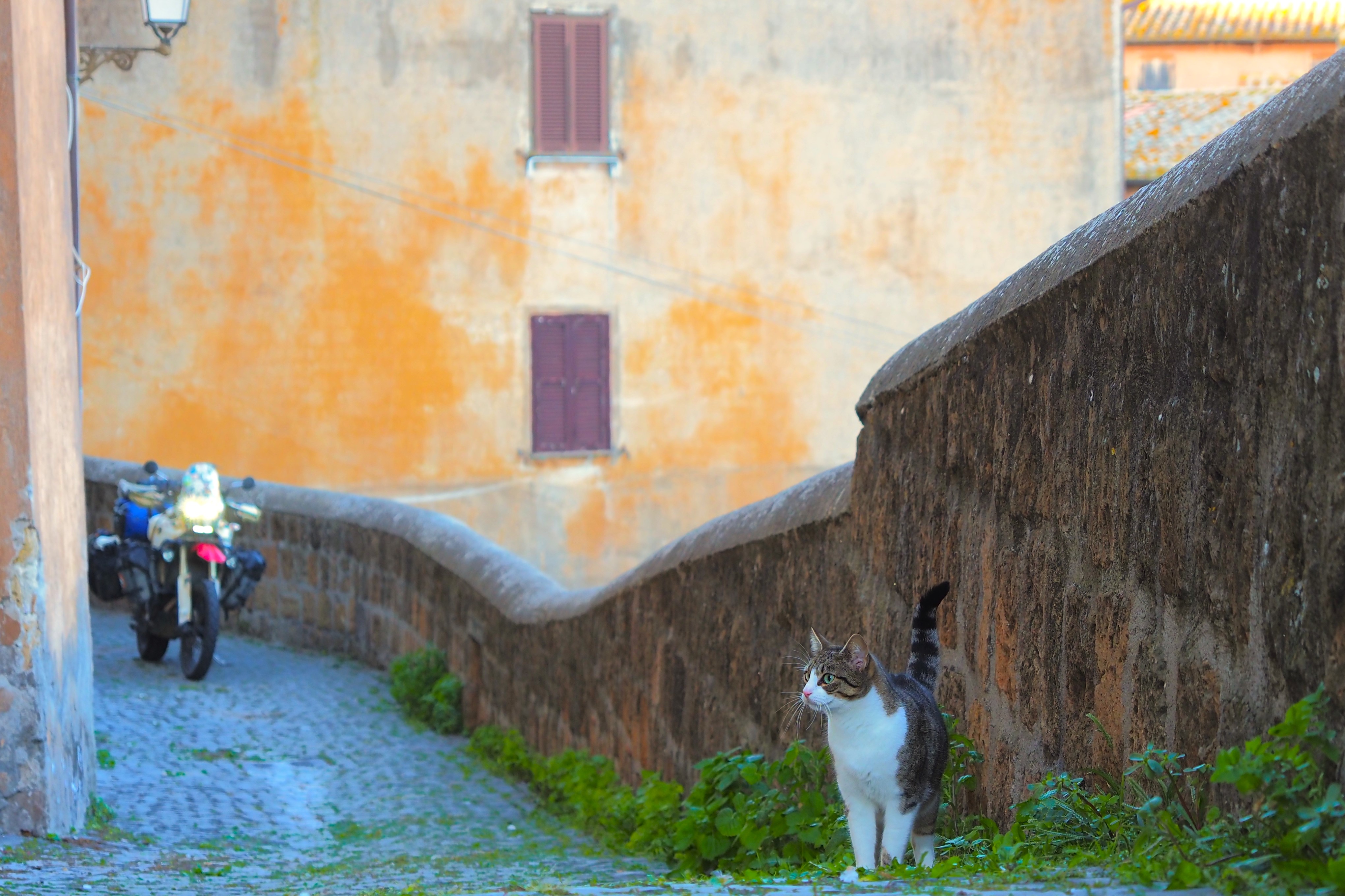狭い路地、すり減ったパステルカラーの壁、石畳、そして猫。