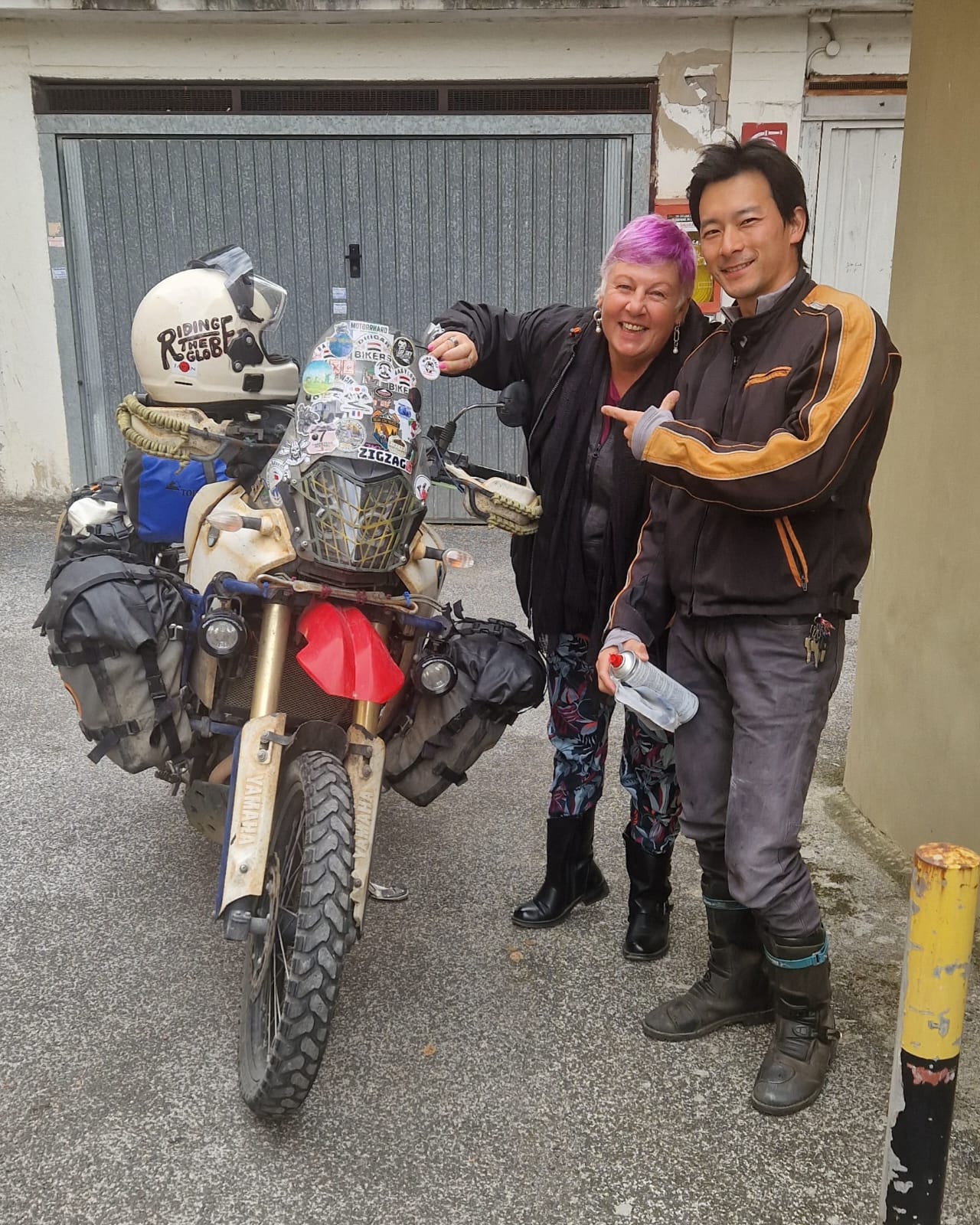出発時に持ってきたジャンプスターターは途中で膨張したので破棄しちゃったし、仕方がないから荷物を少し下ろして押しがけしようとするけどなかなか厳しい。