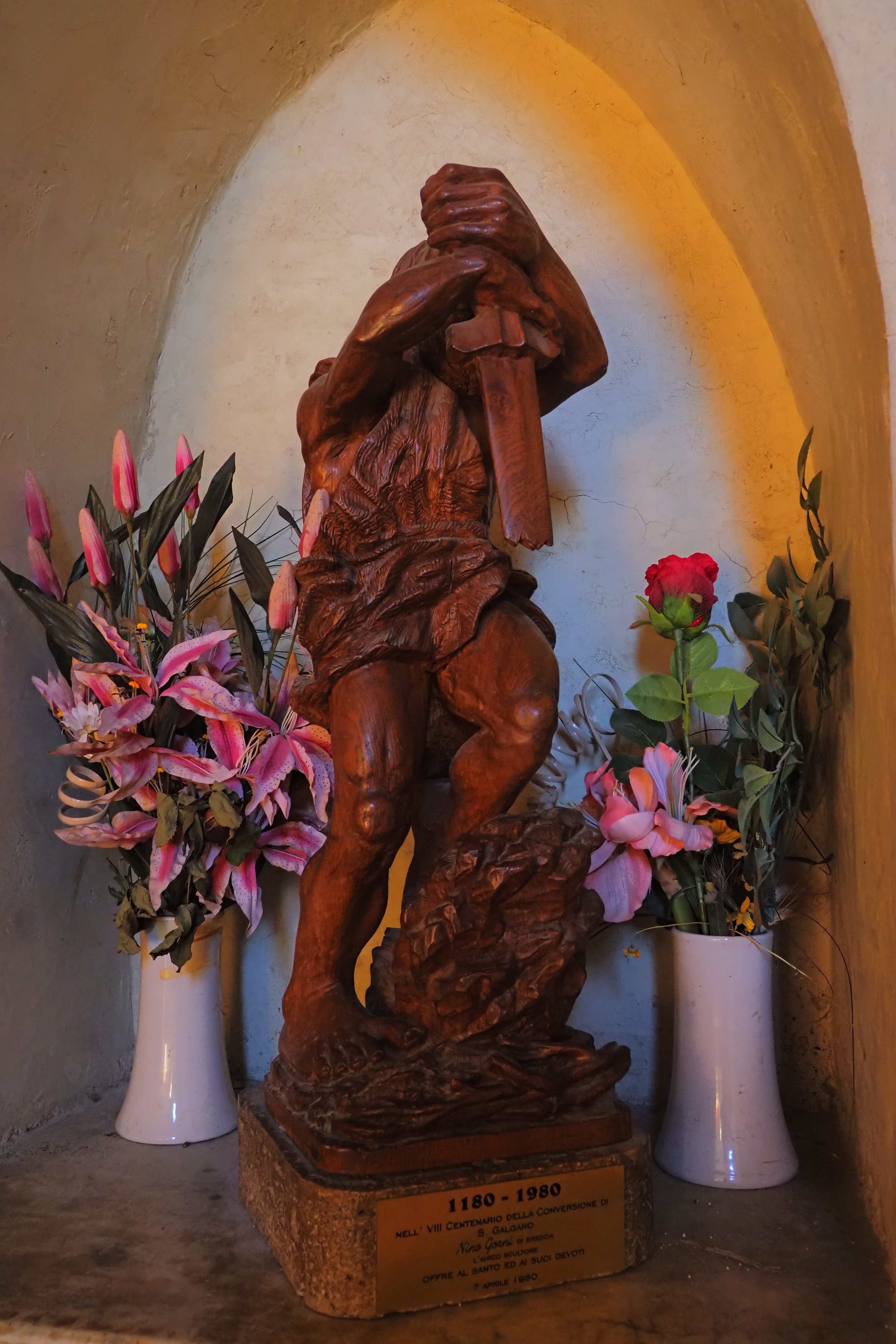 この礼拝堂建設の由縁となった騎士 聖ガルガーノは、当初暴力的で享楽的な生活を送っていたらしい。そんな彼は 大天使ミカエルの啓示を受けて改心を決意。ここモンテシエピの丘に建てた小屋で隠遁生活を始めたという。