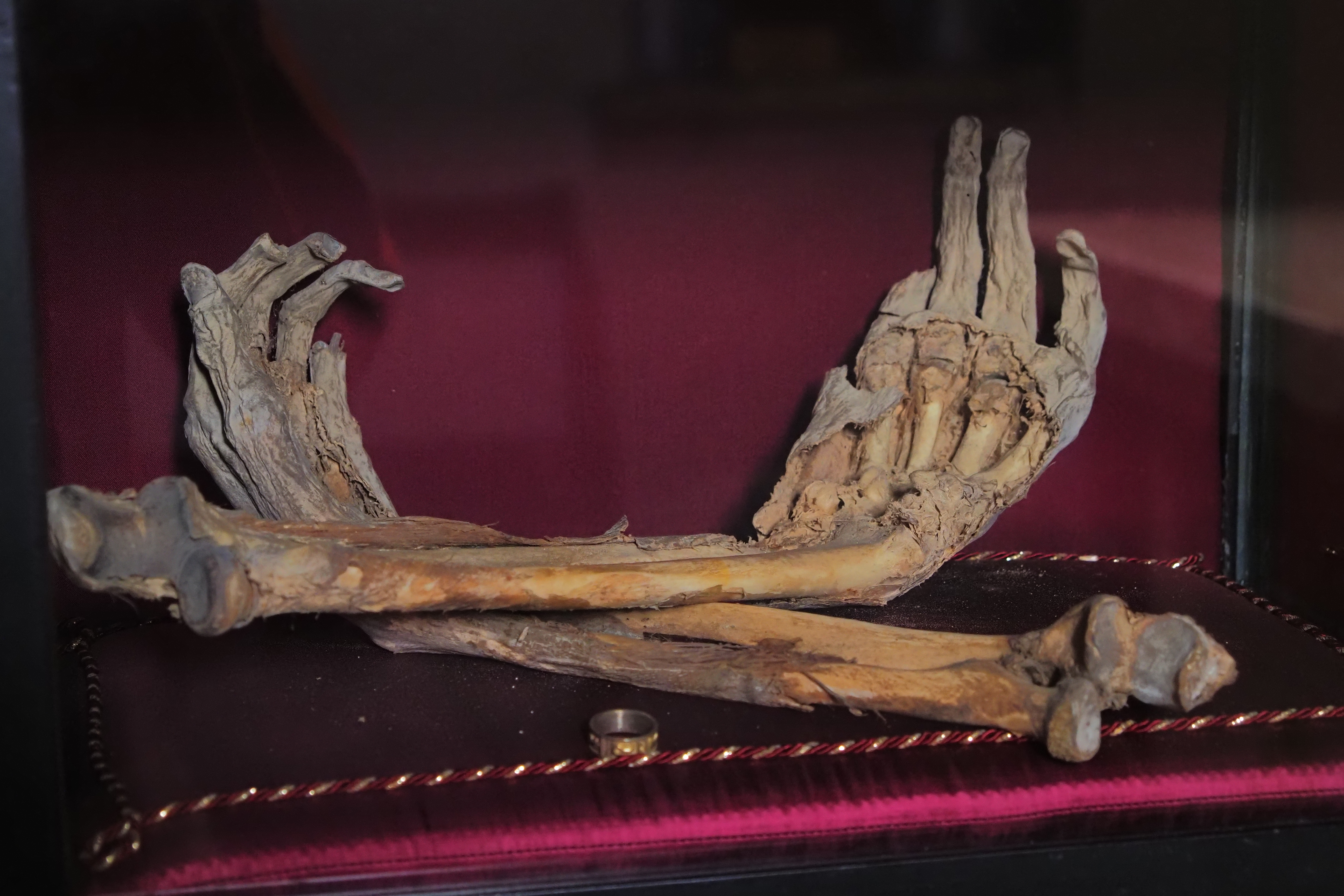 礼拝堂内でもうひとつ異様な展示物は、この両腕のミイラ。