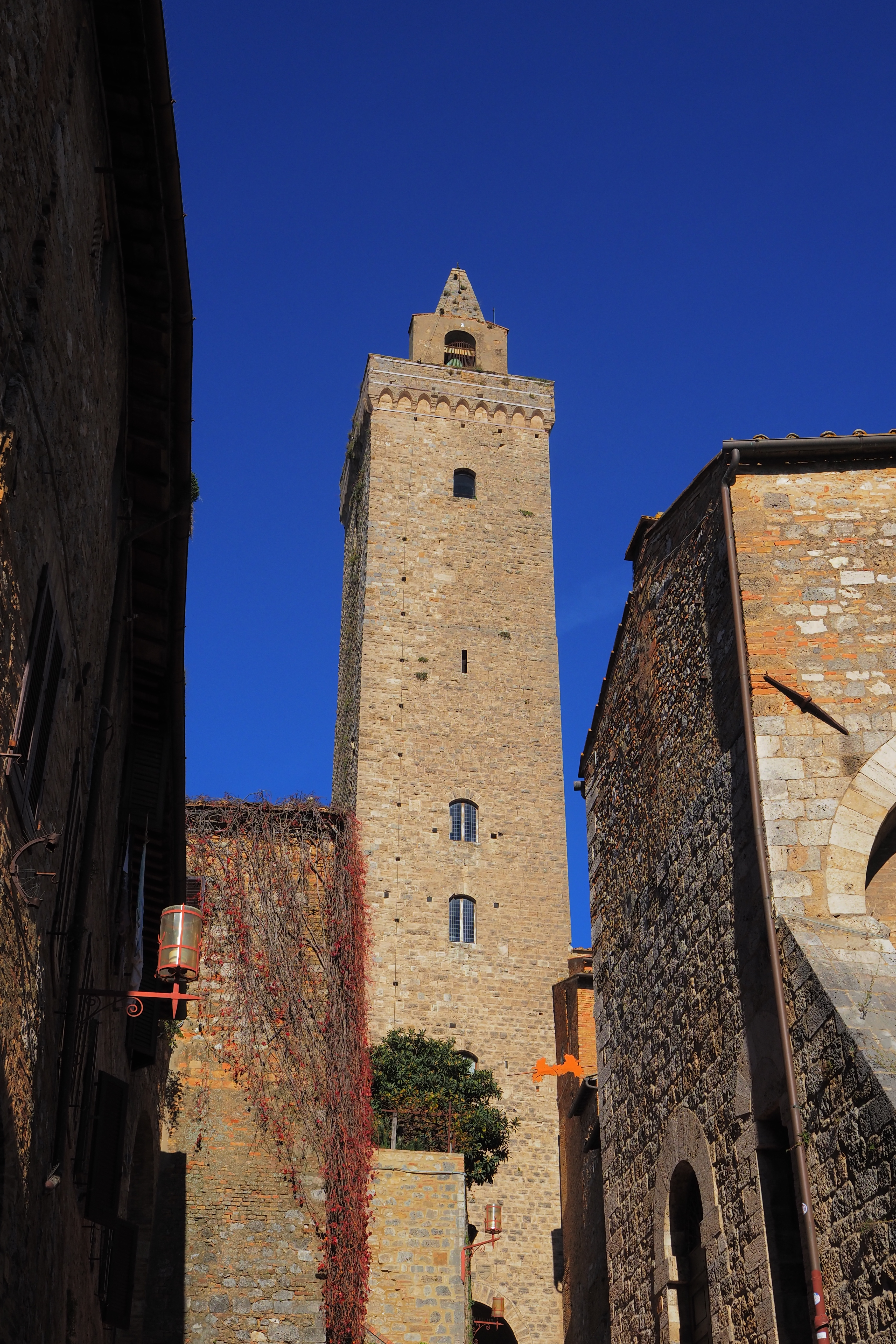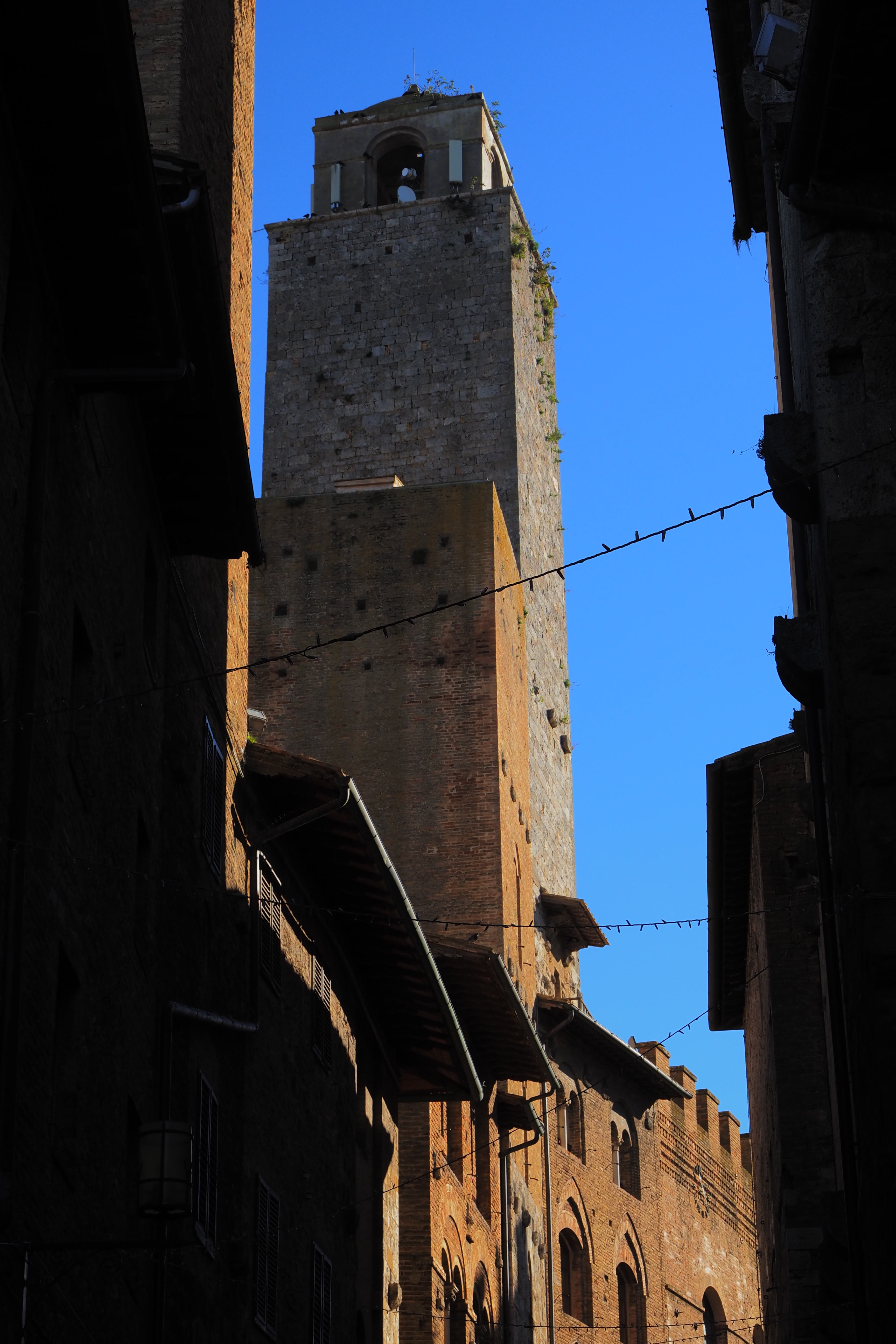 サン・ジミニャーノは「中世のマンハッタン」と比喩されることもある「塔の街」で、先述の通り交易で財を成した人々が 自らの財力を競うように塔を建てていったらしい。最盛期には70もの塔が聳立していたらしいけど 今では14のみ残っている。写真はその内最大の Torre Grossa; グロッサの塔.
