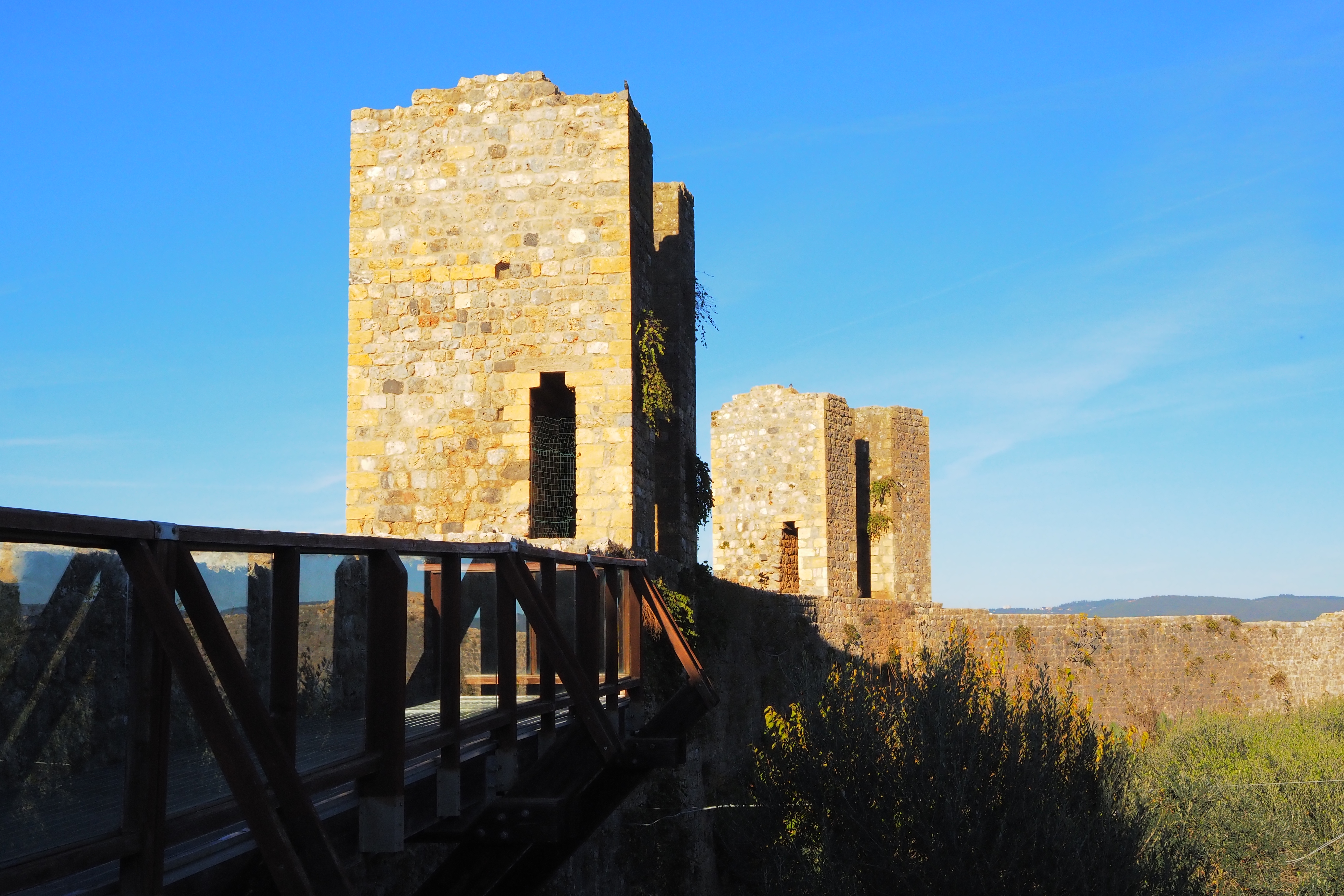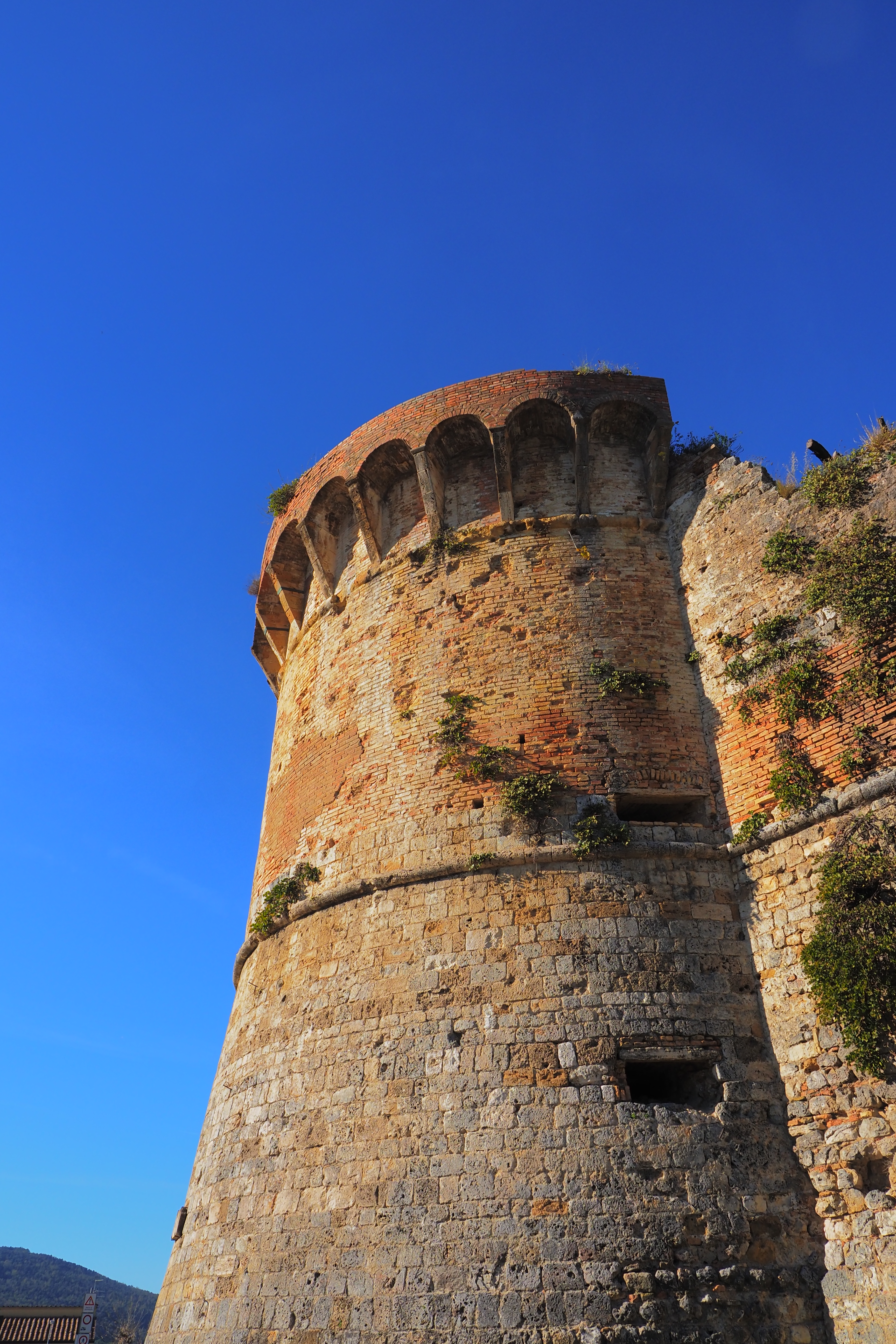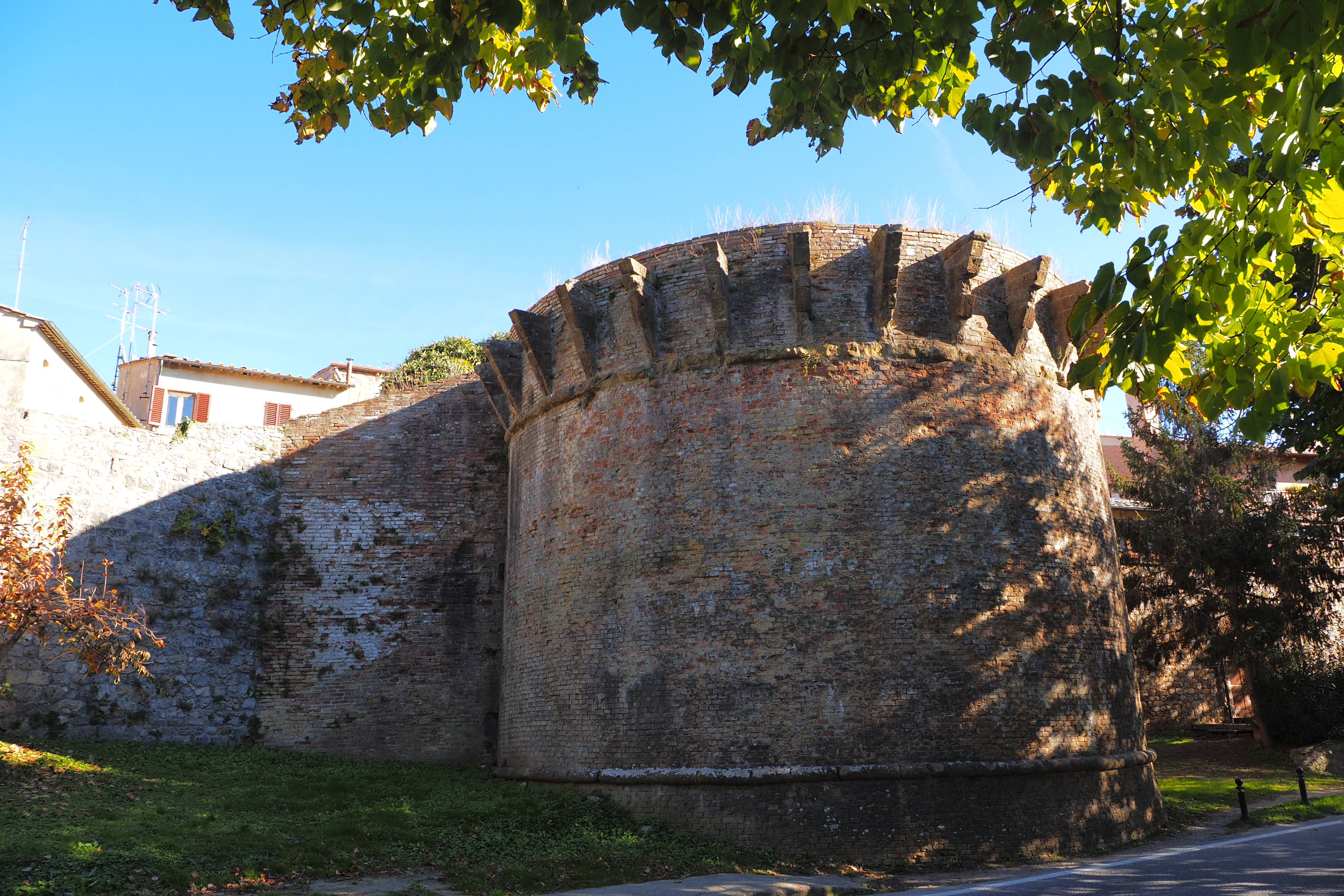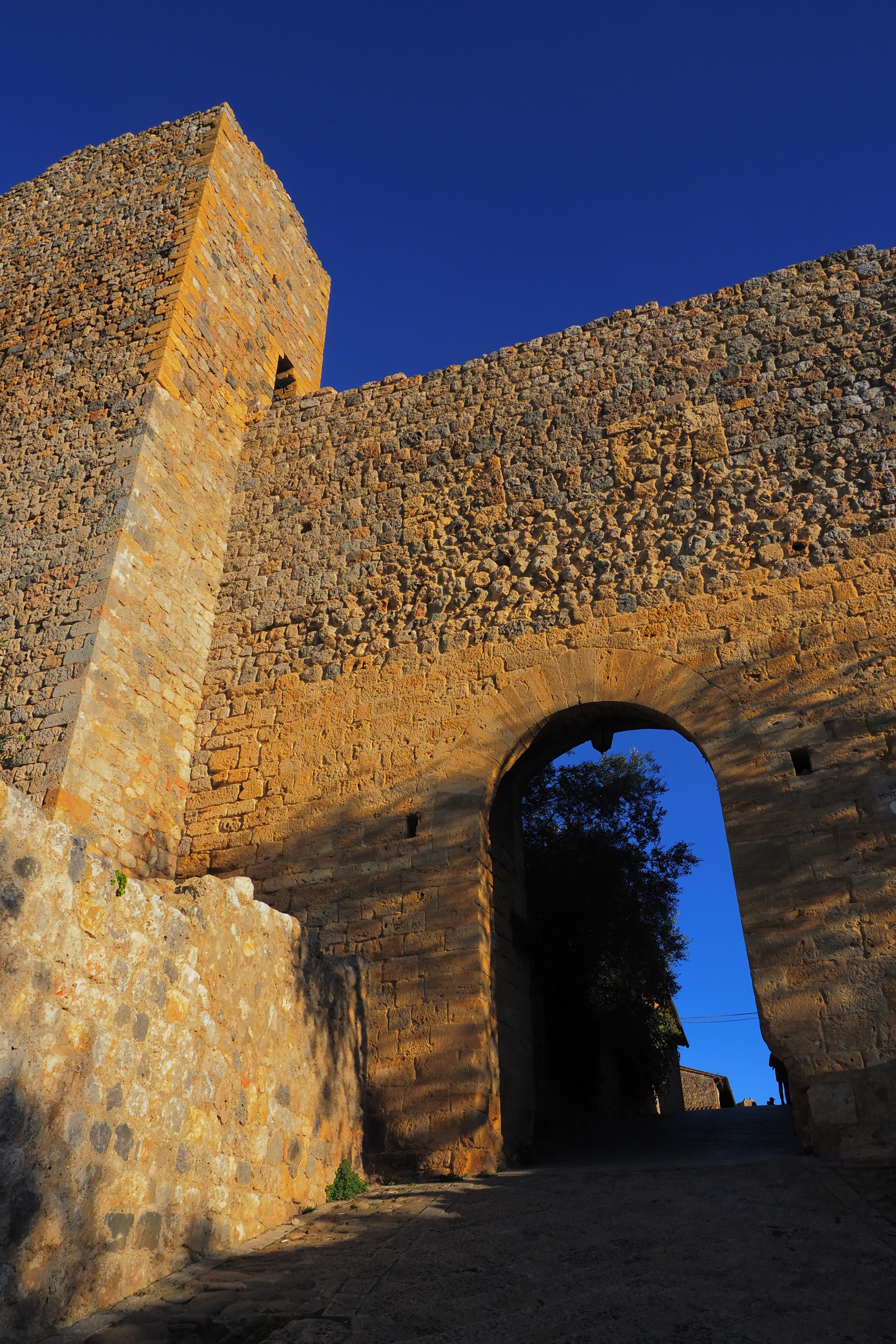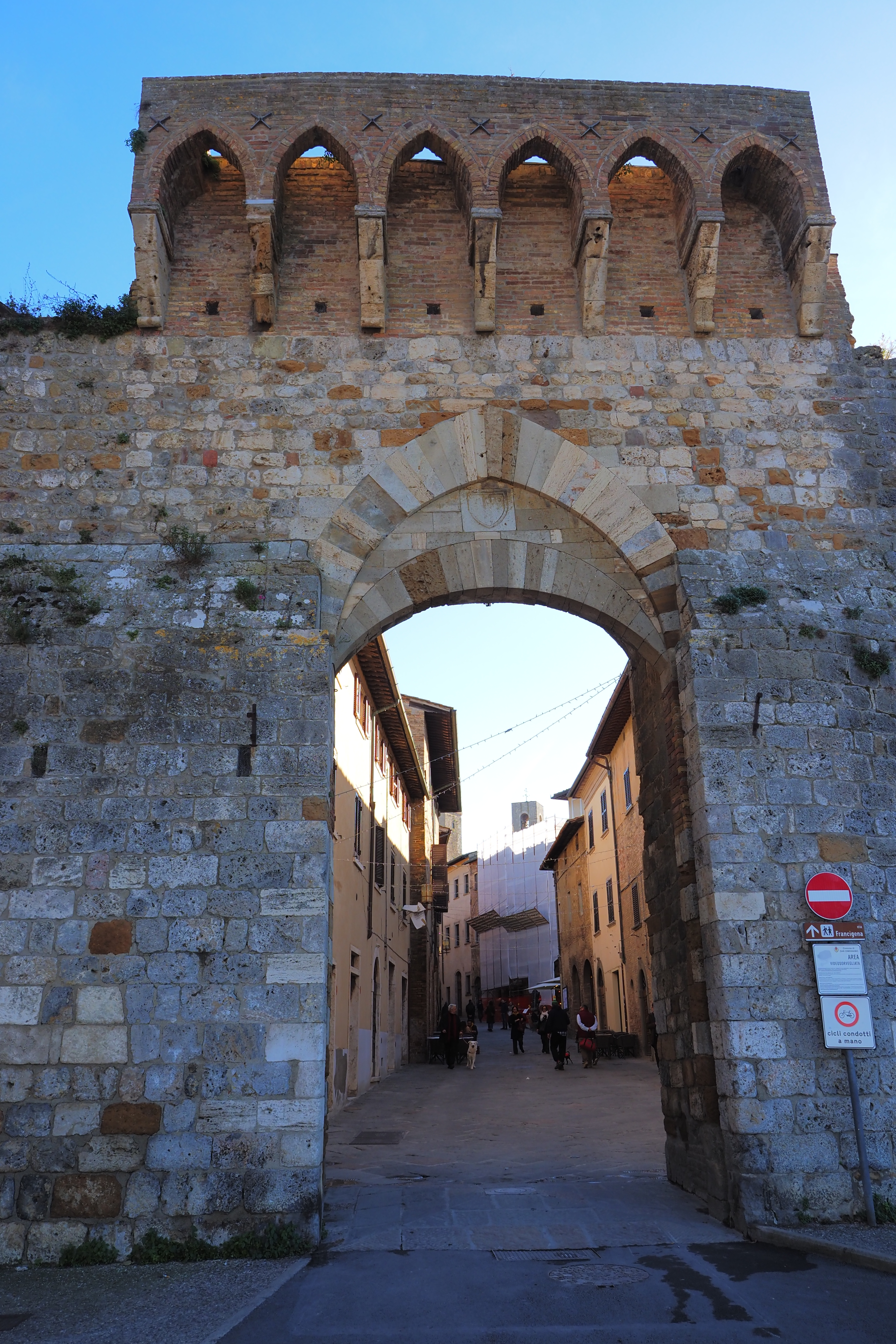 シエナ方面にあたる正門の Porta Franca; フランカの門と、東側の城壁。