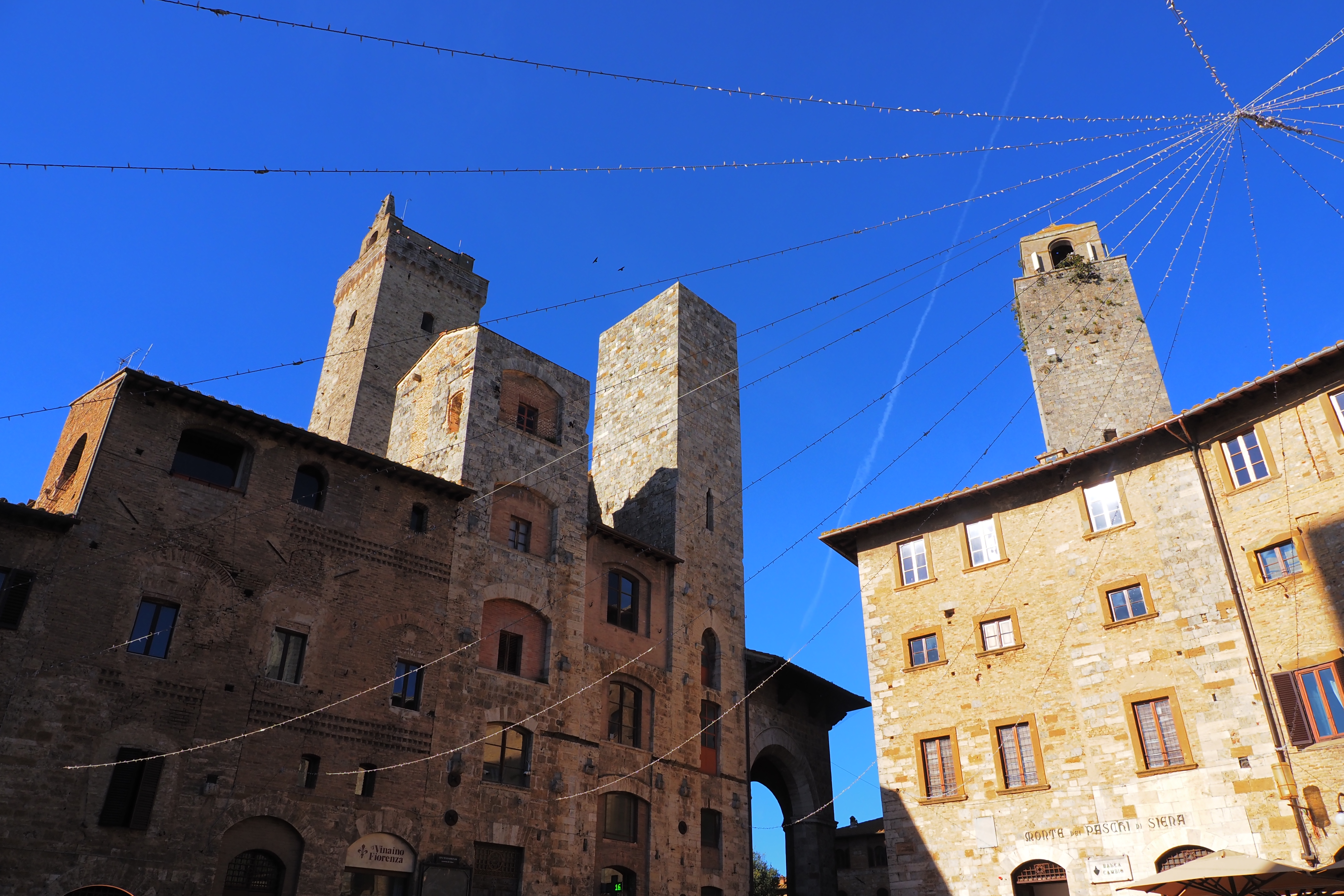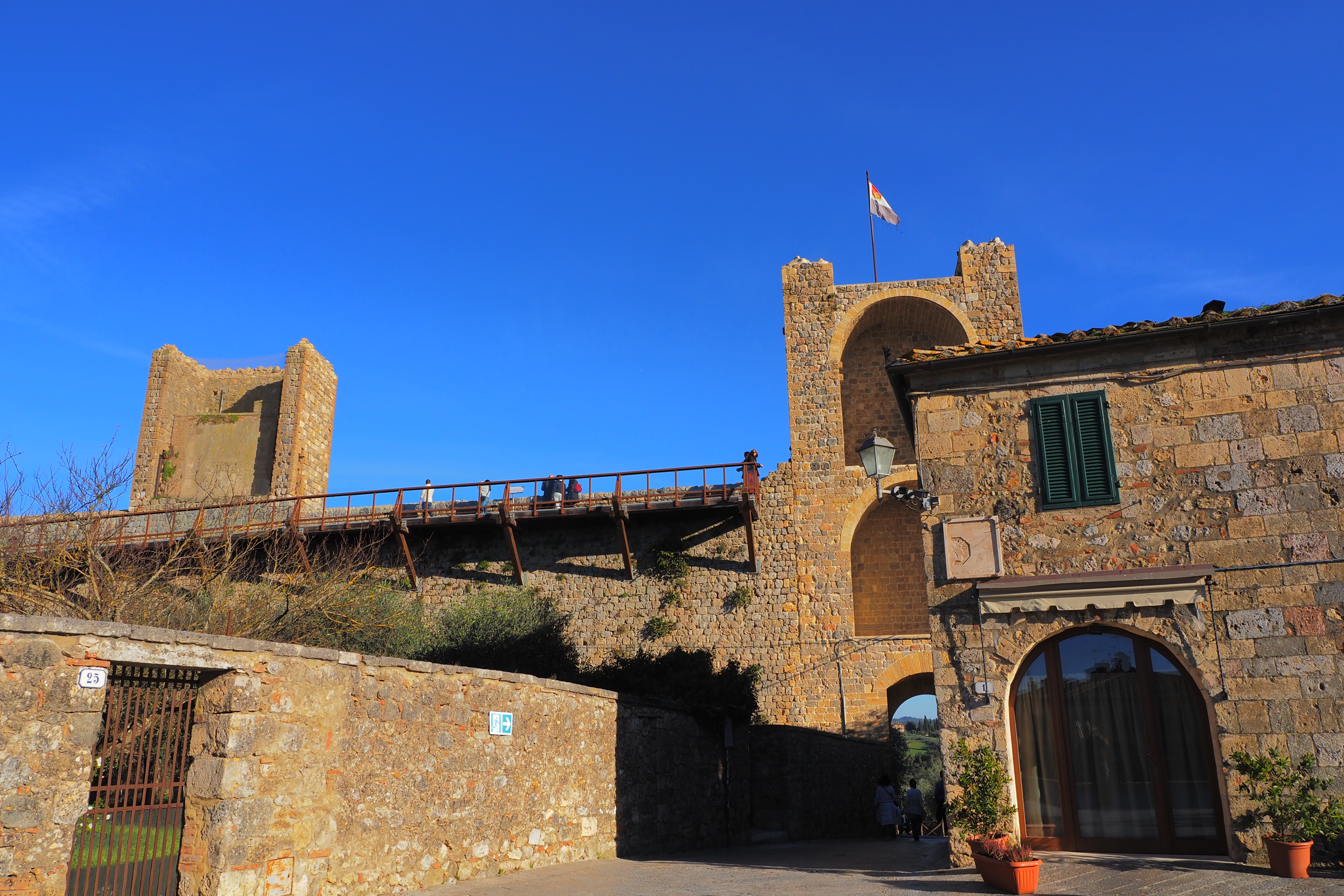 10世紀以降はローマへの聖地巡礼路としても発展して、その主要中継点にあったサン・ジミニャーノは ワインやサフランの貿易で12~14世紀にかけて莫大な富を築く。現在街を取り巻く全長2.2km のこの城壁も、その頃に建てられたものがほぼ完全な形で現存している。