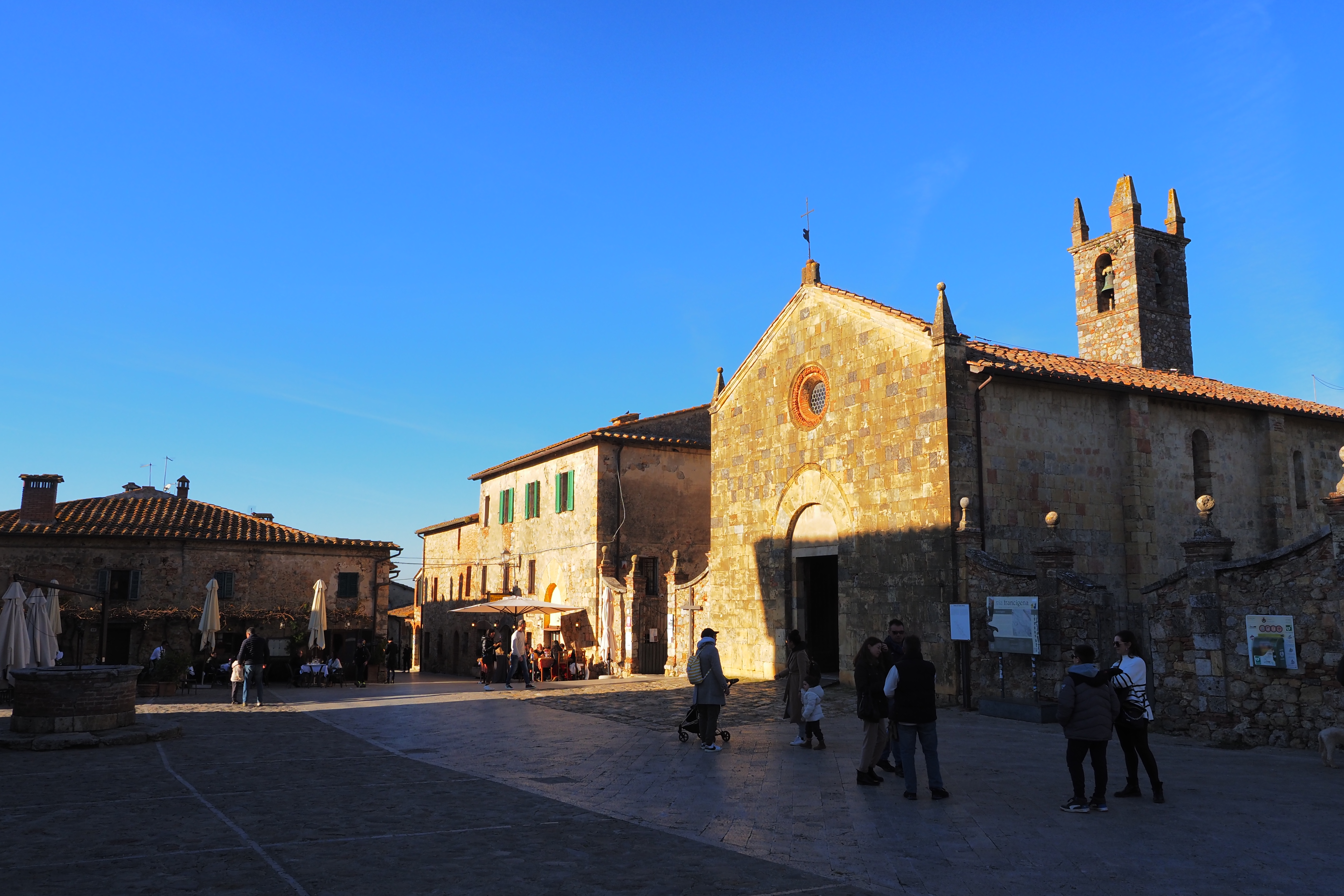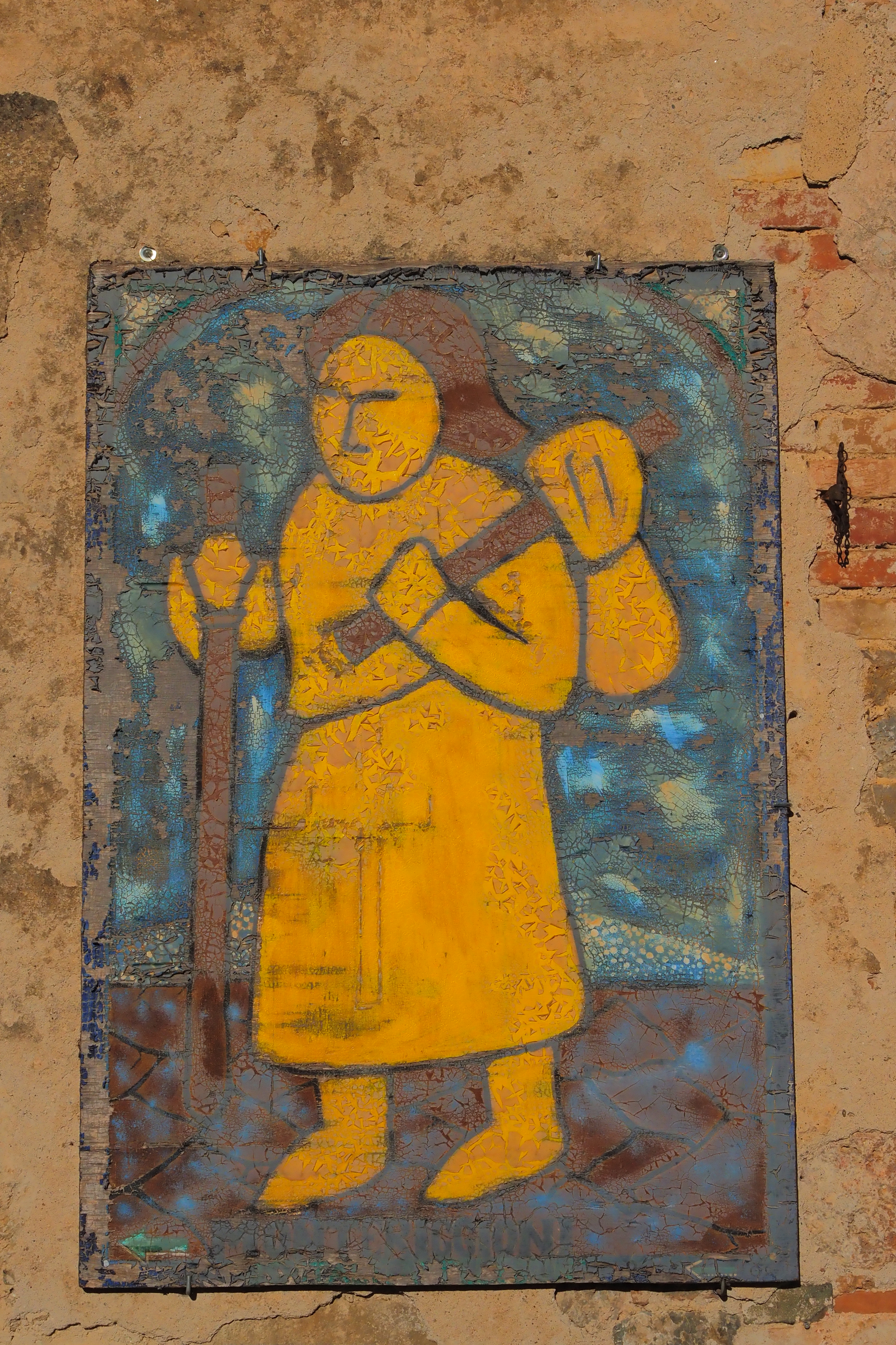 サン・ジミニャーノ同様、モンテリッジョーニも Via Francigena; フラチジェナ巡礼路の主要都市だったことから、当時の巡礼者を表わすモニュメントやサインがある。