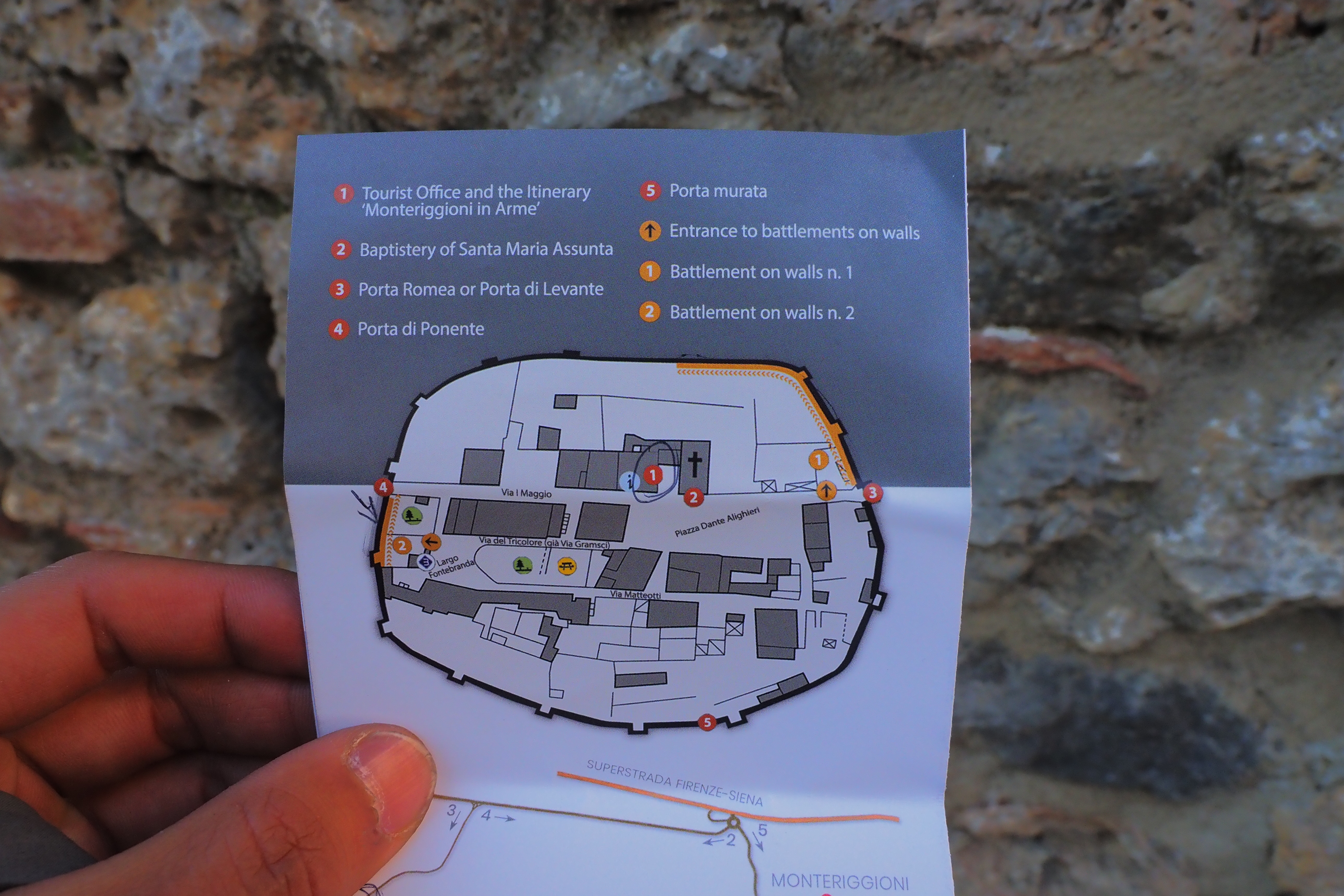 丘の頂上周囲をぐるっと囲んだ円形の城壁と、14の塔で構成される外郭に、東西を貫くメインのMaggio通り と、構成はすごくシンプルでわかりやすい街だ。