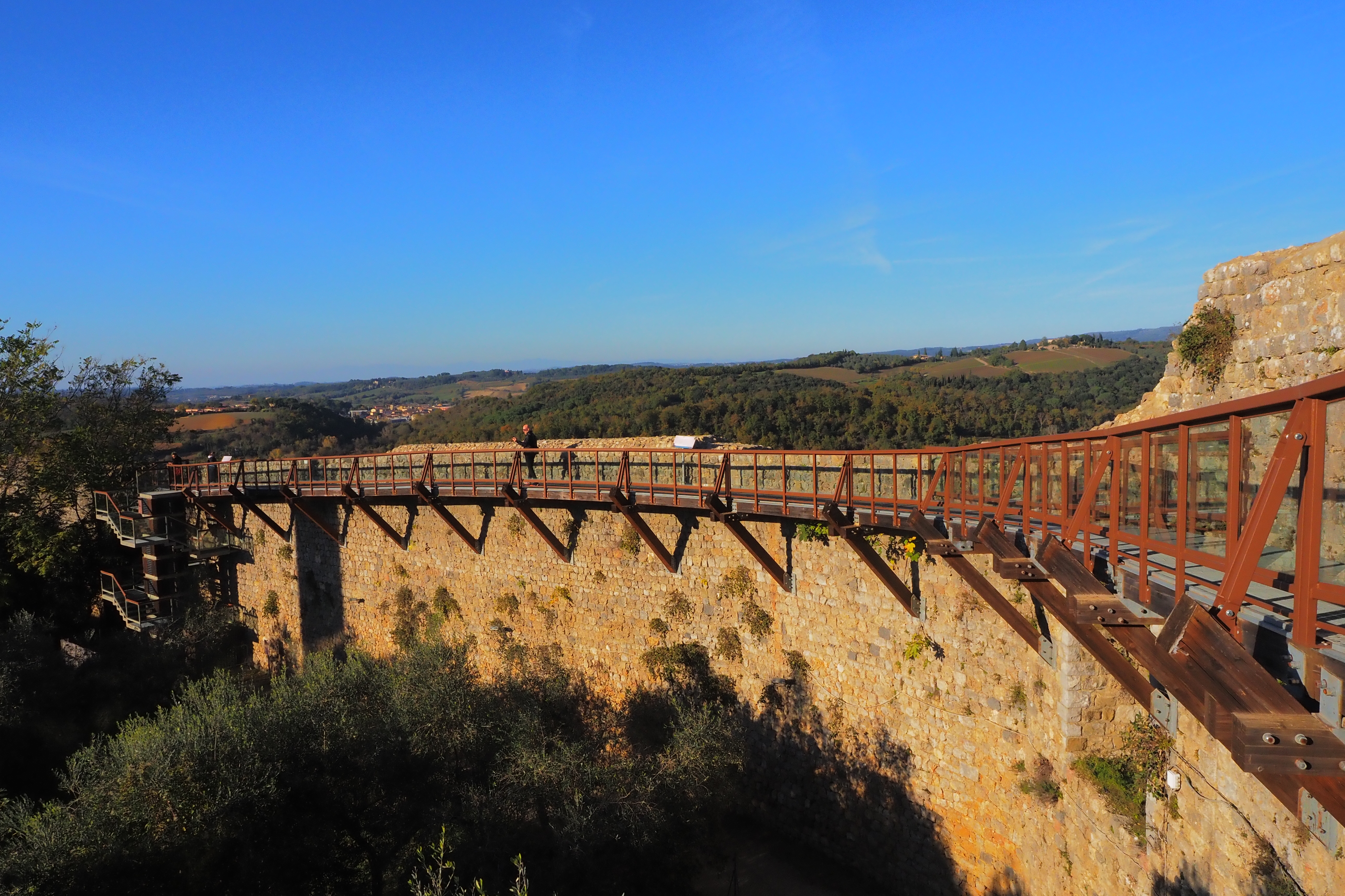 城壁の内側に設置された遊歩道をのんびり歩いて モンテリッジョーニの丘から四方を眺めるのもなかなかいい経験だった。