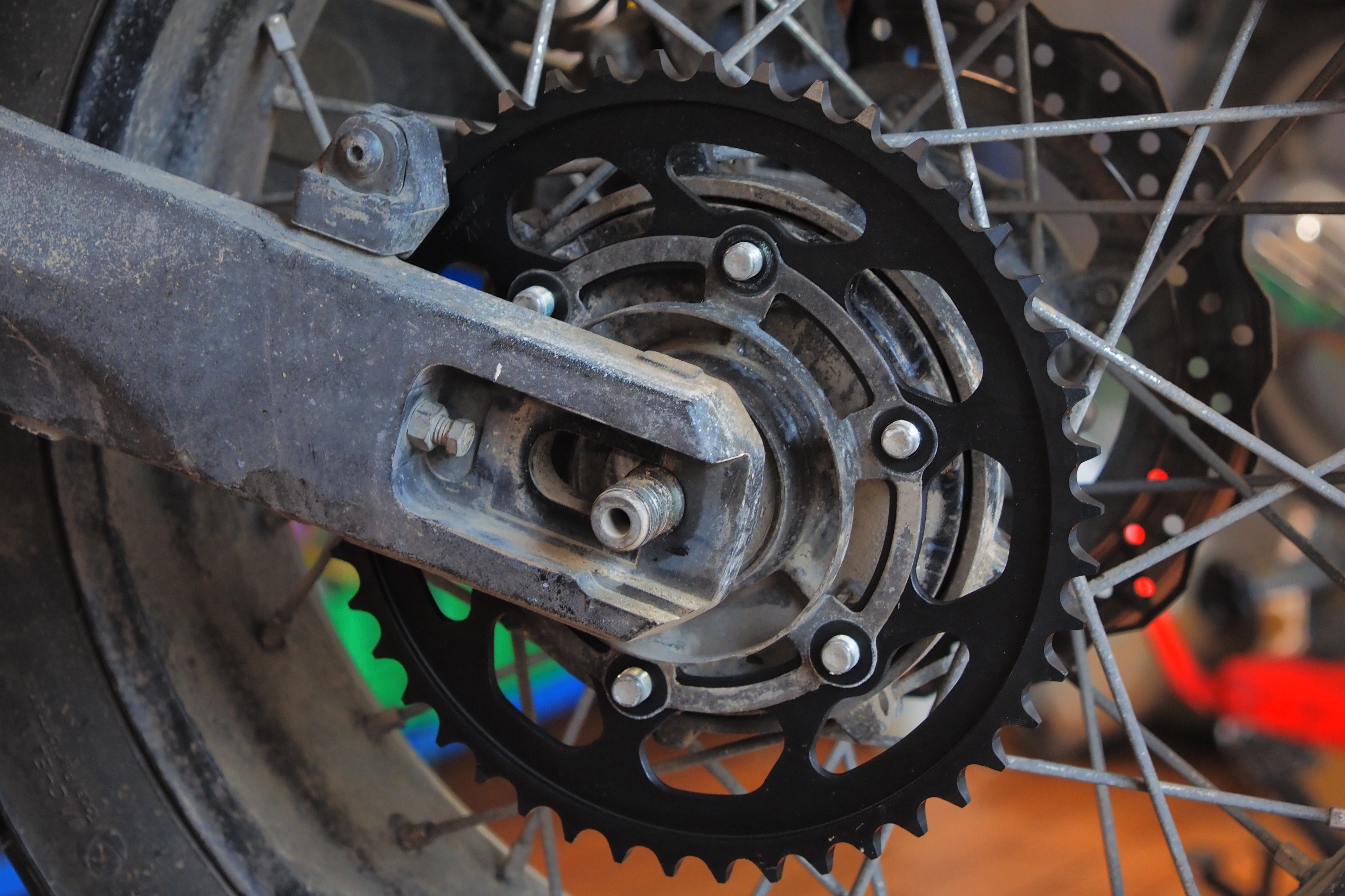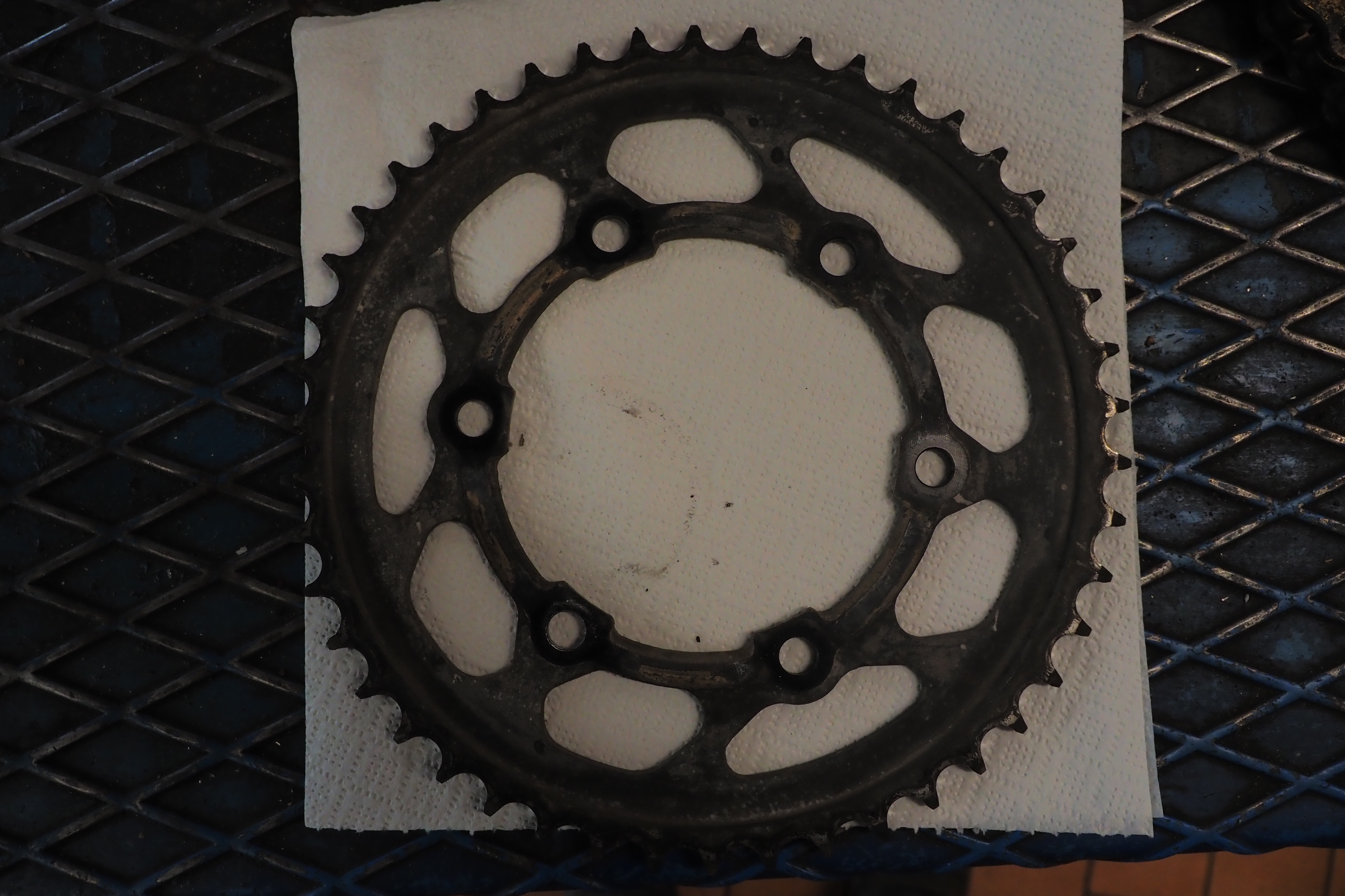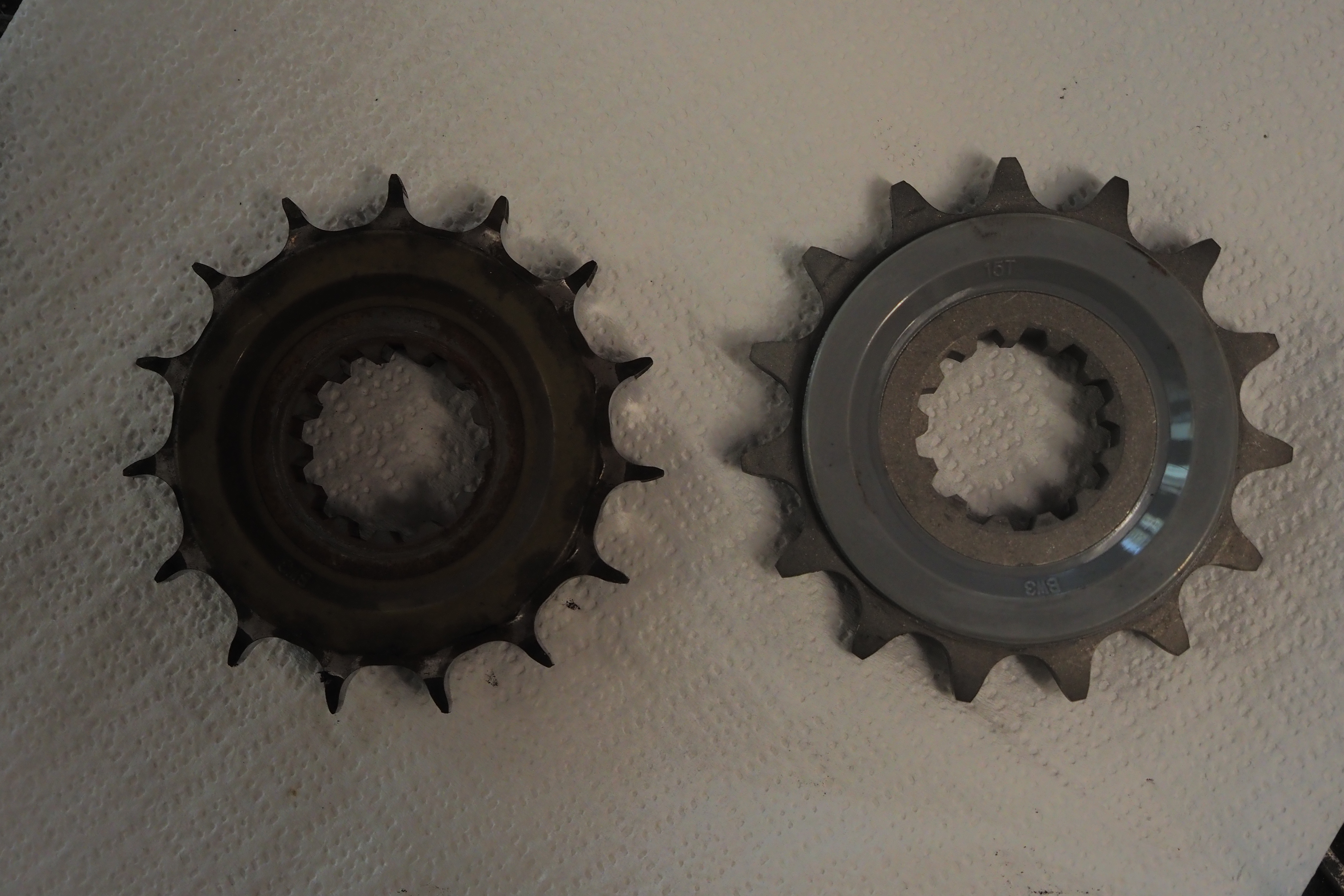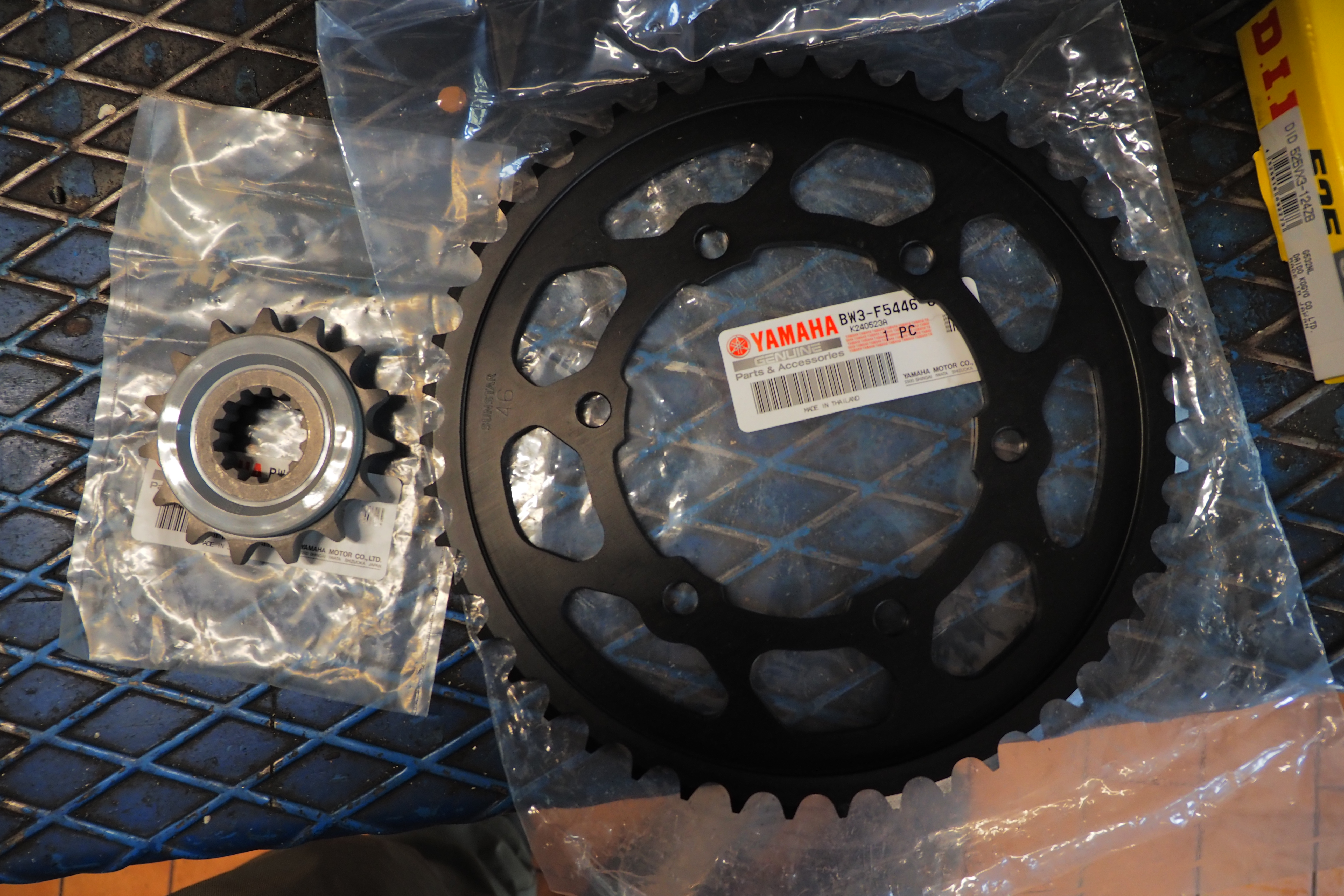 前後スプロケットは持参品。両方ともYAMAHAの純正品。リアはサンスター製かな。