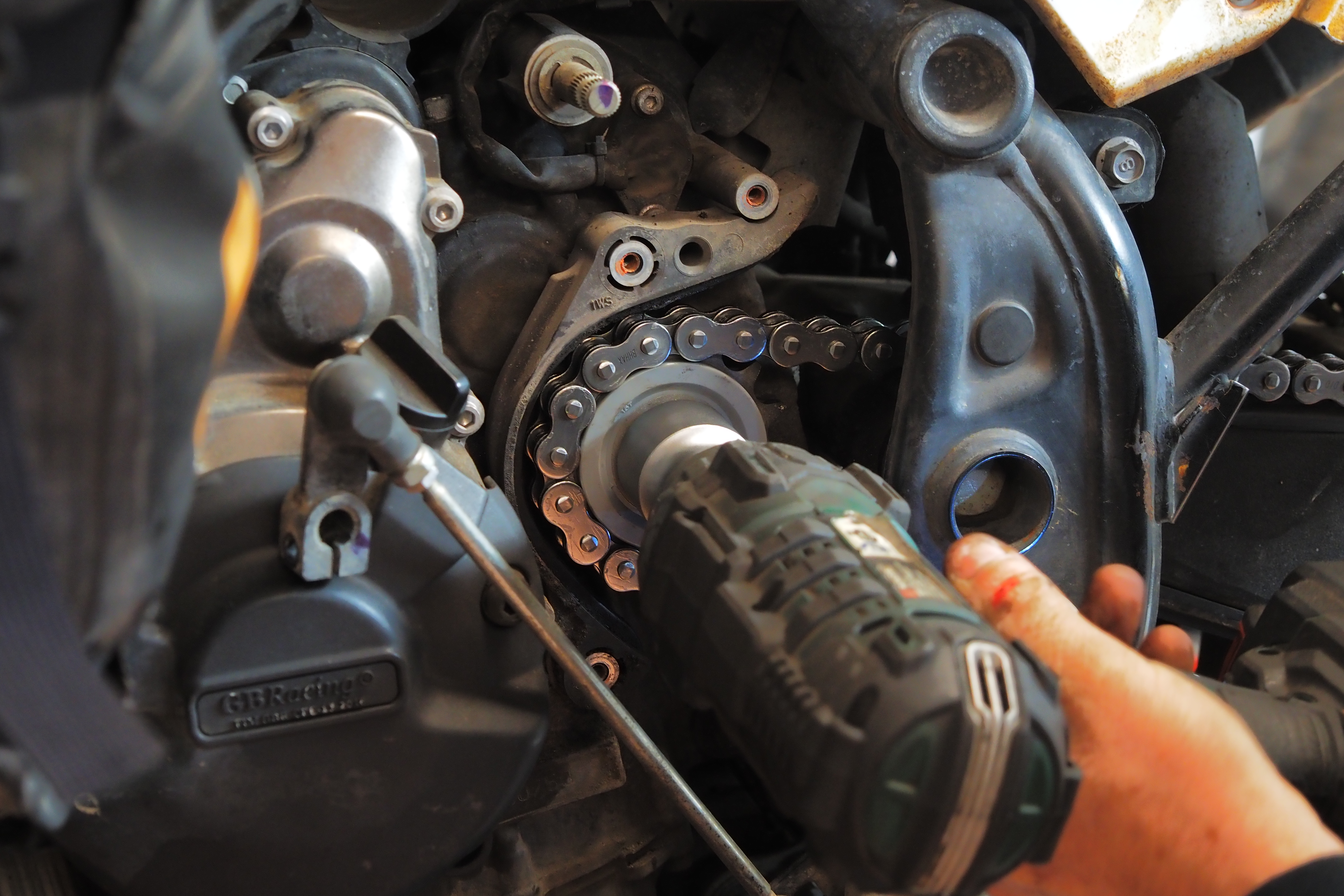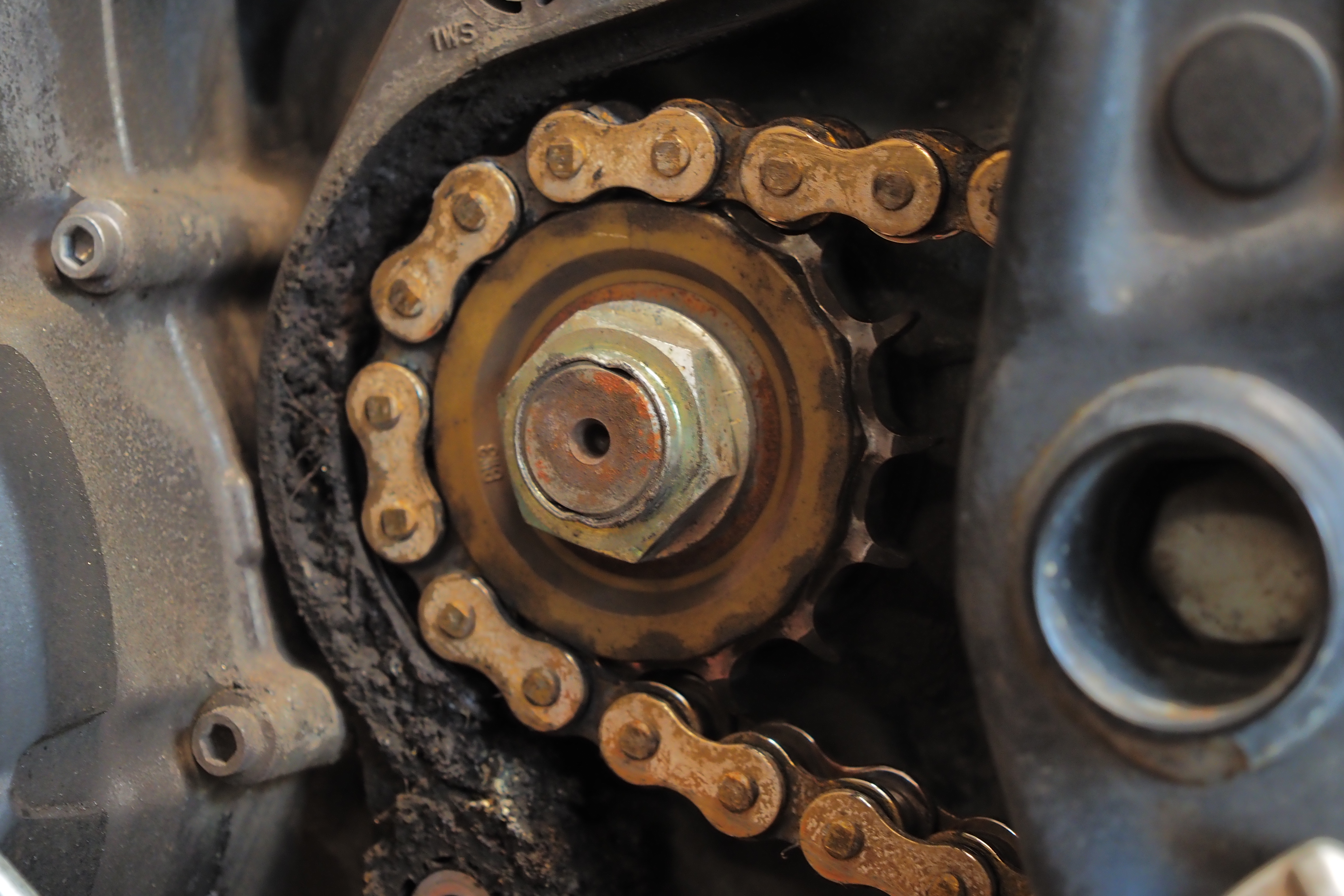 リアスプロケットのボルトを緩めて、チェンんはグラインダーで切断。