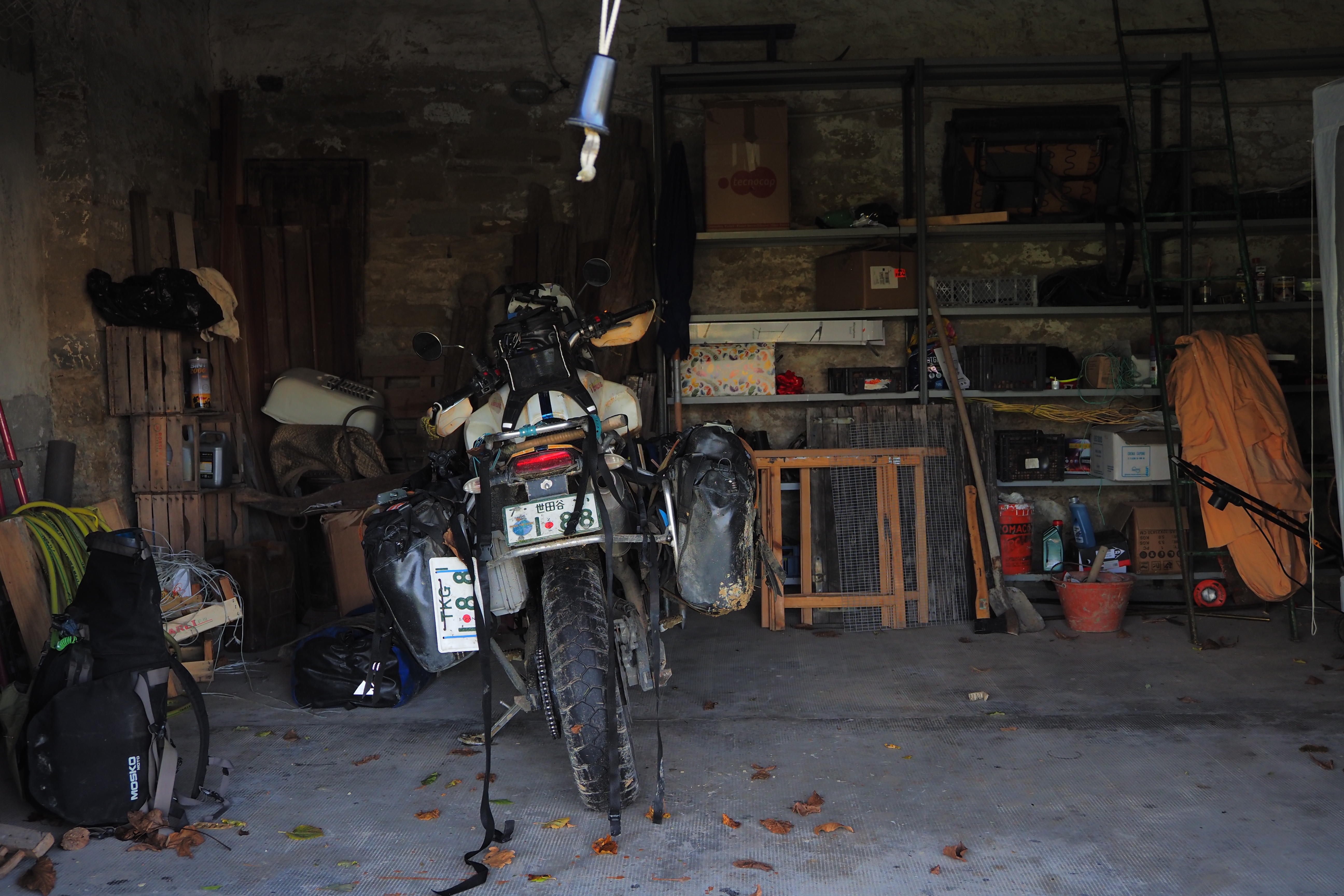 バイクを Luca宅のガレージ、彼のテネレの横に格納したら