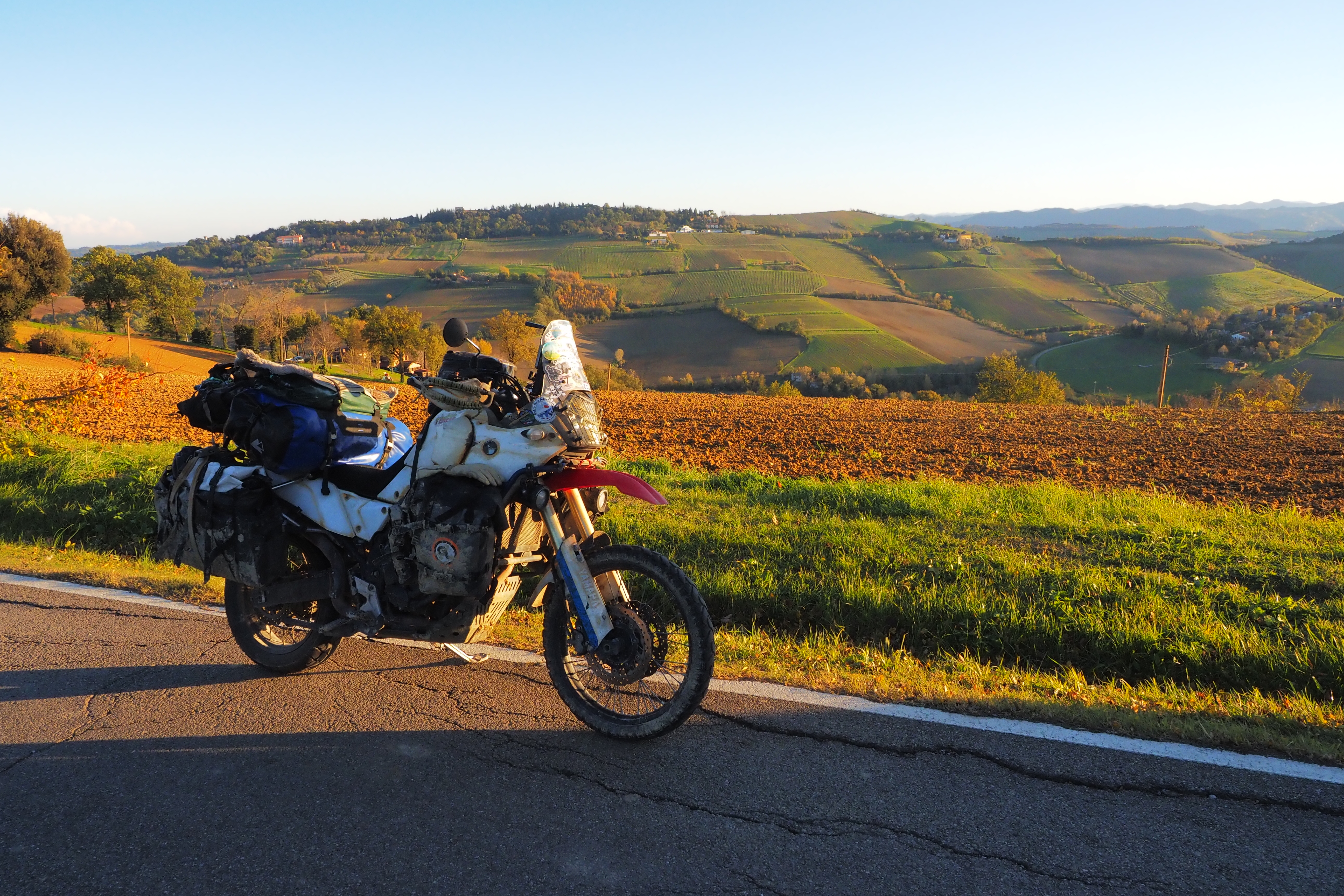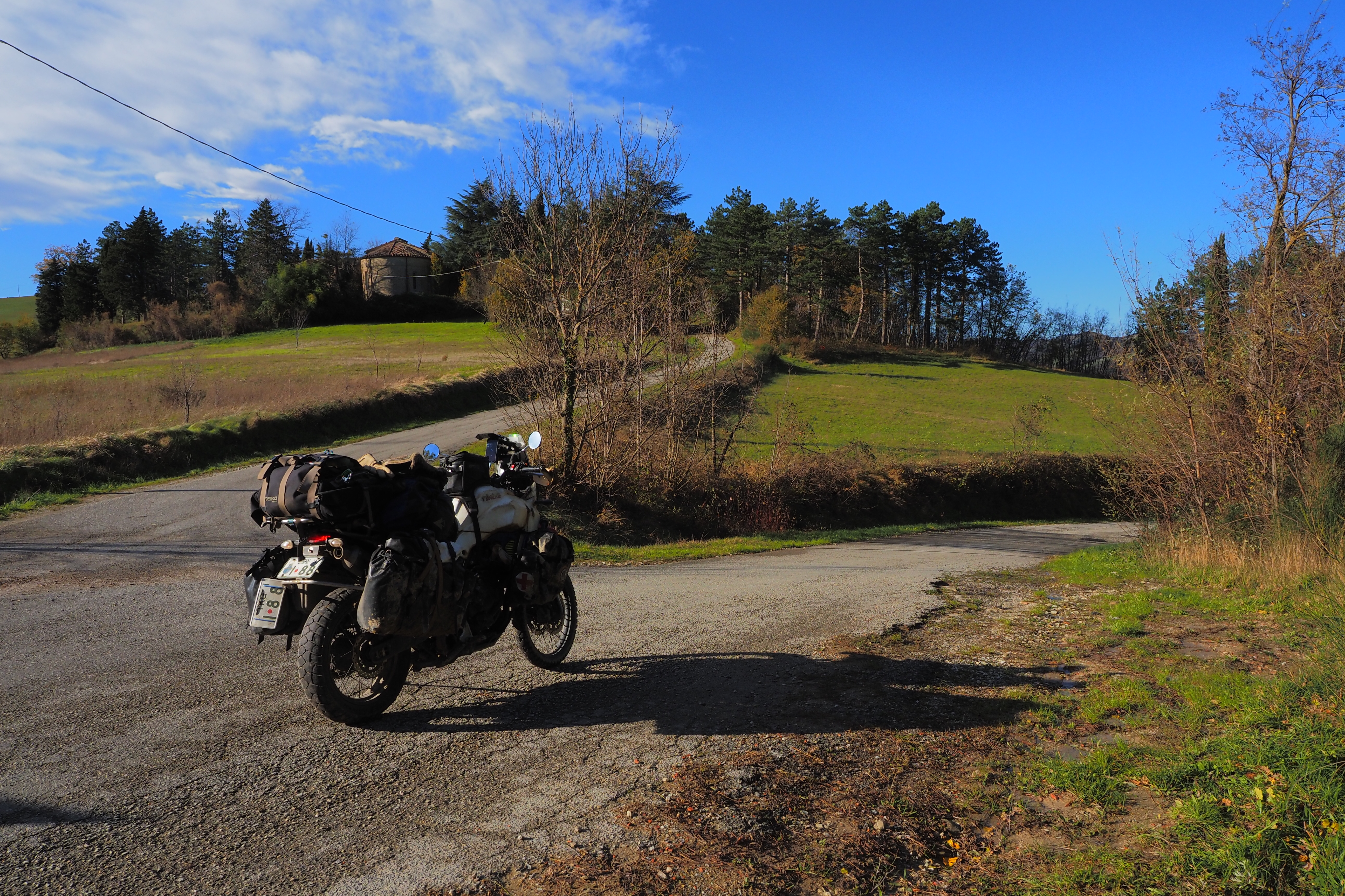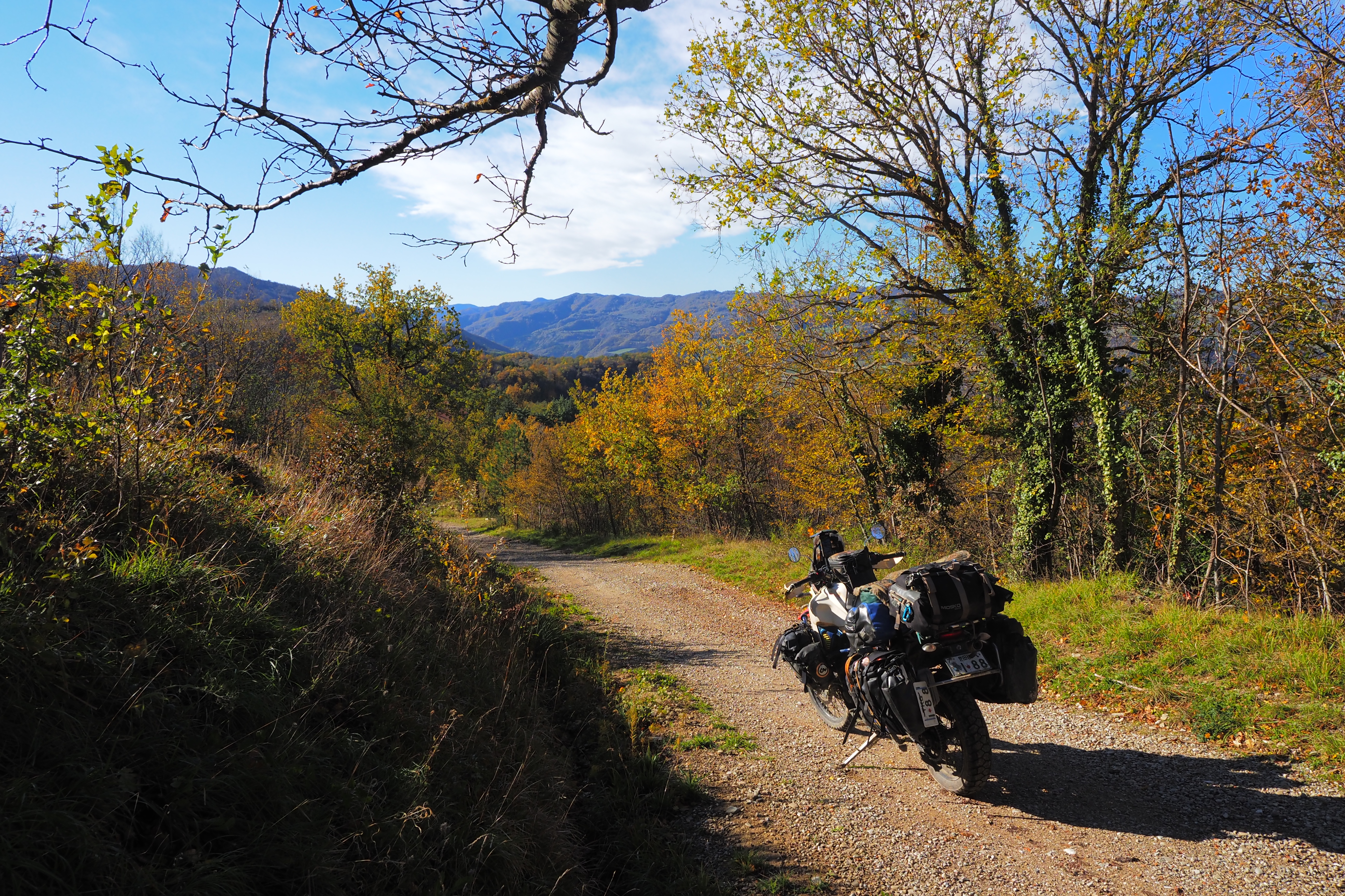 11月も下旬、当初はイタリア北部なんて雪で走れないんじゃないかと思ってたけど よほど標高の高いとこにでも行かなきゃ 晴れた日はまだまだ全然走れるし、なんならちょっと暖かい時もある。