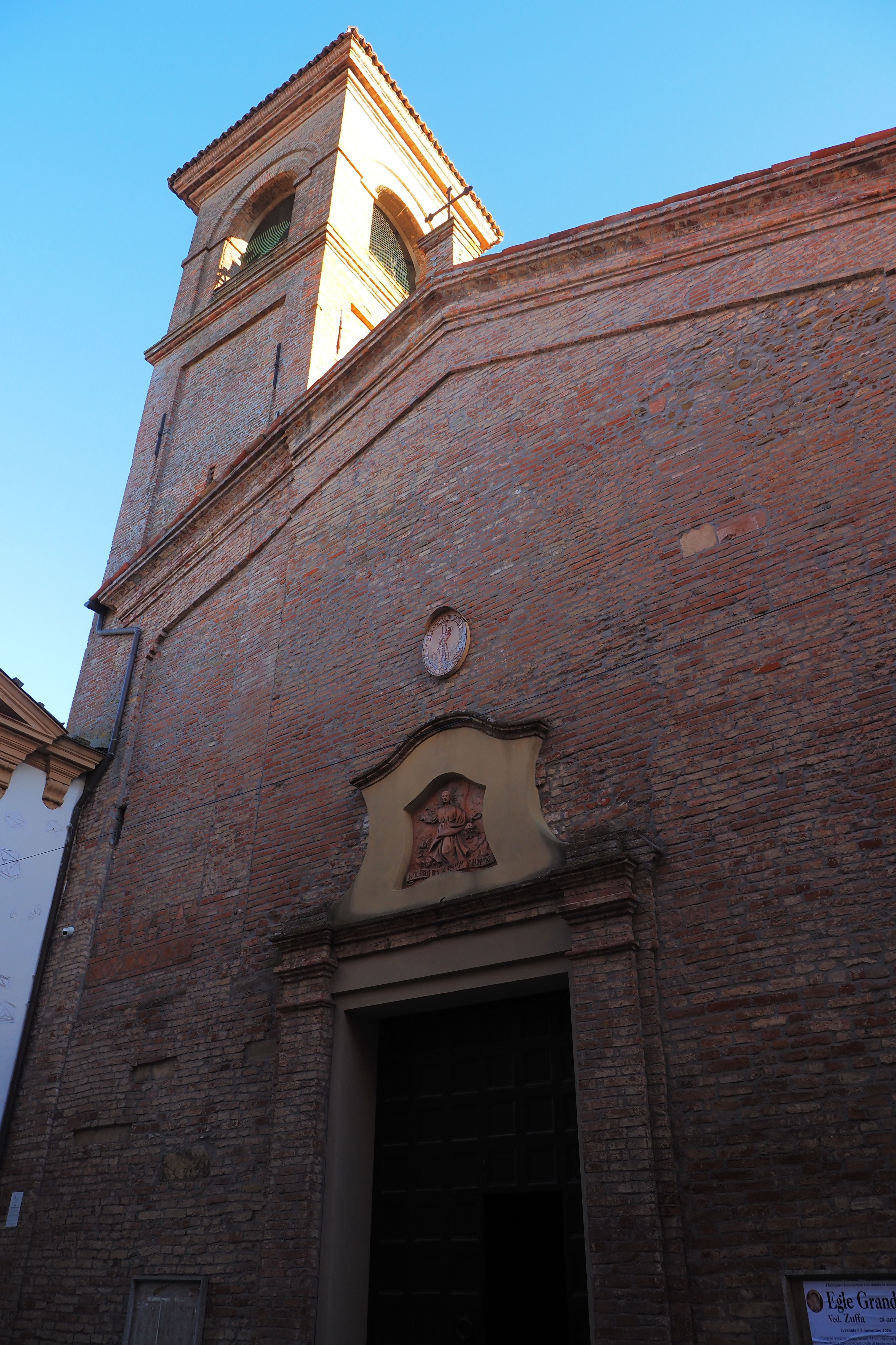 通りの真ん中あたりに建つ 小さな教会 Parrocchia dell’Assunzione di Maria Vergine.