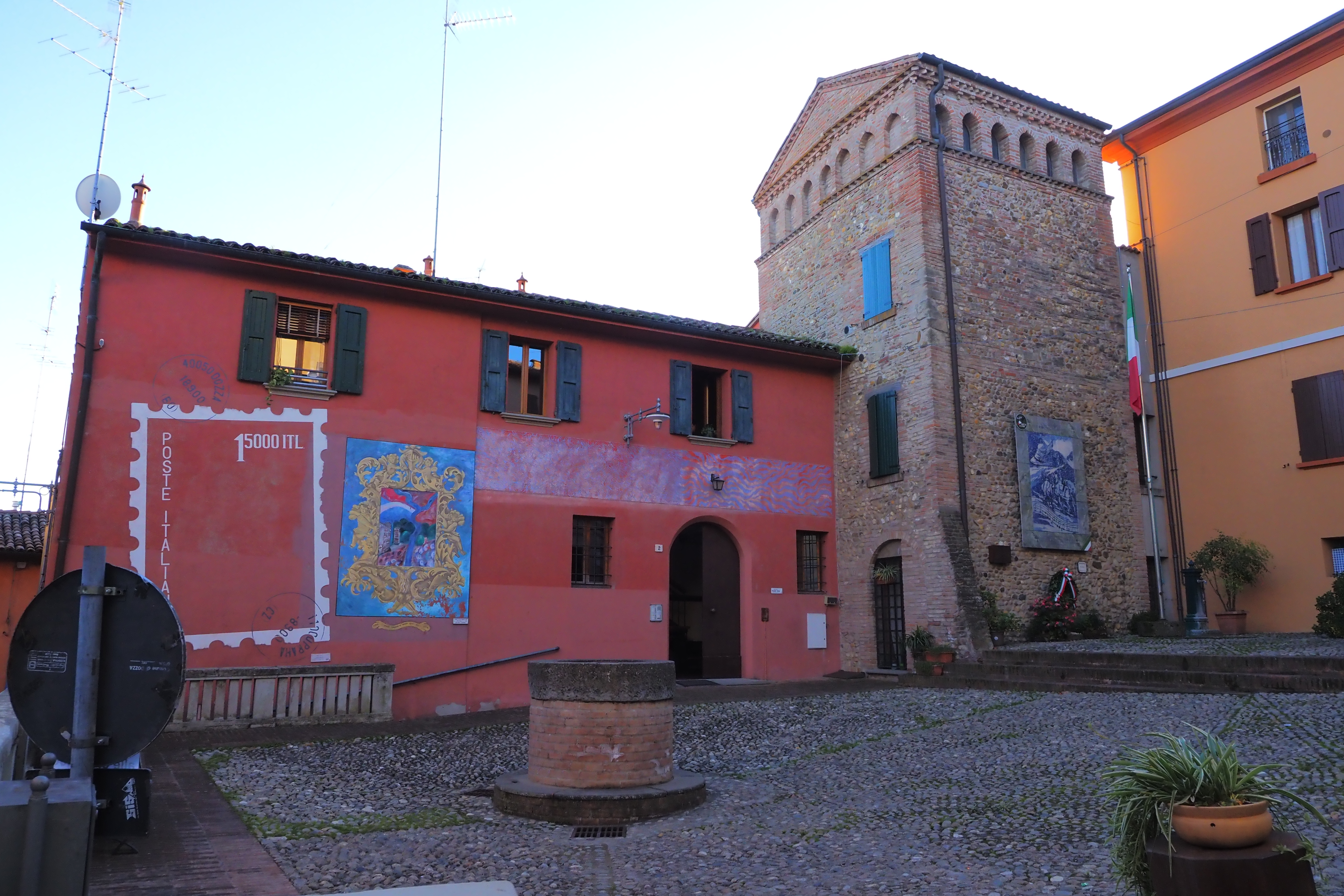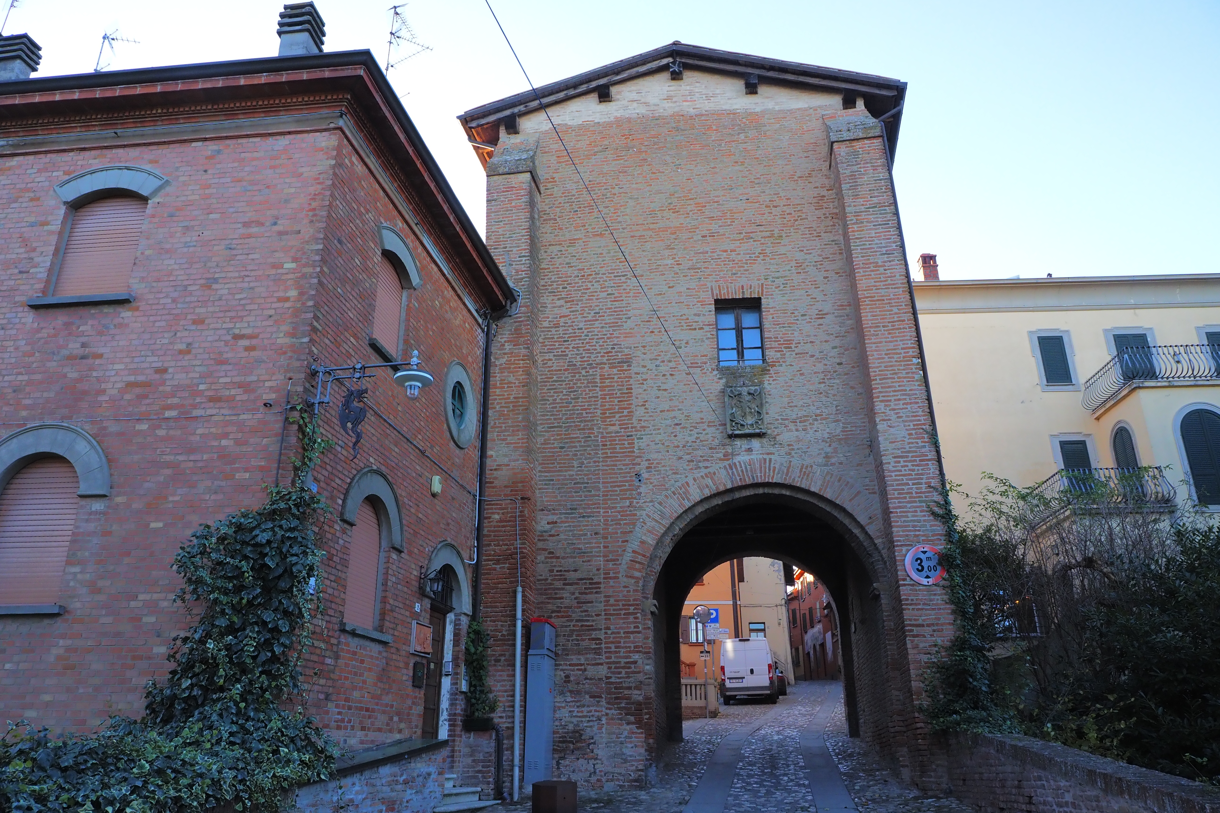 東側に面する巨大な2連の円筒形のフォルムが特徴的で、1250年頃に要塞として創建された。当時イタリアでは教皇派(Guelf; ゲルフ)と皇帝派(Ghibelline; ギベリン)の争いが激化した時期で、教皇派の主要拠点だったボローニャの戦略拠点・防衛前線として築かれたらしい。
