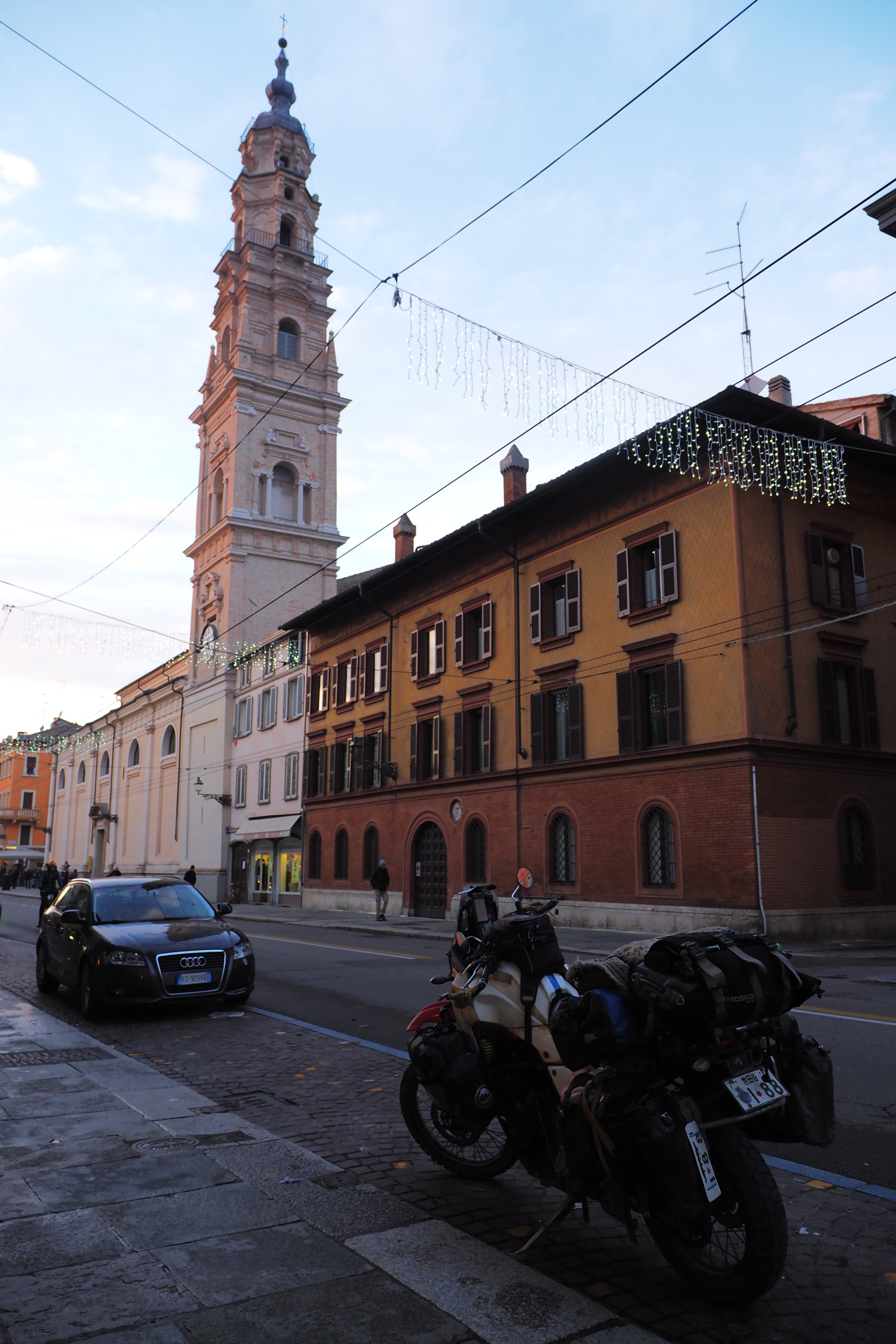 正直、ボローニャからどう進むか、色々と悩ましくて何も決めていなかった。北イタリアには魅力的な都市が山のようにあるけど、時既に師走。天気も悪い日が増えてきたし、標高が高くなると凍結や雪も全然ある。となると、今期はこれ以上北には行かず 早めに地中海側に逃げちゃた方がよさそうだ。