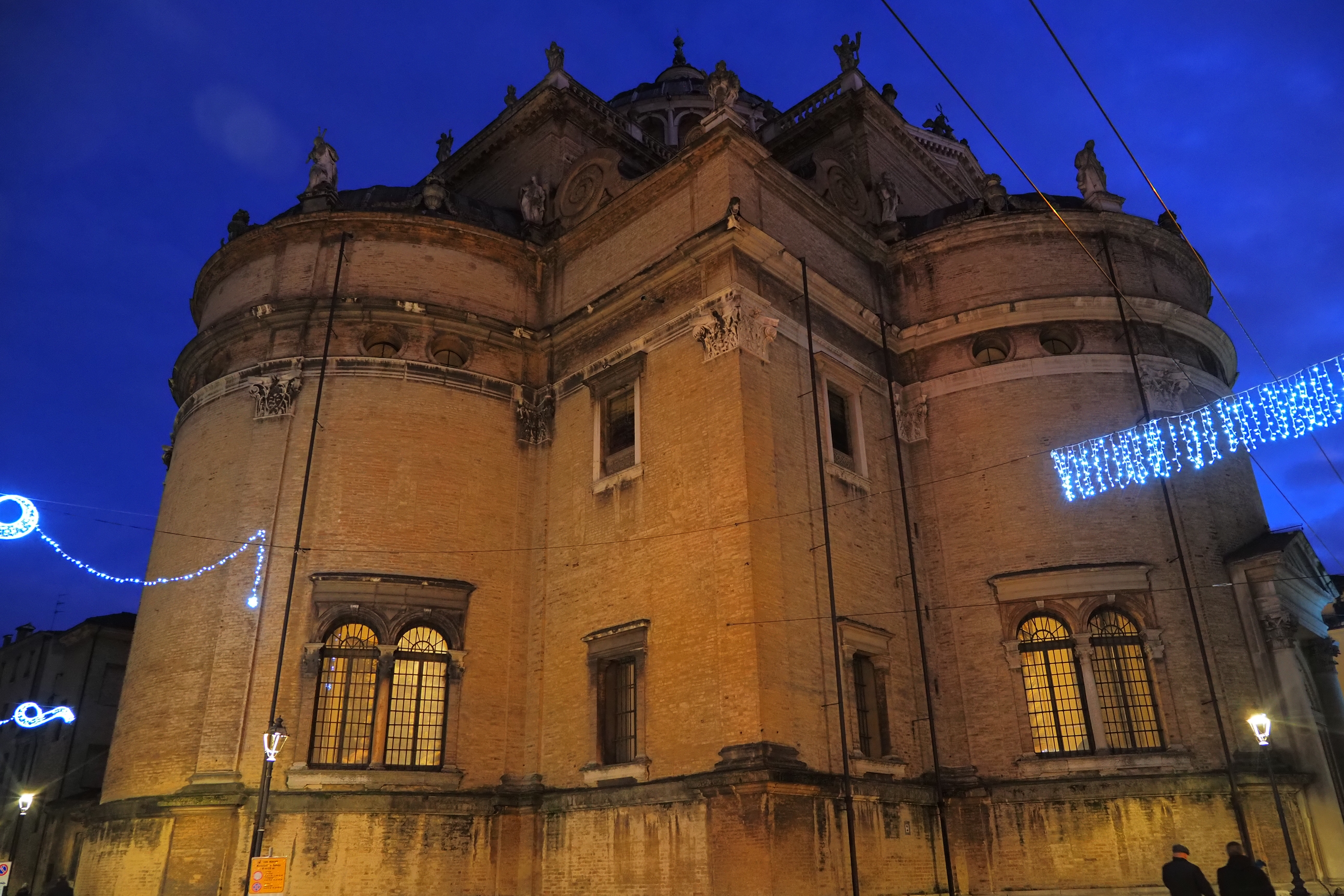 Basilica di Santa Maria della Steccata の西側の外壁が見えて来る。