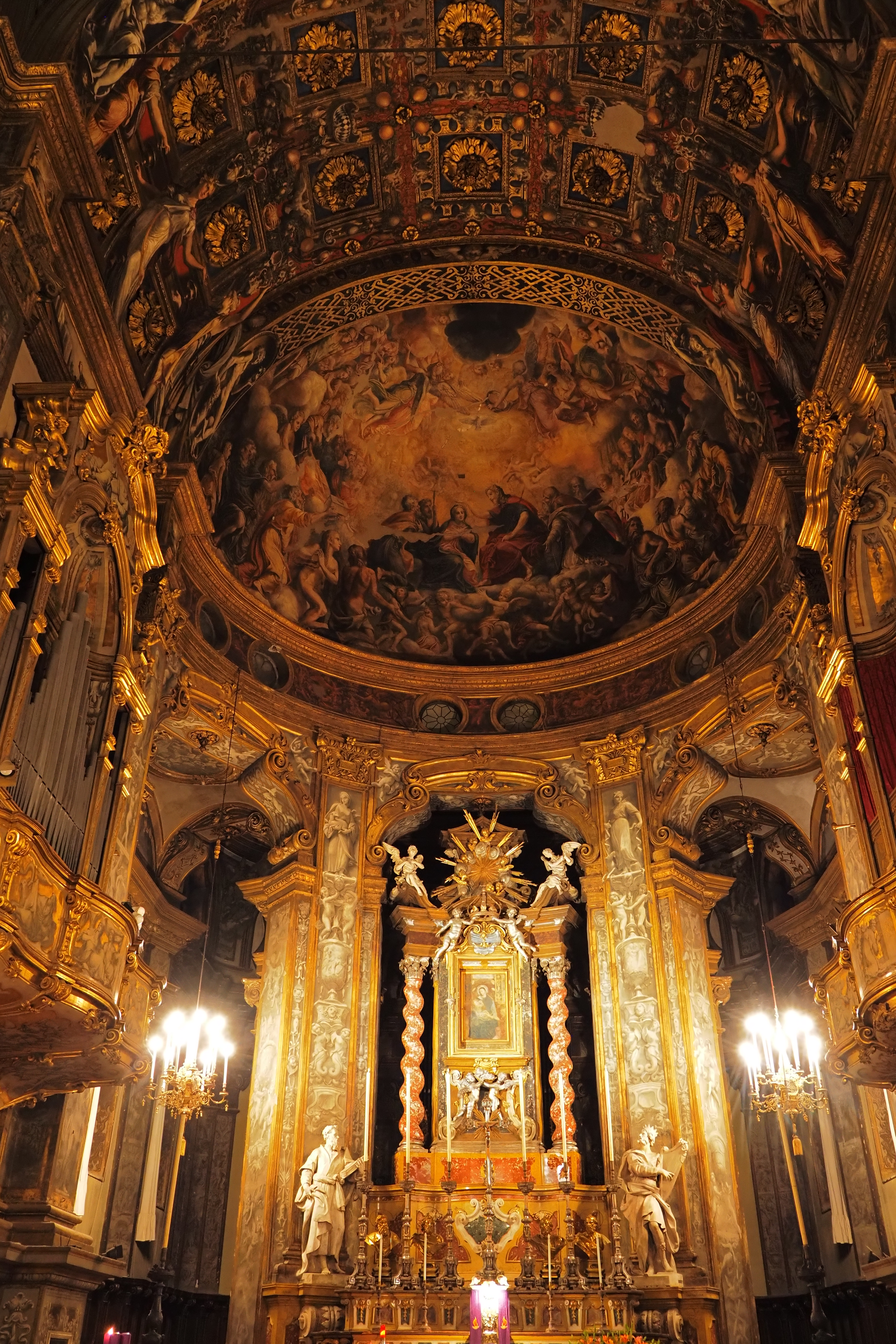 後陣上部には Michelangelo Anselmi 作「聖母子戴冠」が、