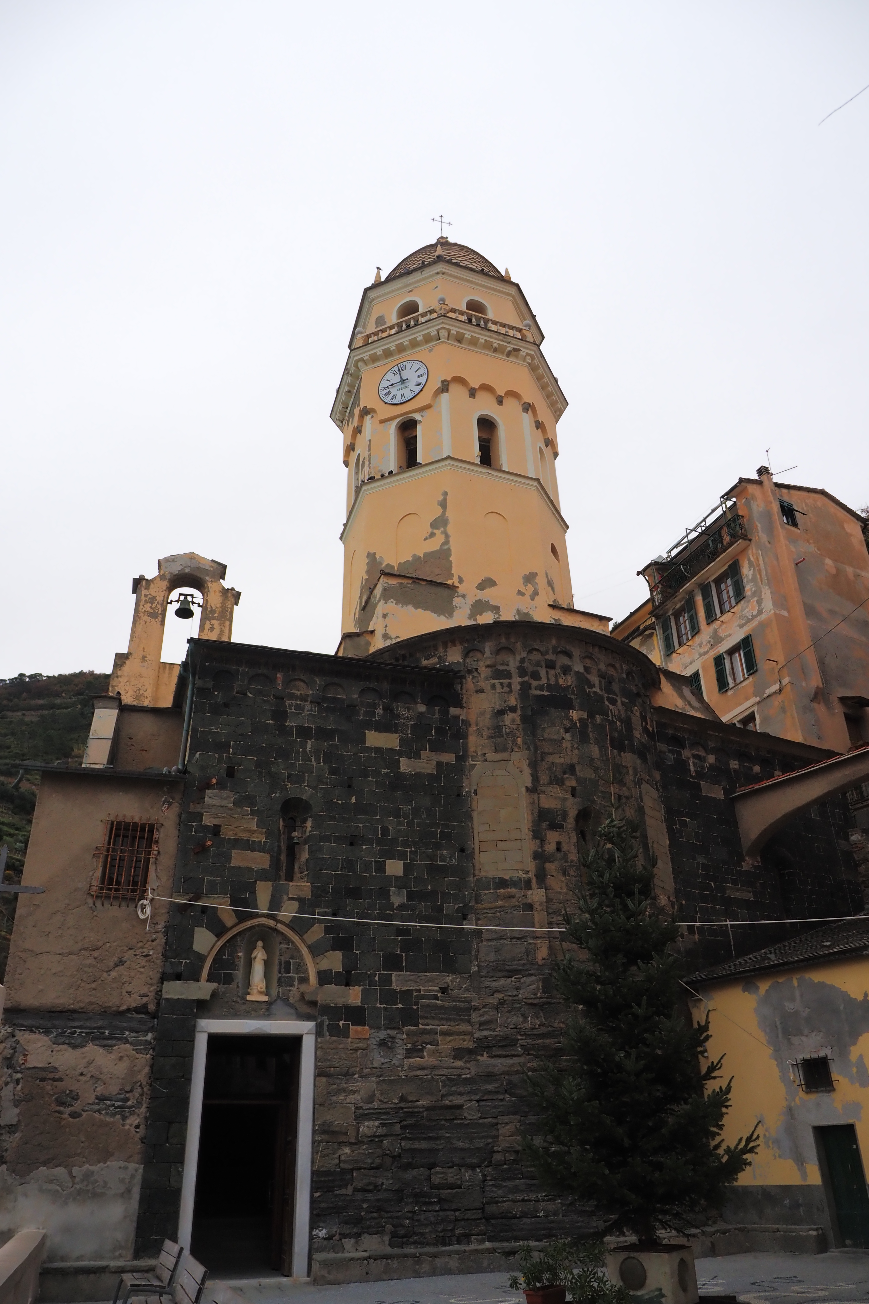 1318年に建てられたリグーリア・ゴシック様式の古い教会だ。石剥き出しの外壁とパステルイエローの鐘楼にかなりギャップを感じるけど、これは18世紀の大規模改修で鐘楼がバロック様式にて増築されたかららしい。
