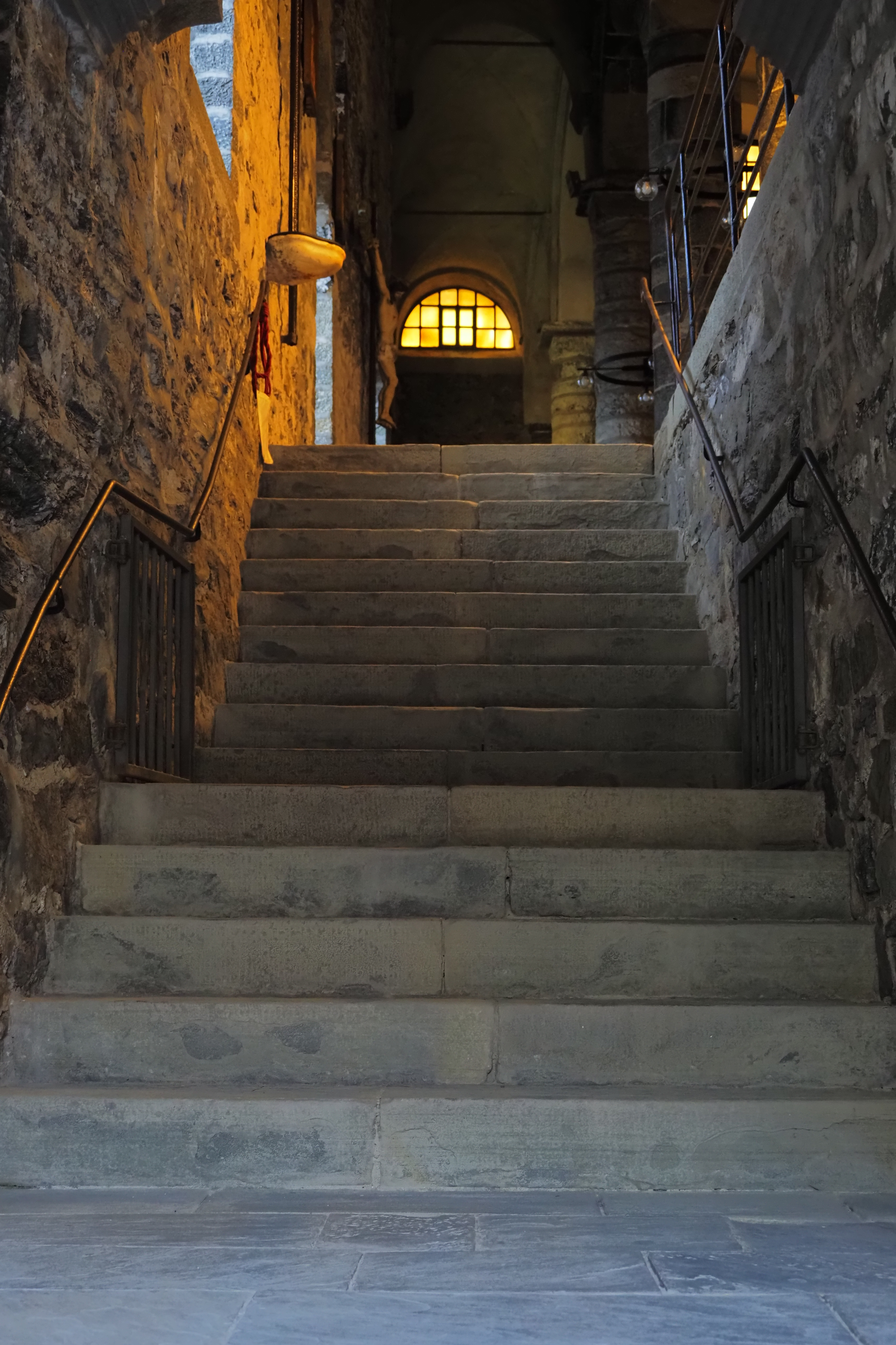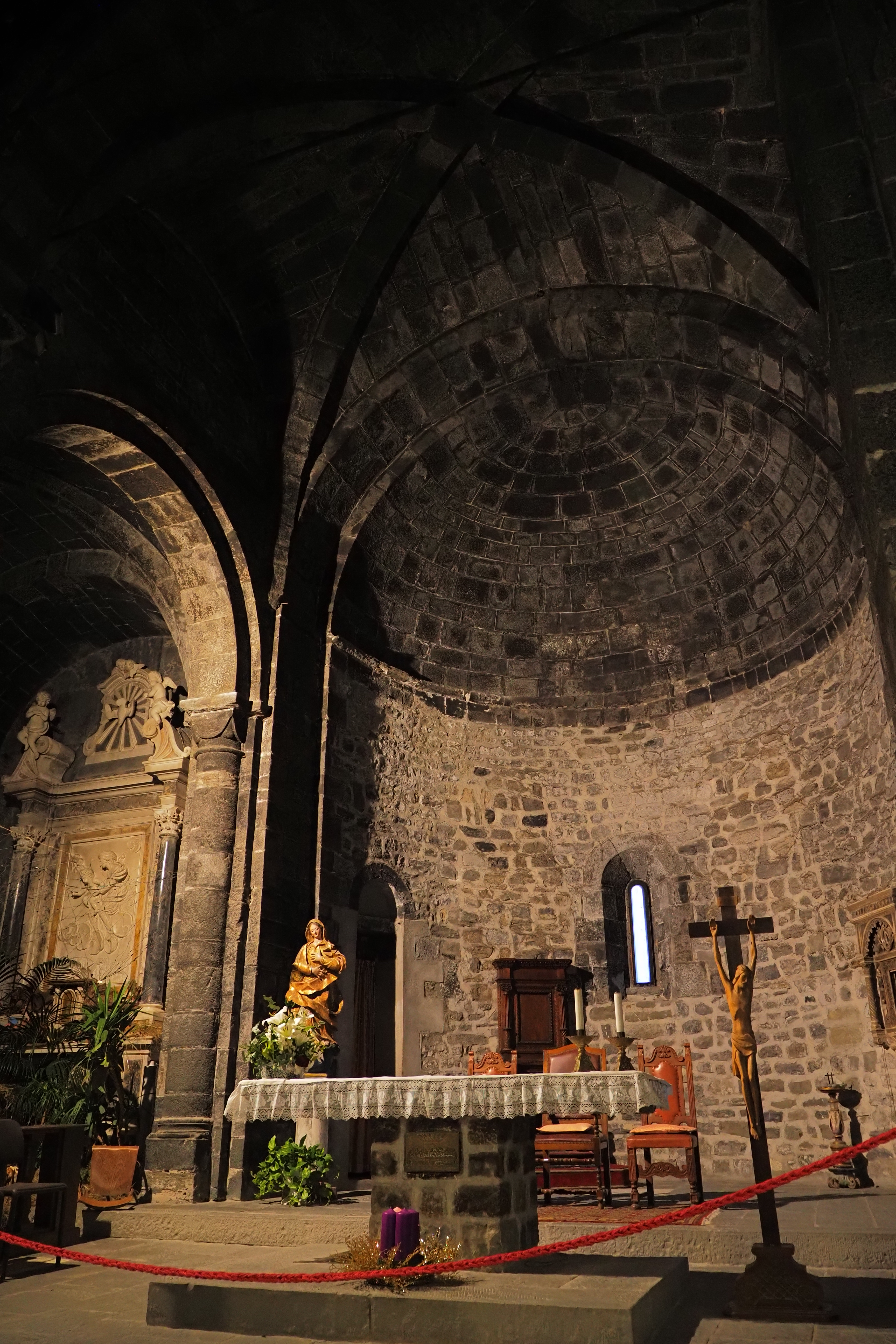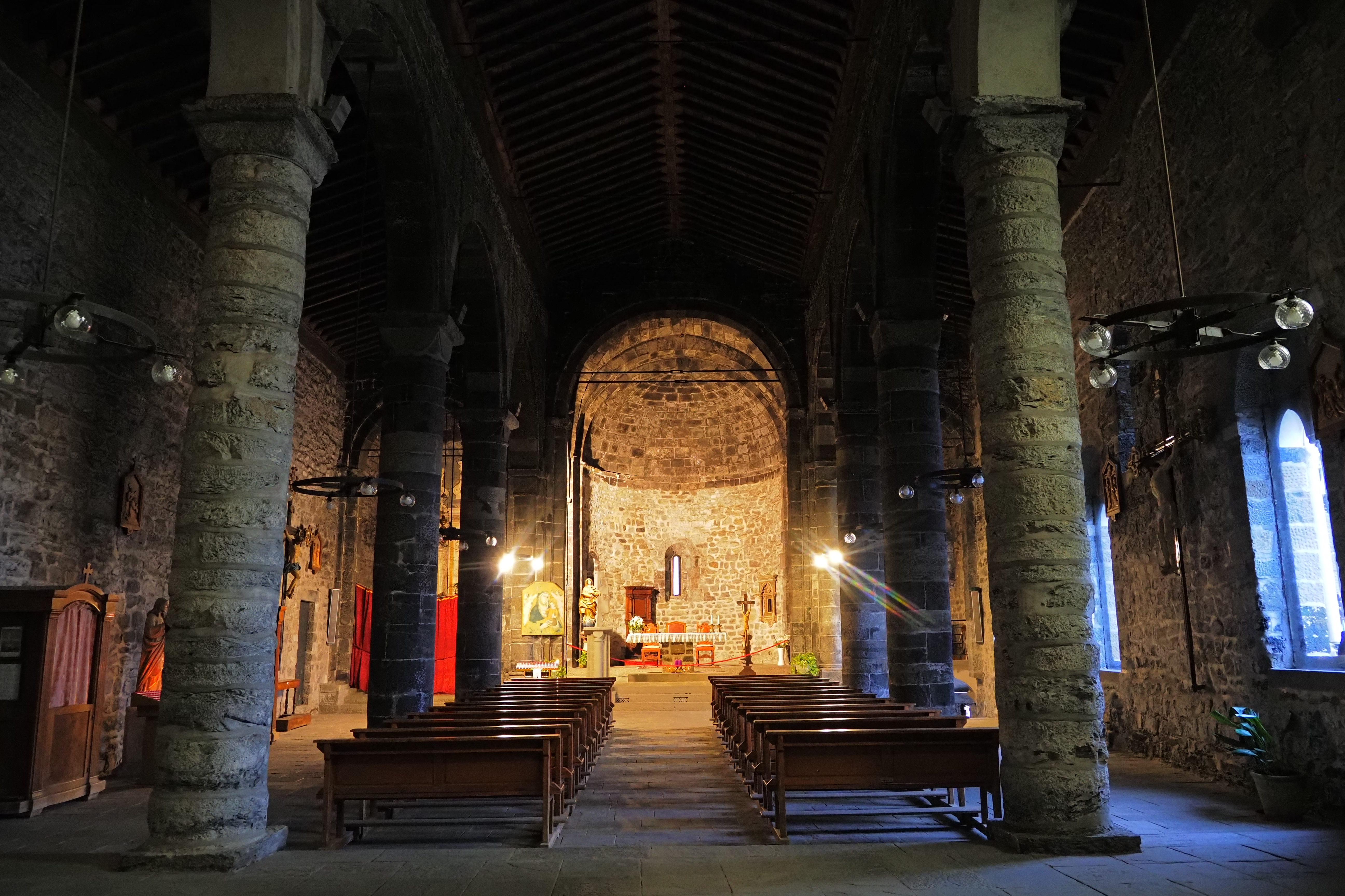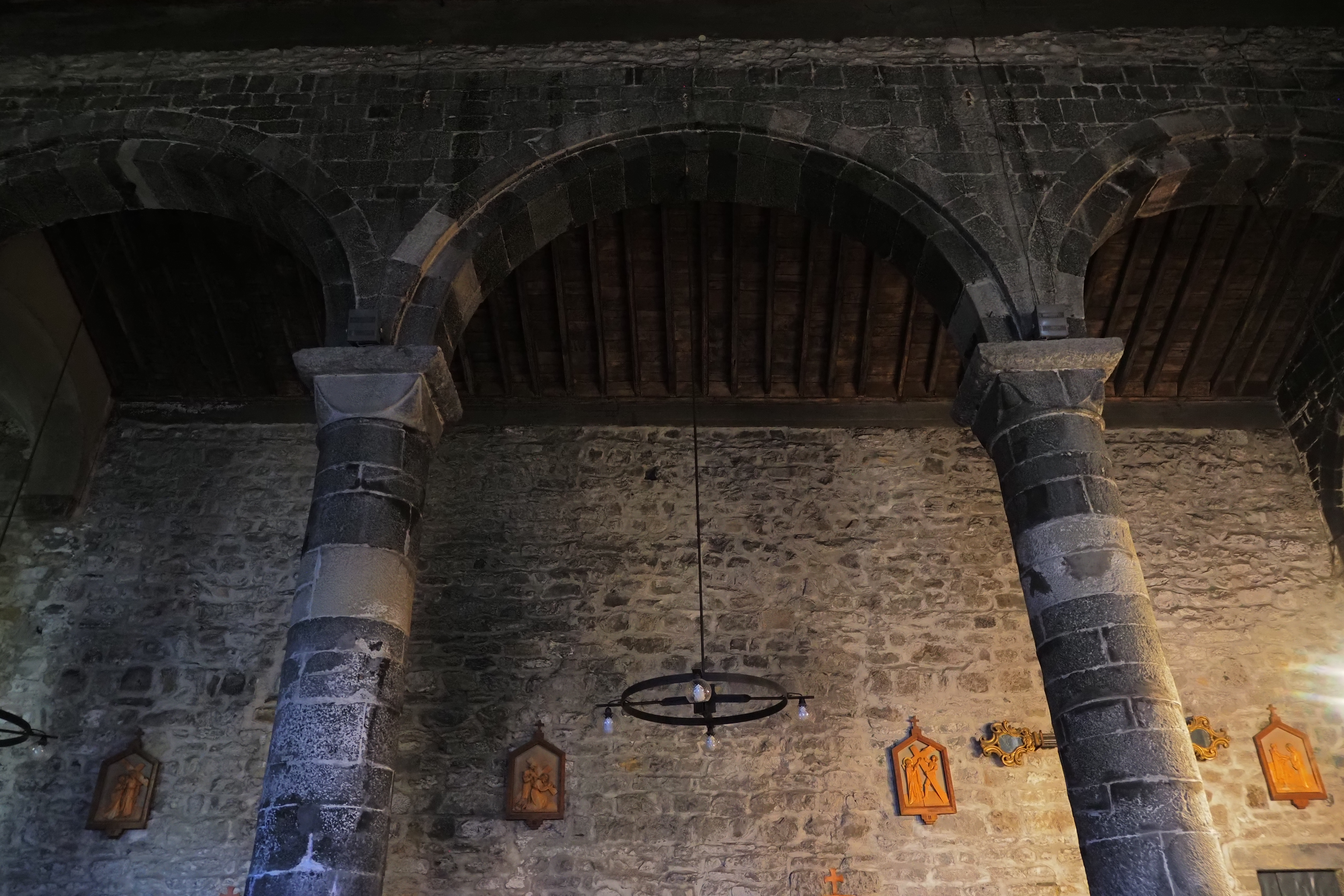 内部も石壁が主張された質素で力強い雰囲気。