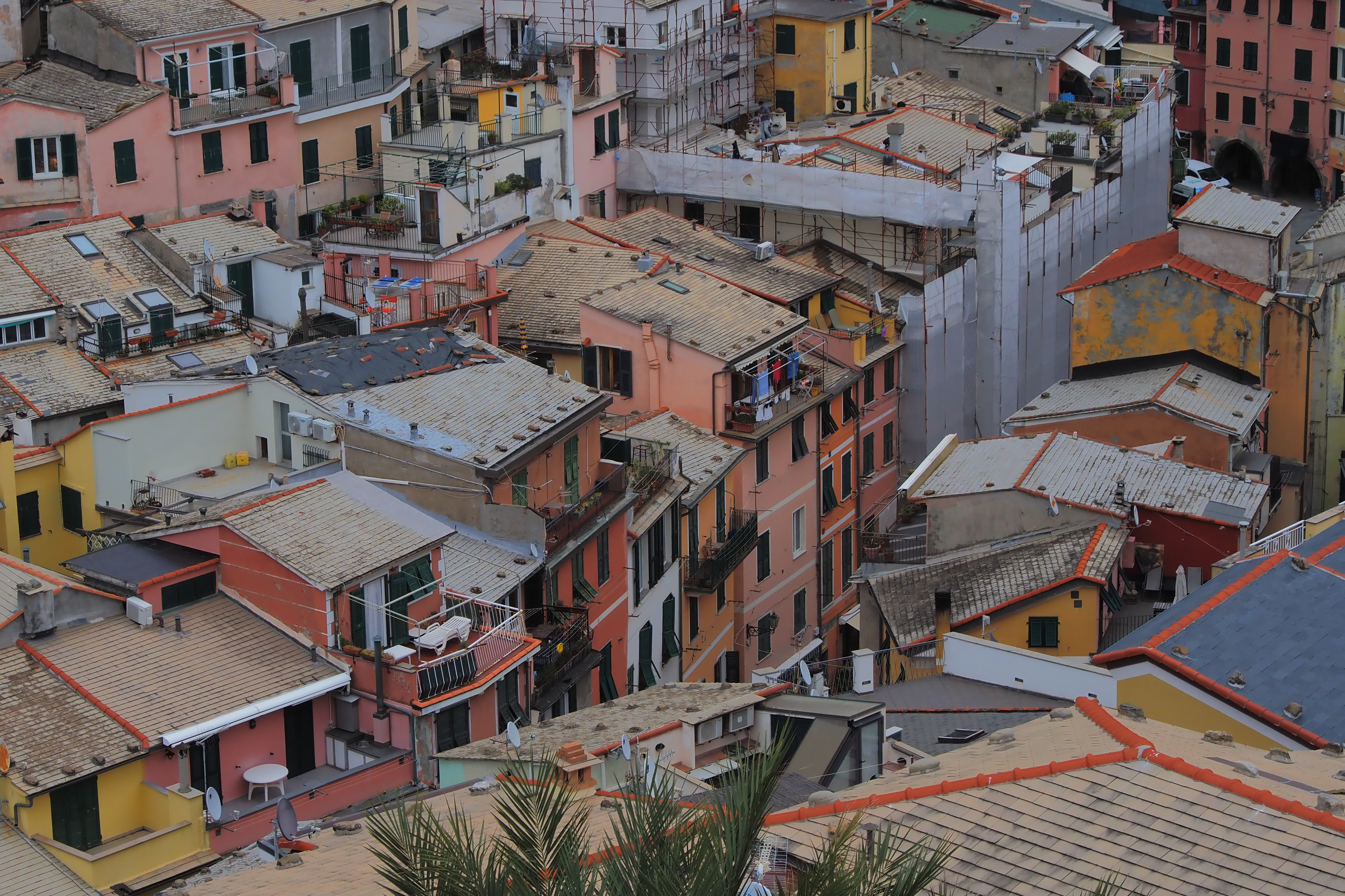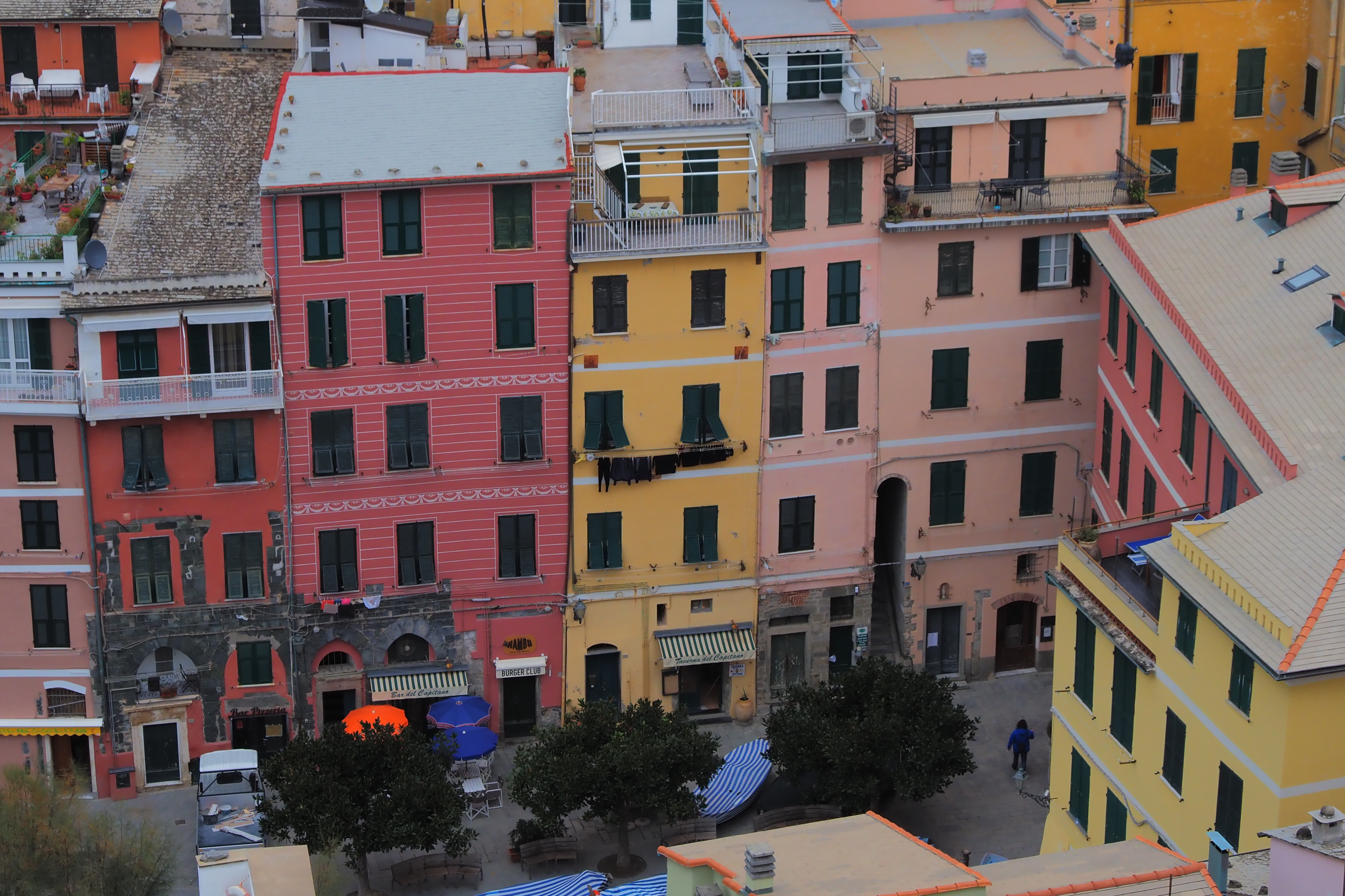 上から眺めると、入り組んだカラフルな建物もまた違った表情で見えて面白い。