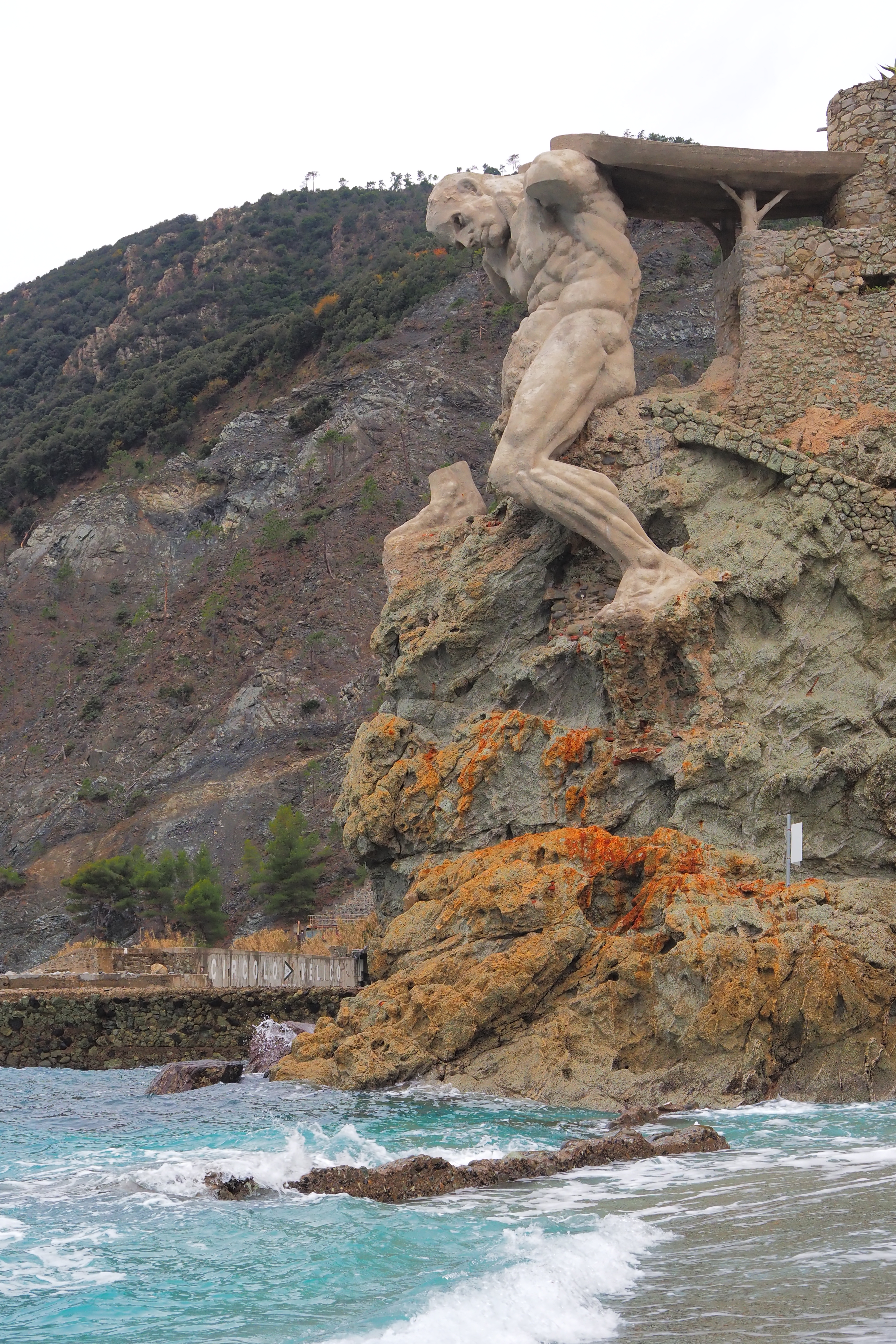 海岸ぎりぎりにある Statua del Gigante; ネプチューン像