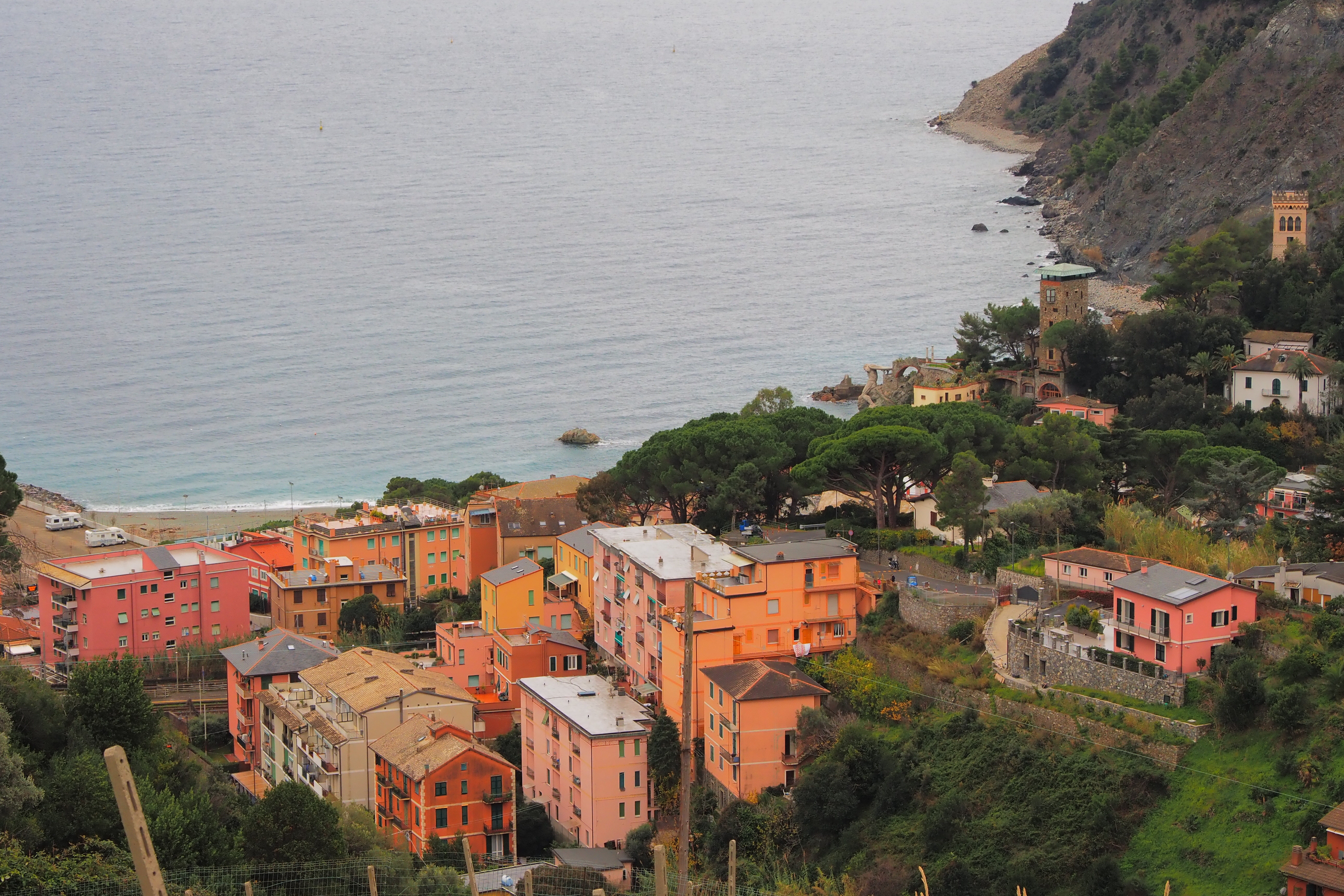 他のチンクエ・テッレの村々に比べると、あんまり家が密集した雰囲気もないし、唯一広いビーチがあって リゾート色が強いみたいだ。