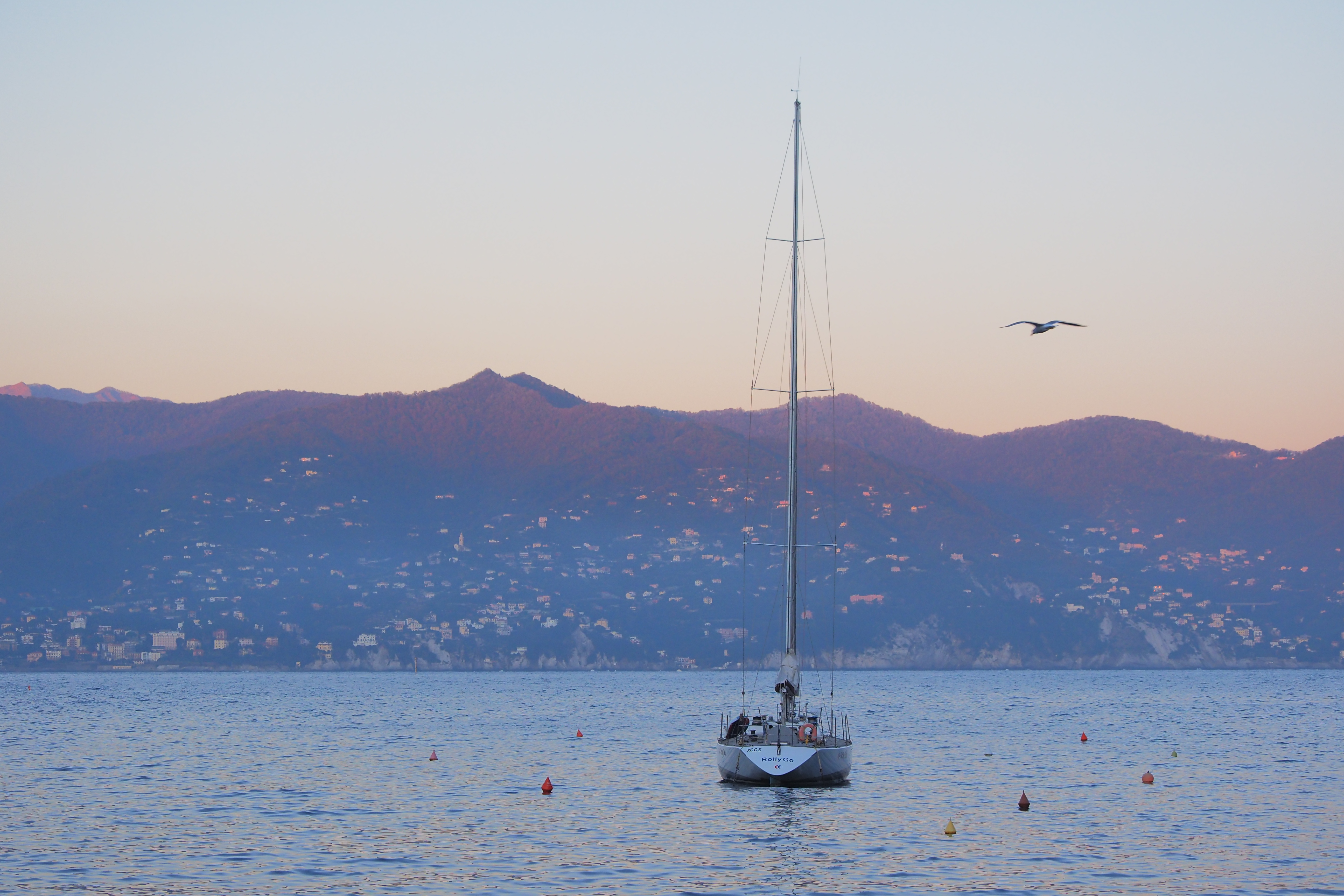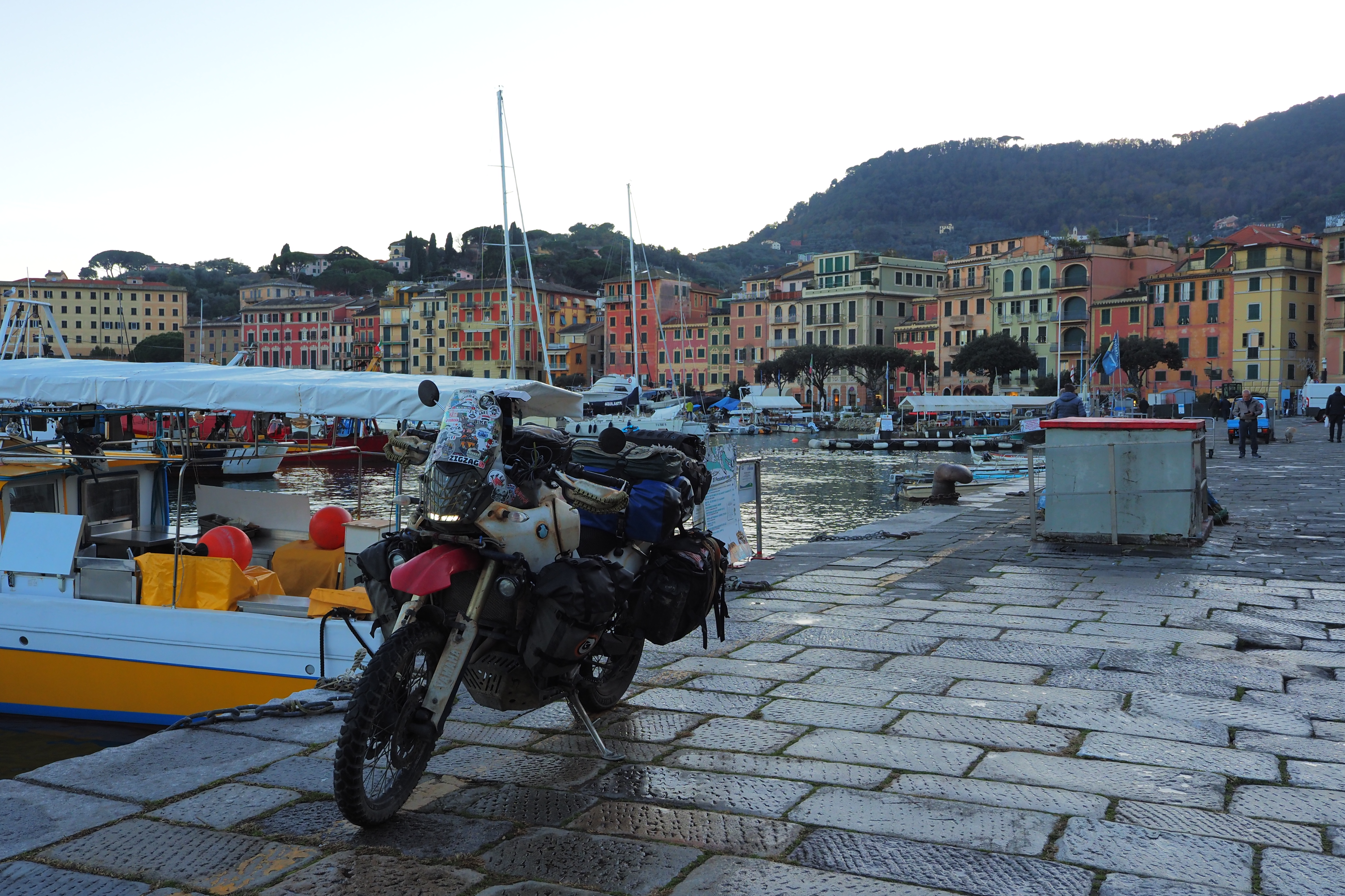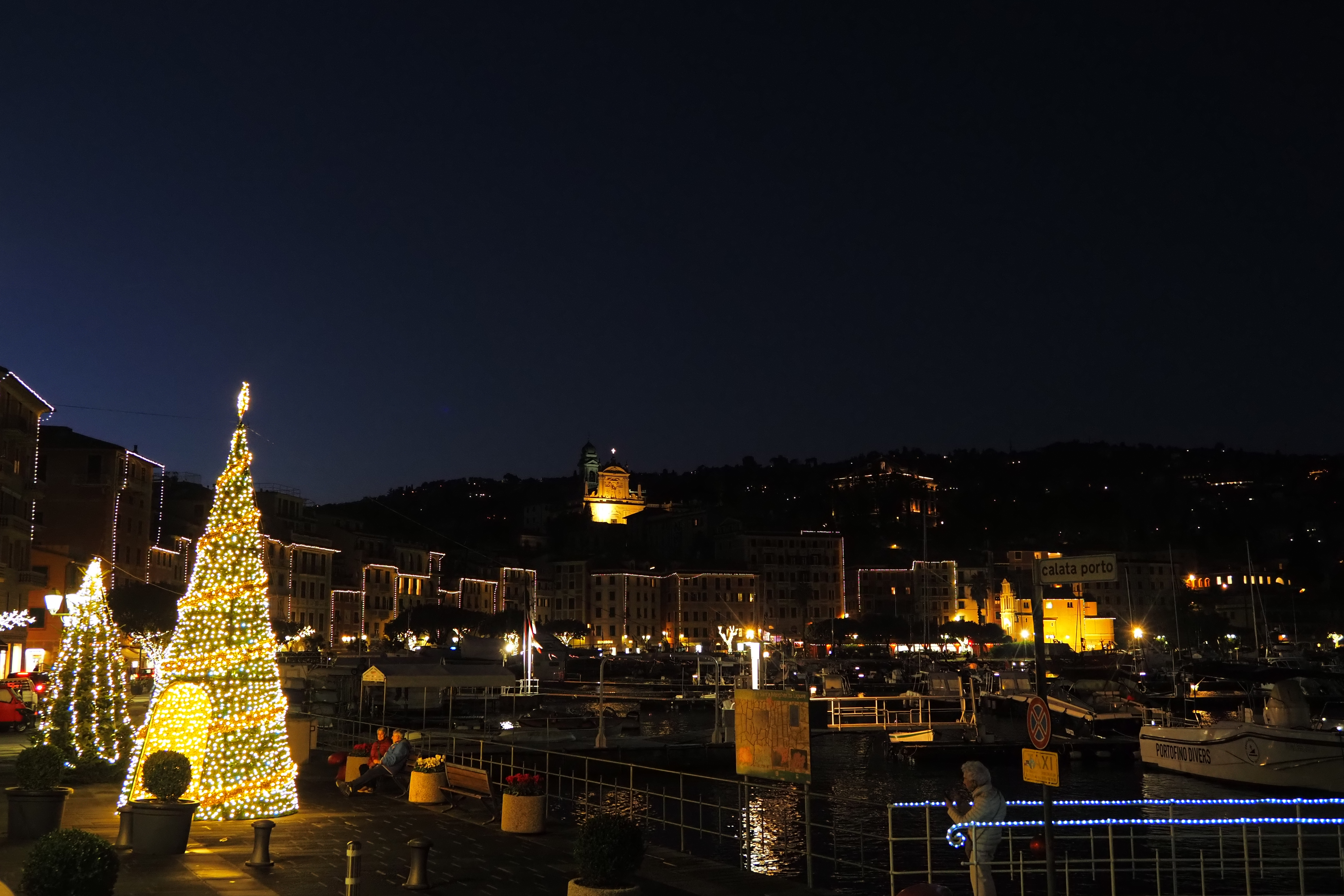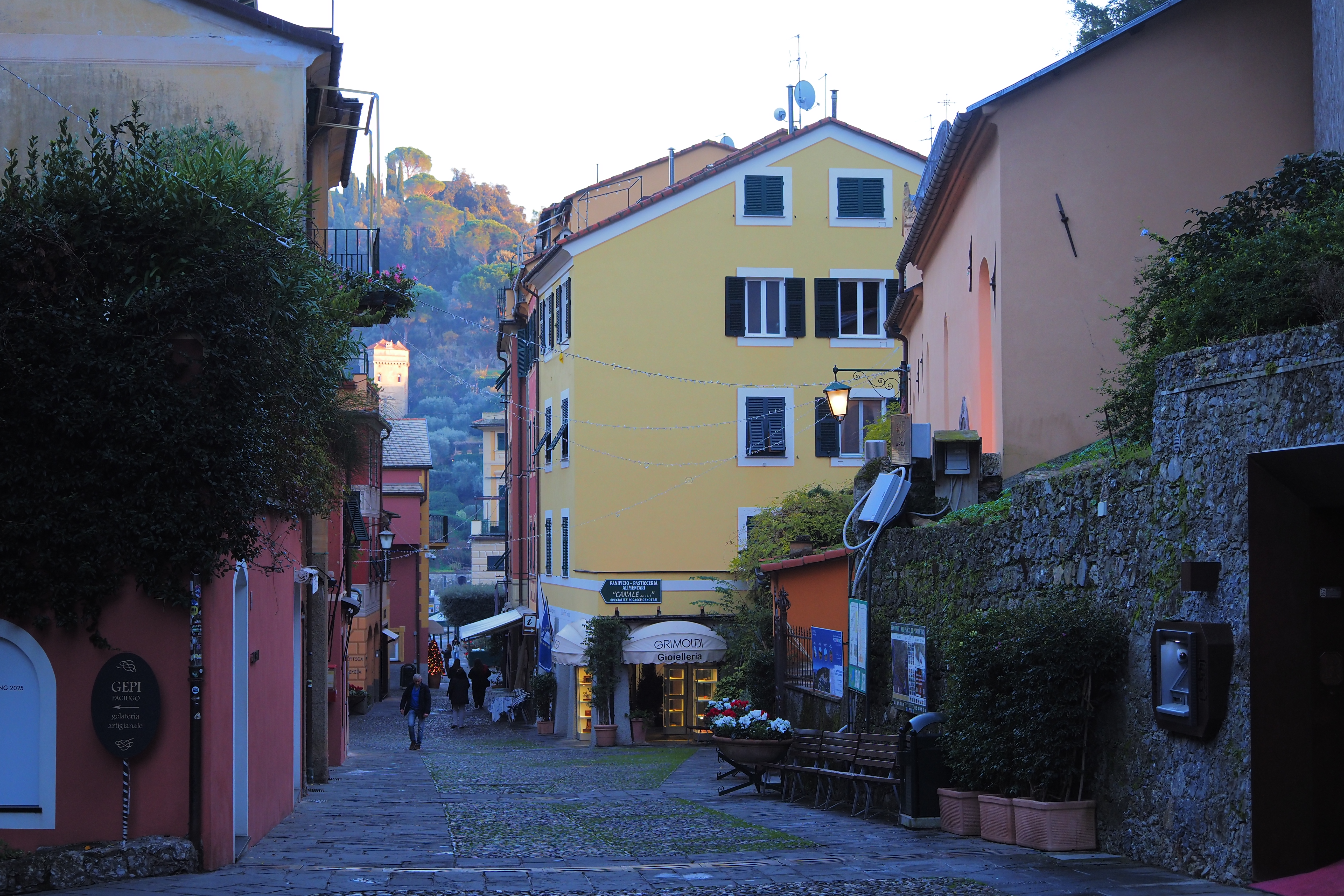 突き抜ける青空の下だともっとキラキラと輝くんだろうけど、ぎりぎり日の光があるうちに黄昏時のポルトフィーノを堪能できたのも これはこれでよかった。