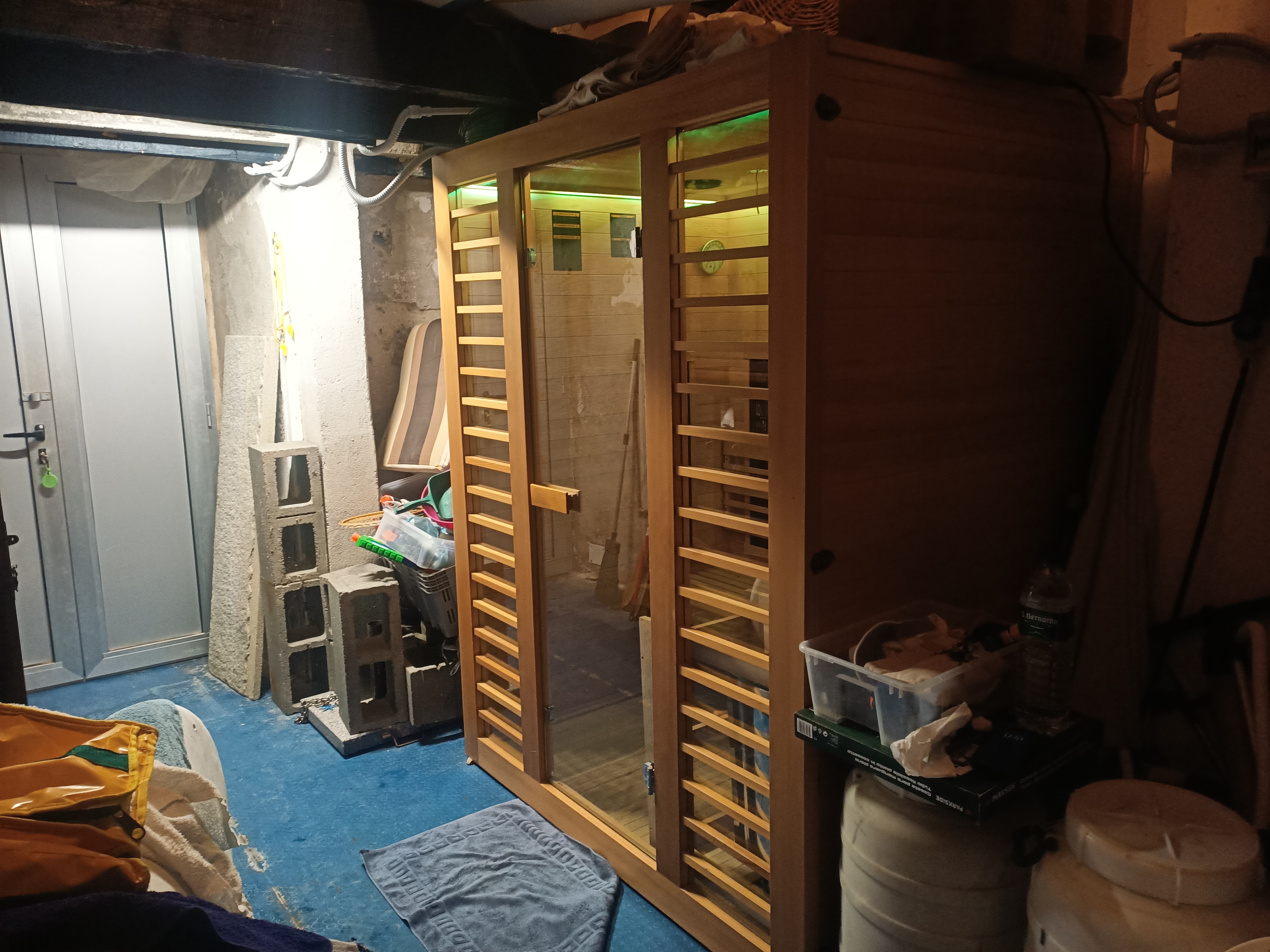 パーツが家に届いて、後は完全組み立て式らしいんだけど、ブースが狭い分温度とかは十分銭湯とかにあるそれと同じ感覚だった。