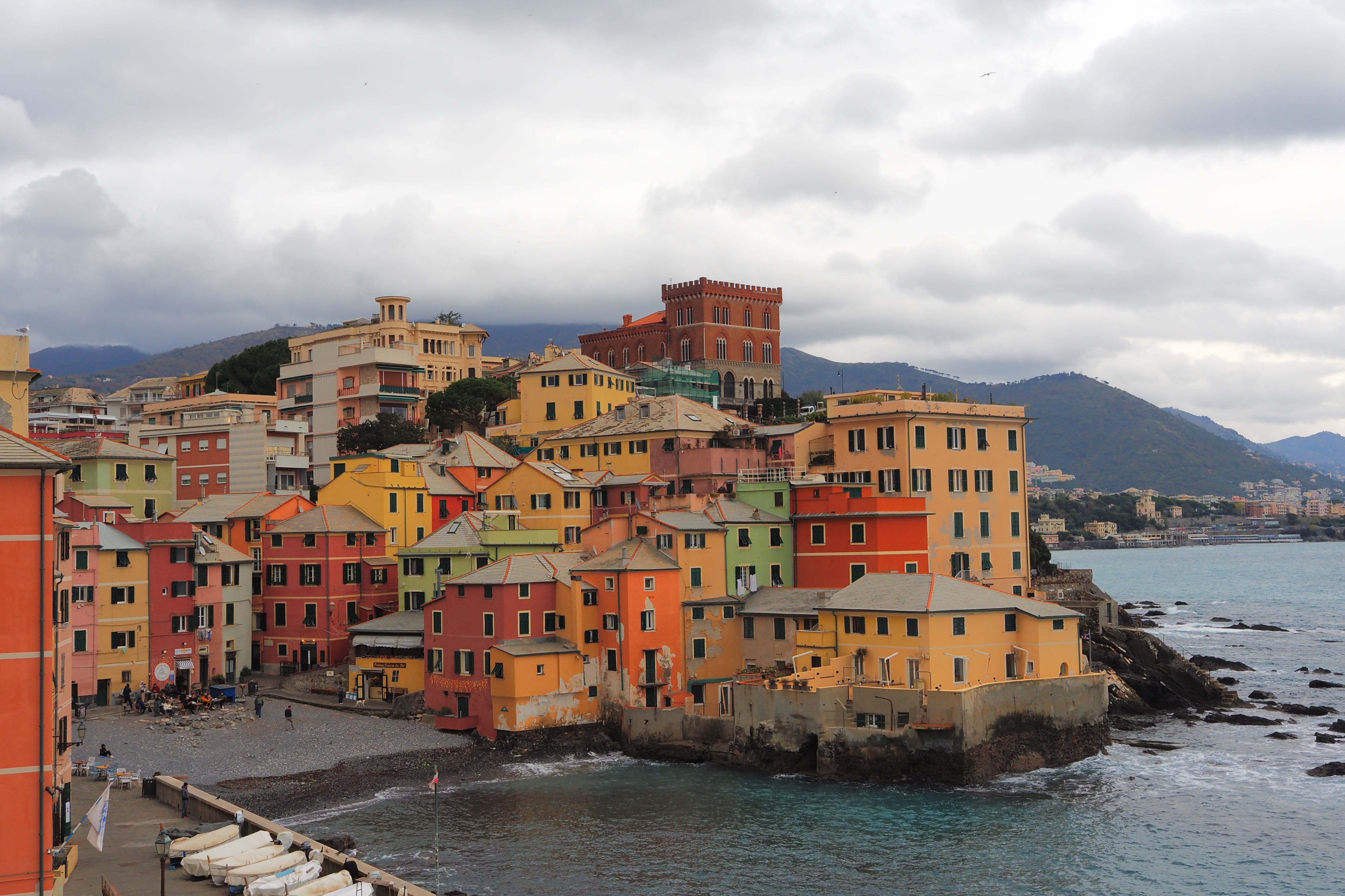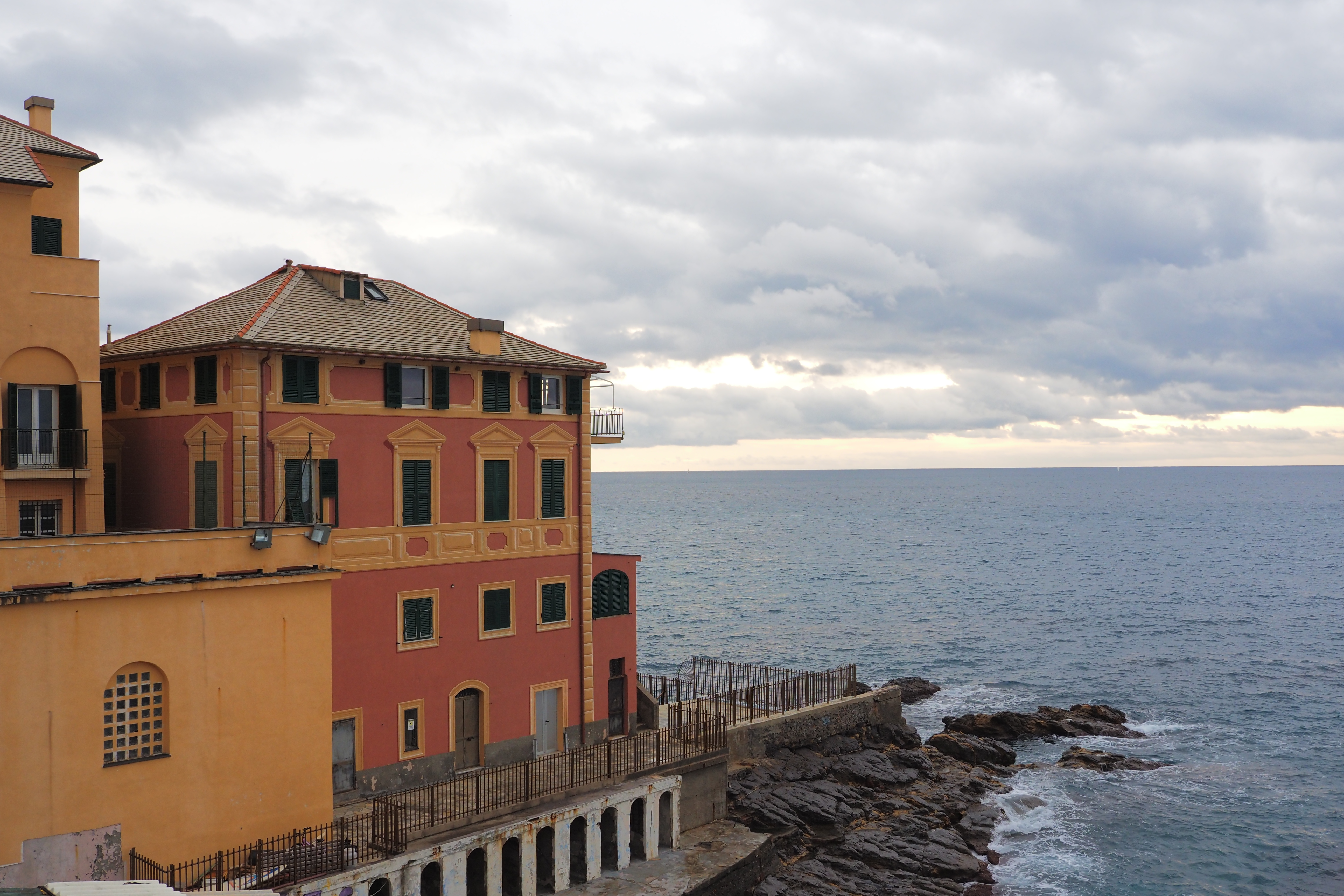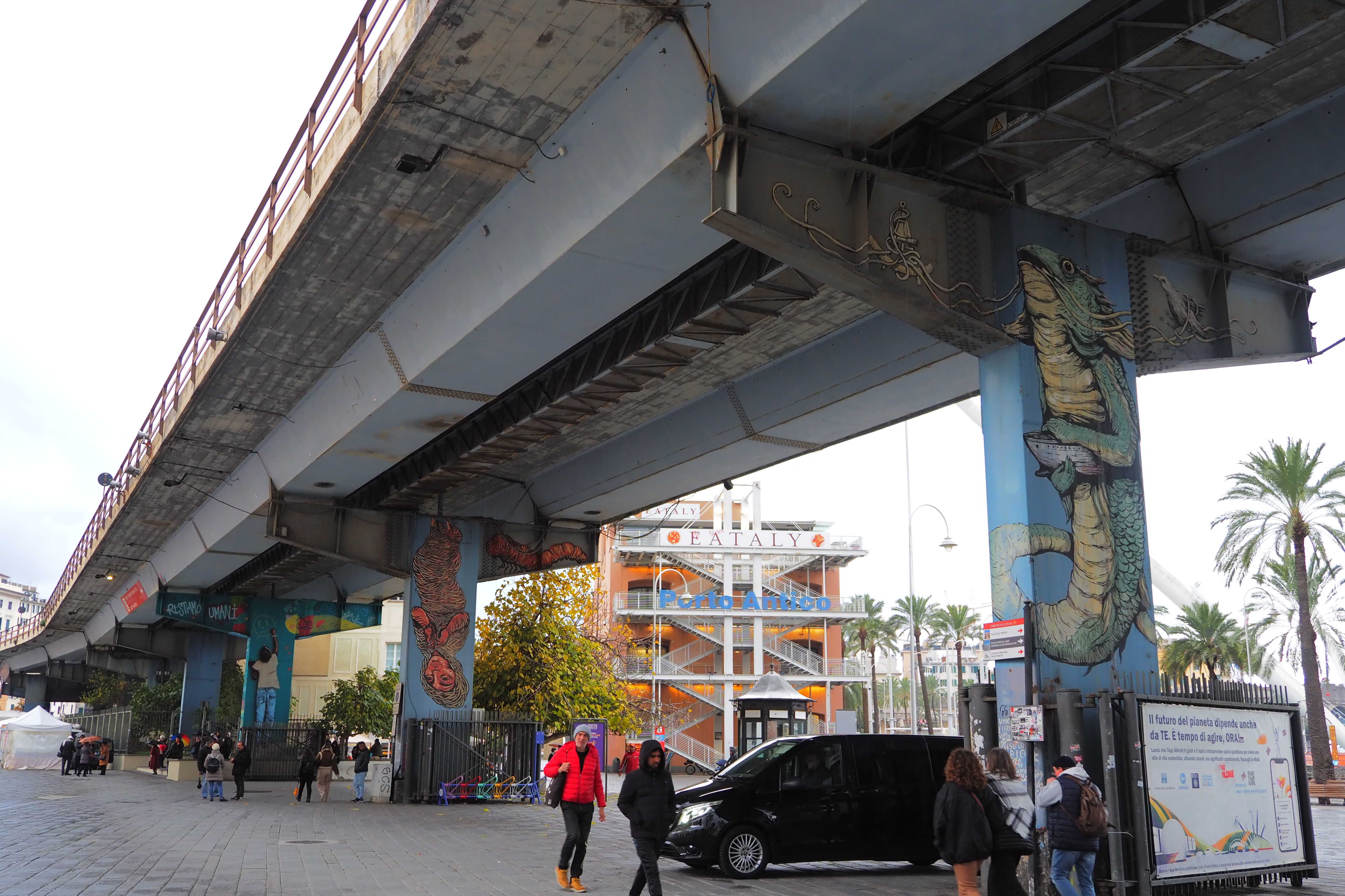 せっかく一瞬良くなたはずの天気は絶望的に悪くなっていくけど、Ericに教えてもらったスポットに上ってコルニッシュと旧市街を一望してみる。そうか、さっきのチンクエチェントに描かれてたのはジェノヴァの海岸方向からみた街並みだったのか。