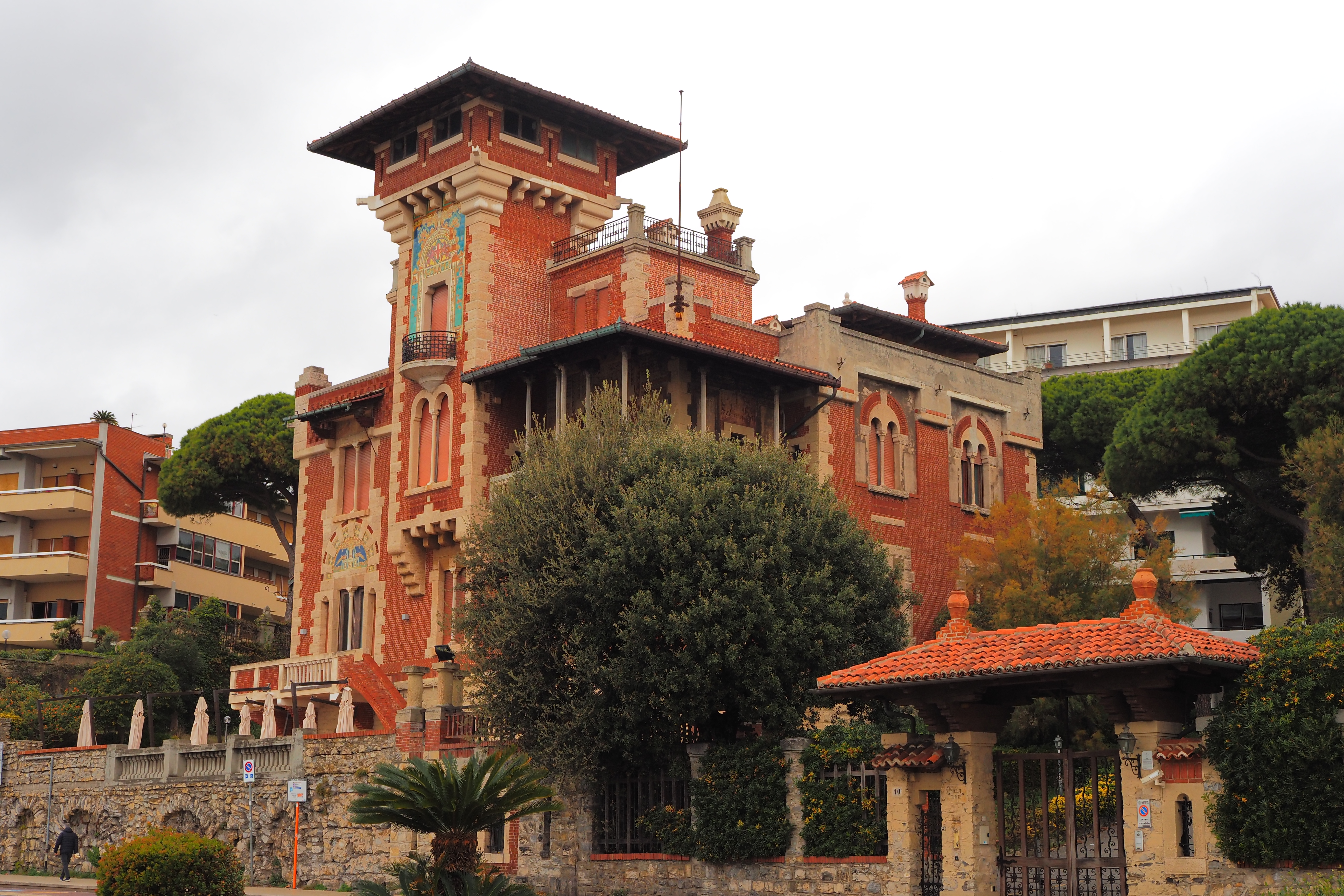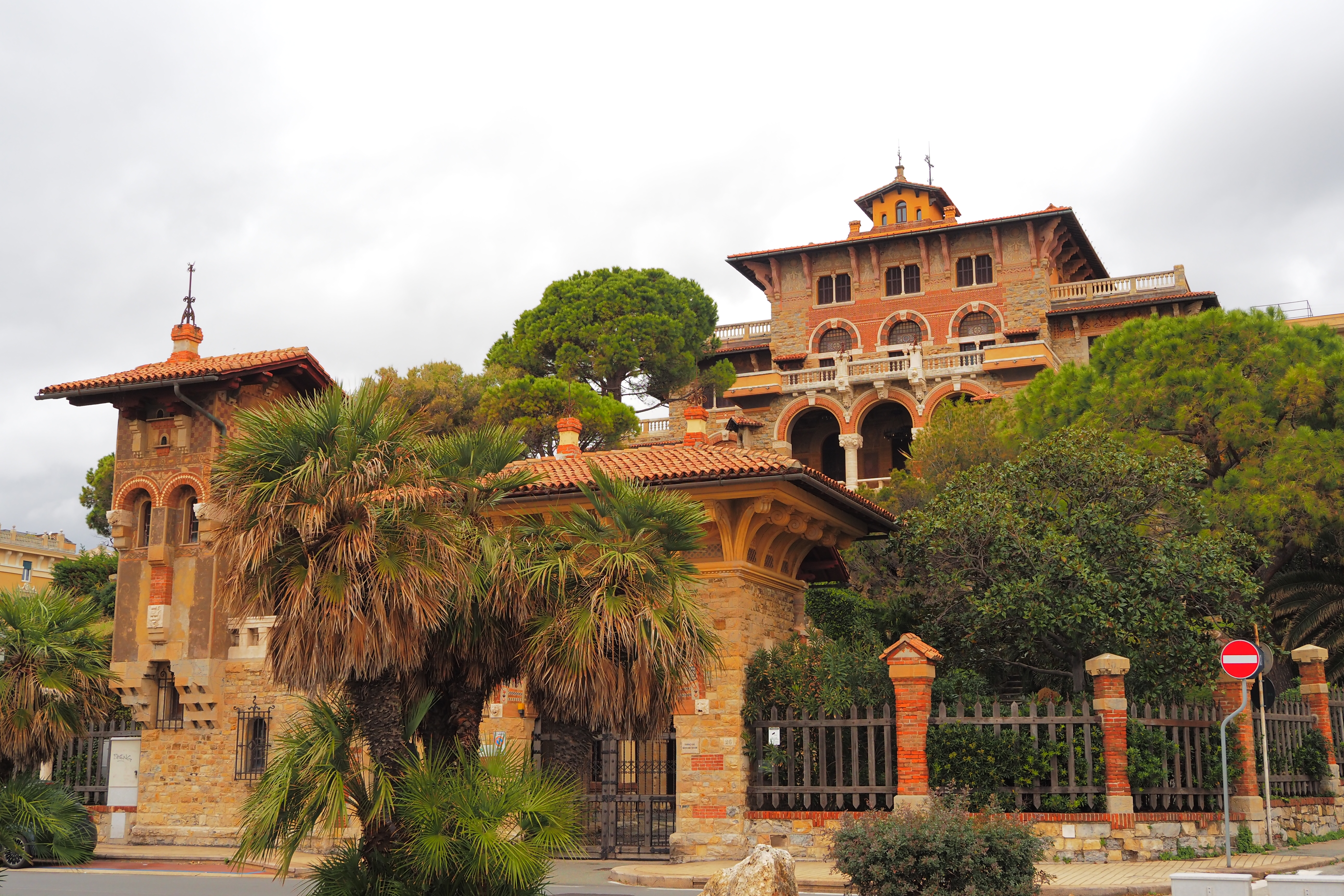 道の脇にはとんでもない豪邸がいくつも建ち並んでる。Albaro; アルバロ地区といって歴史的にジェノヴァの貴族や富裕層が別荘を所有してきたエリアらしい。