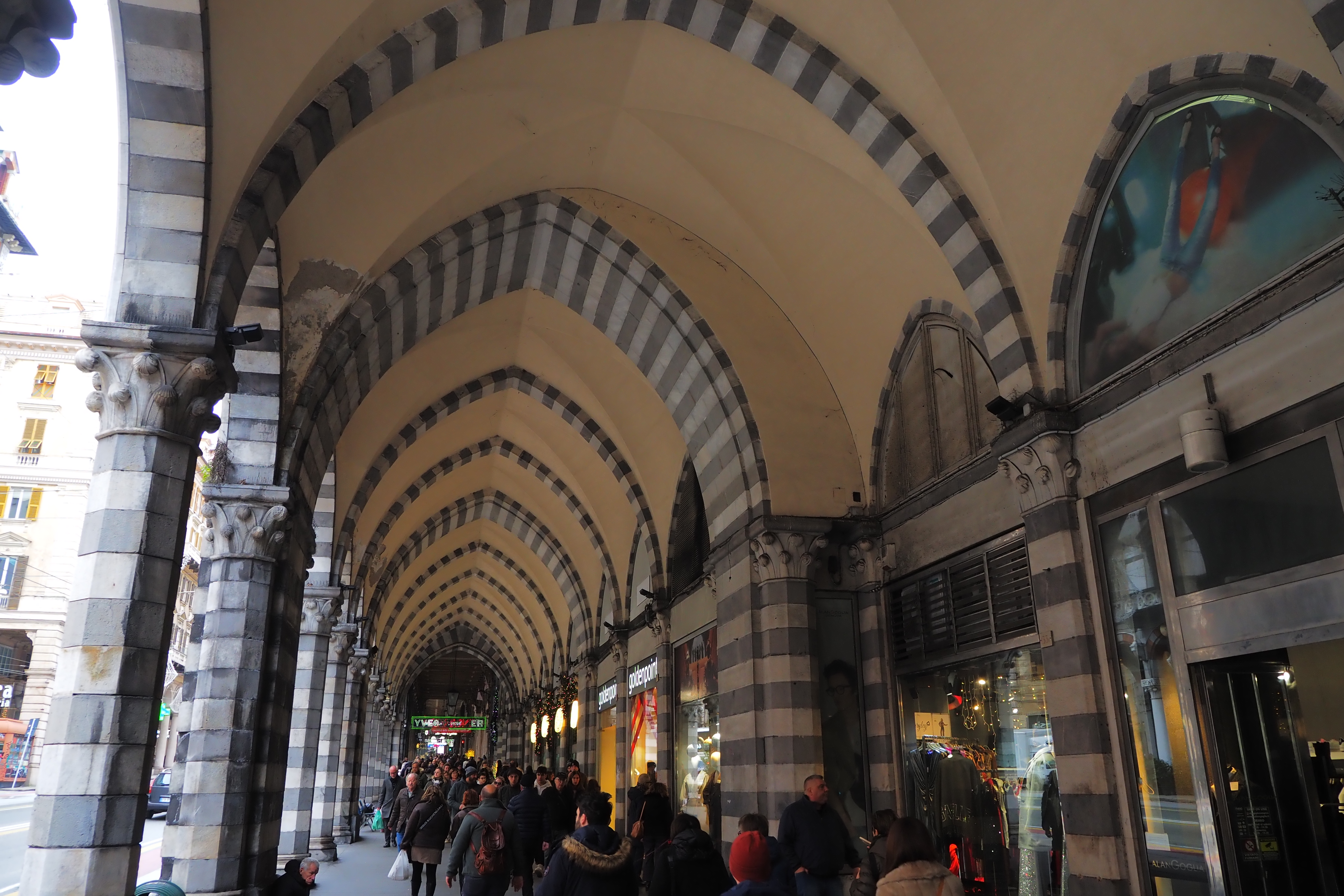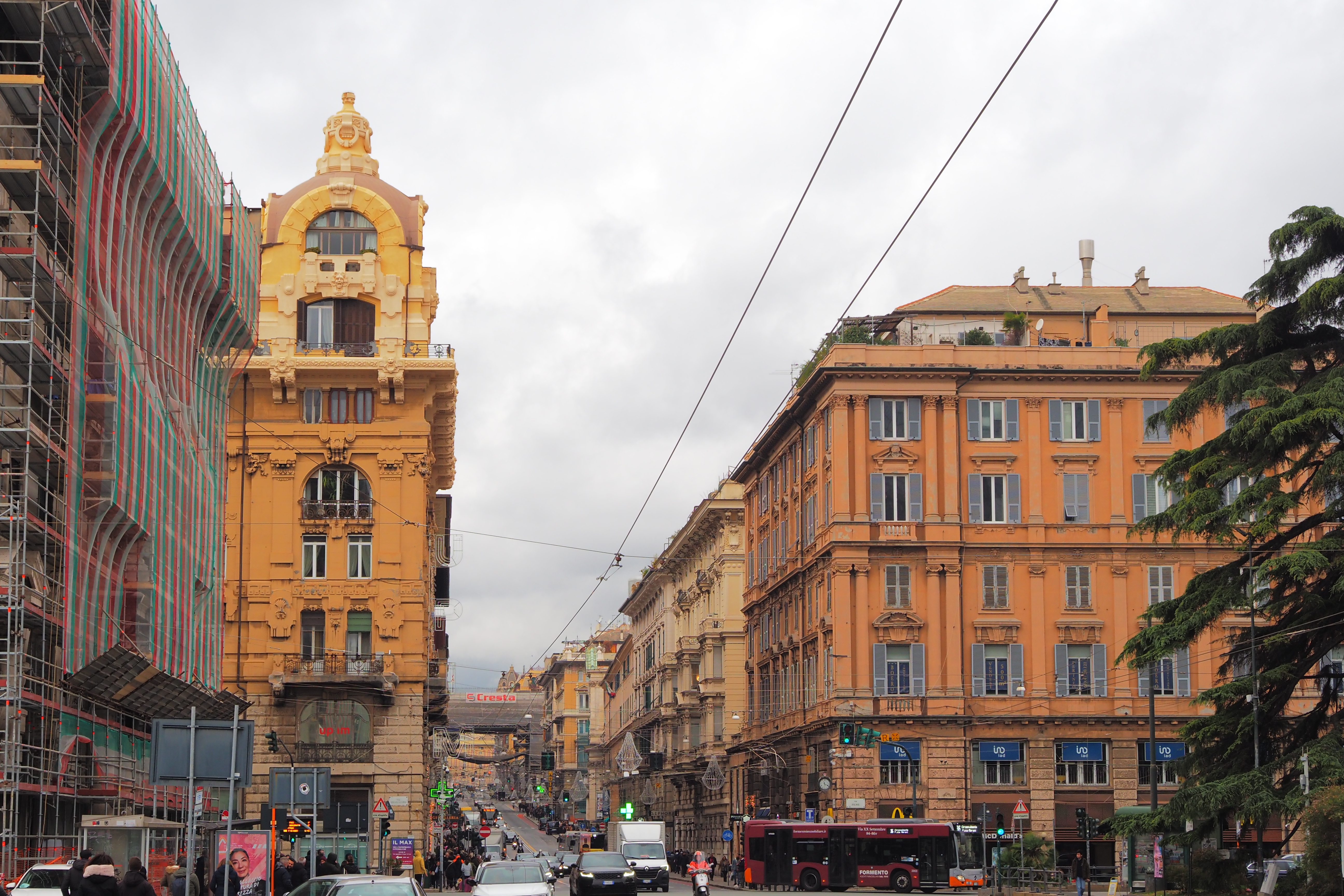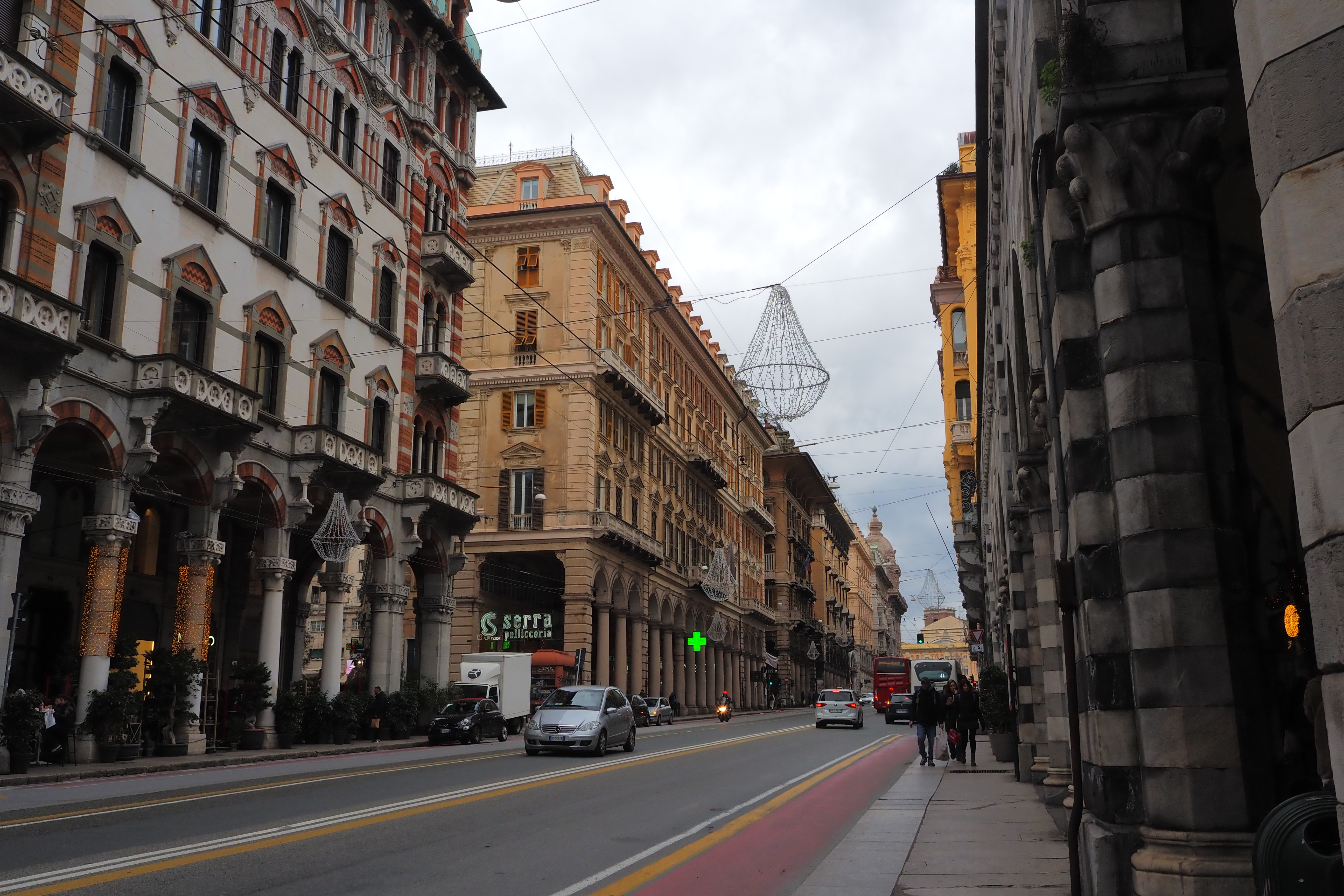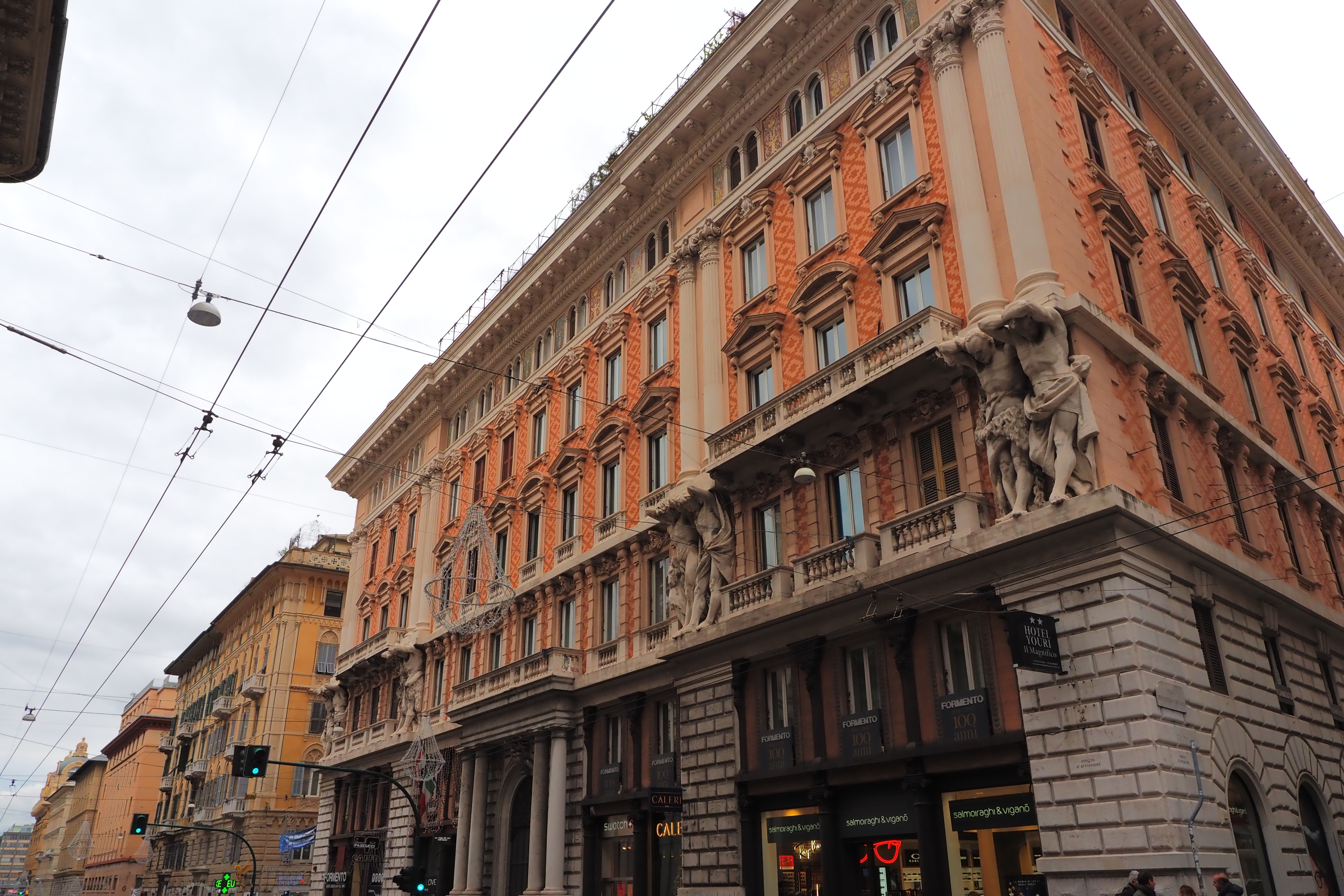 Via XX Settembre; 9月20日通りを通って西側に進んでいく。海洋貿易で栄えたジェノヴァには、当時富裕者たちがこぞって建てた豪邸や宮殿が今も街中に溶け込んでる。