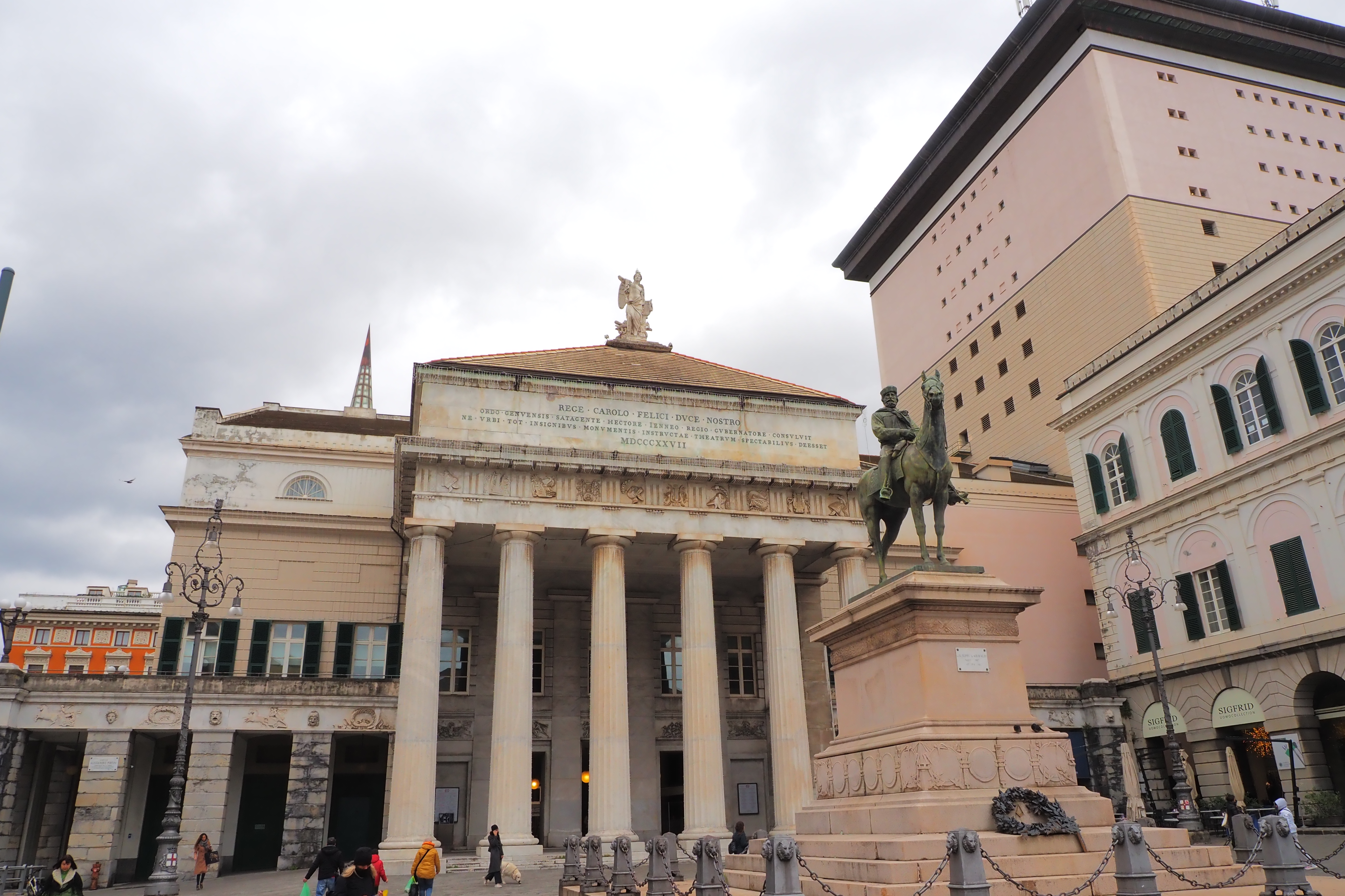 イタリア初の証券取引所 Palazzo della Borsa Valoriや、オペラハウス Teatro Carlo Felice が建ち並ぶ。