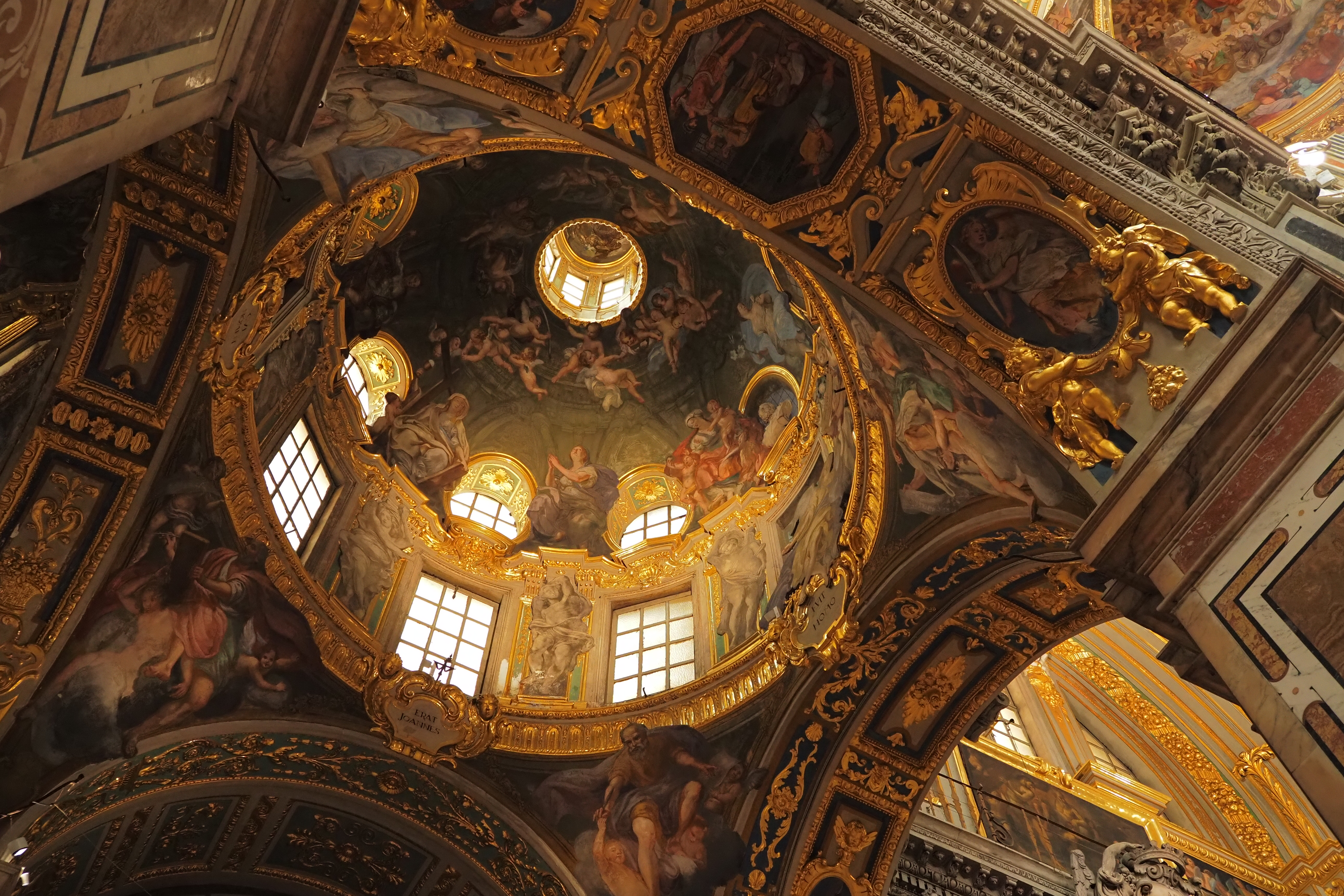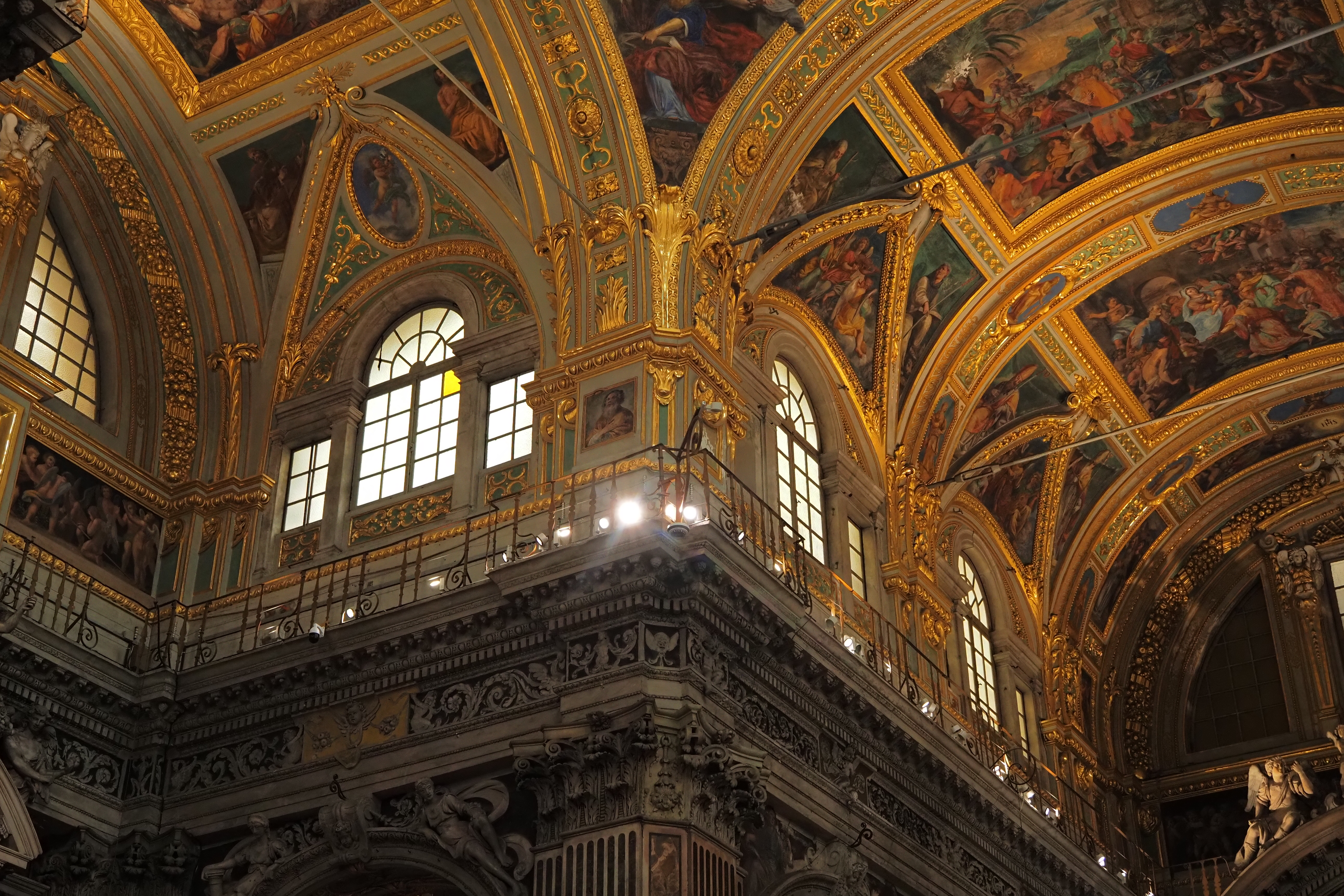 天井を埋め尽くす巨匠たちのフレスコ画を金箔が反射した鈍い光が照らす。