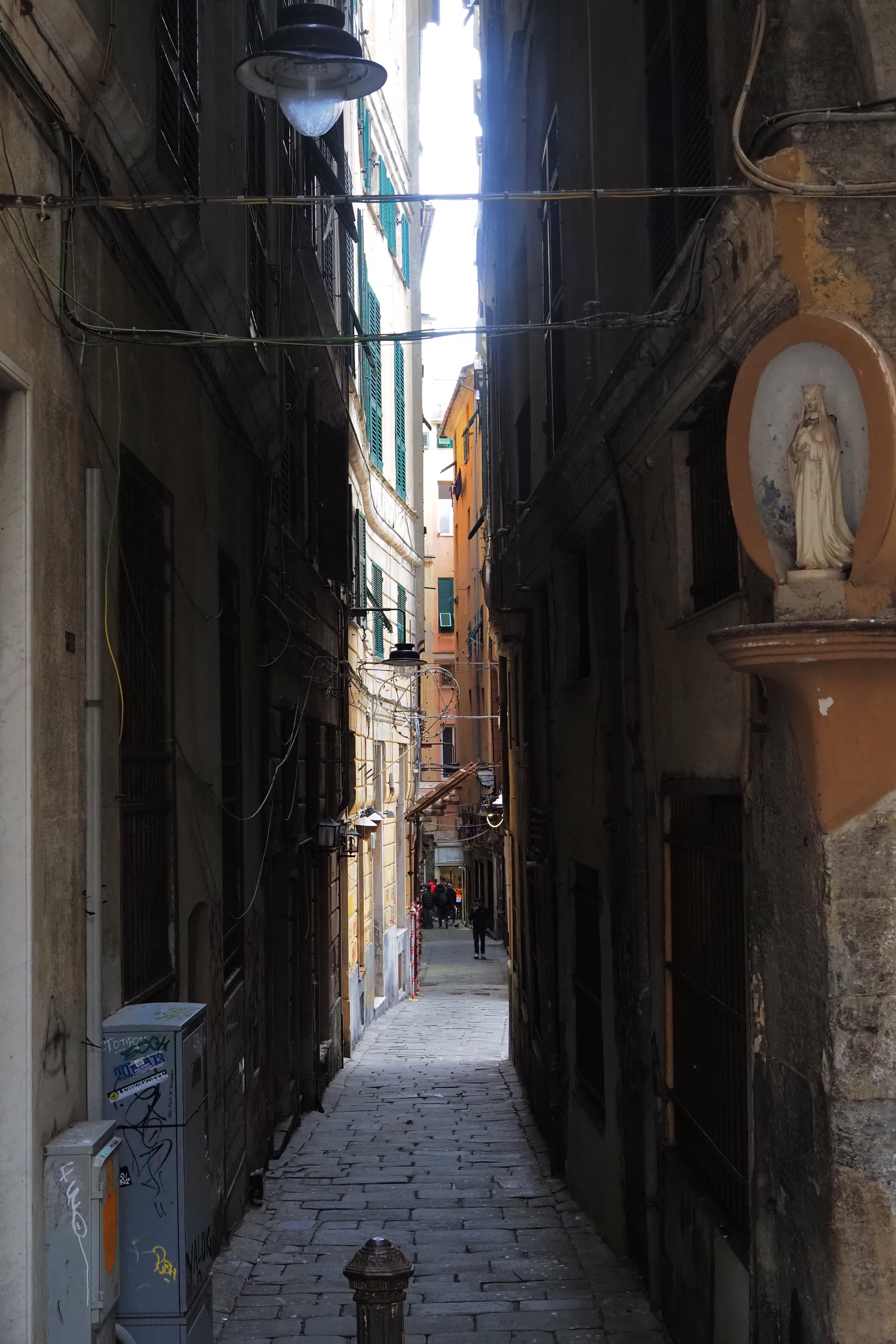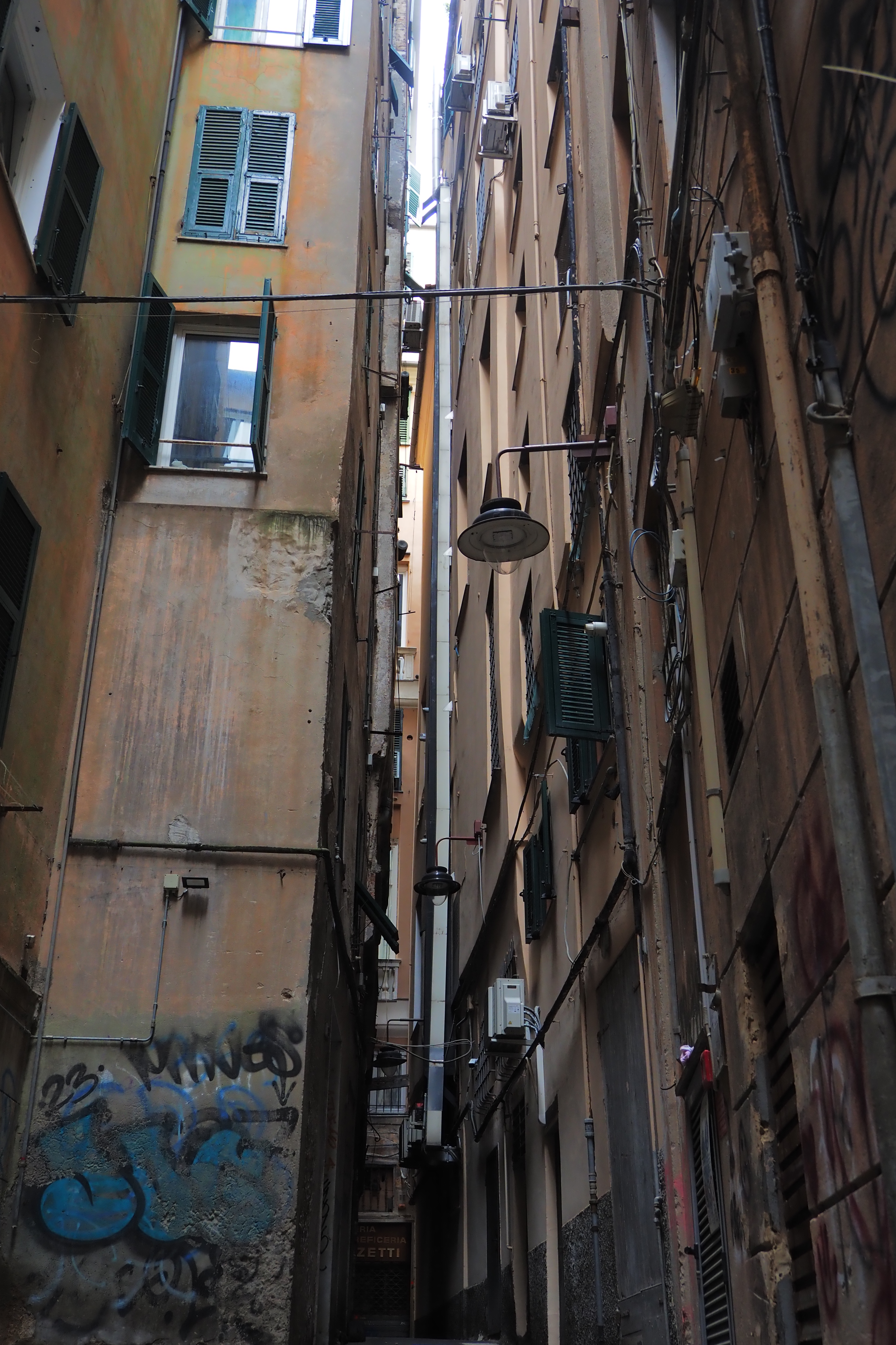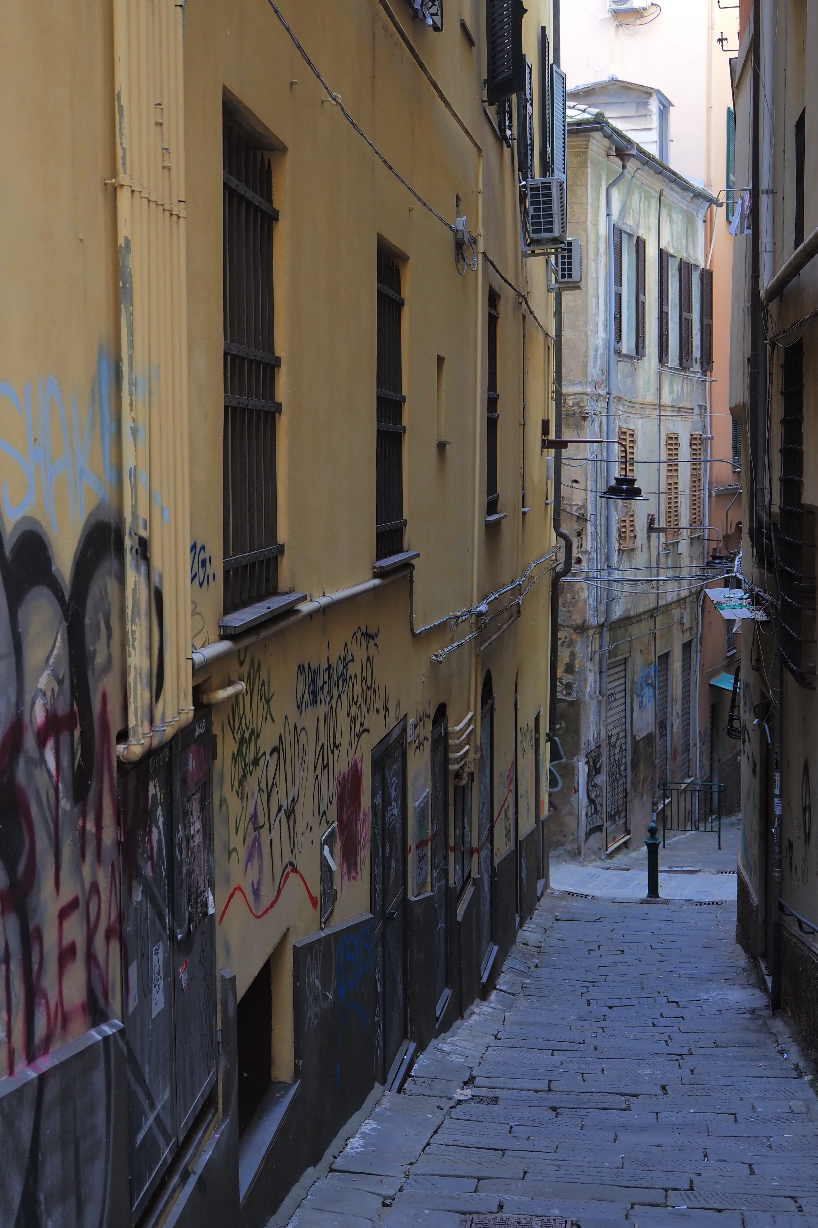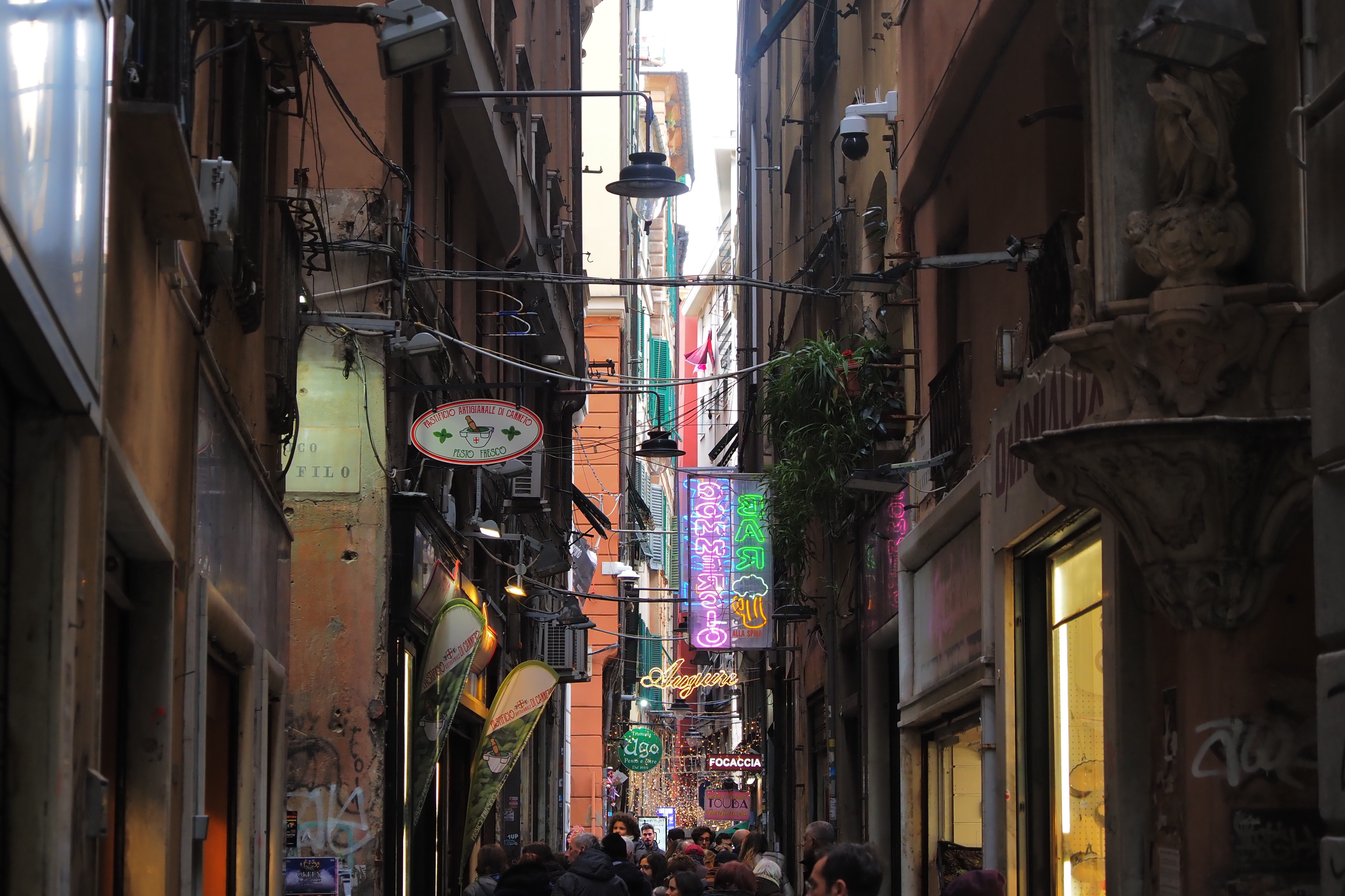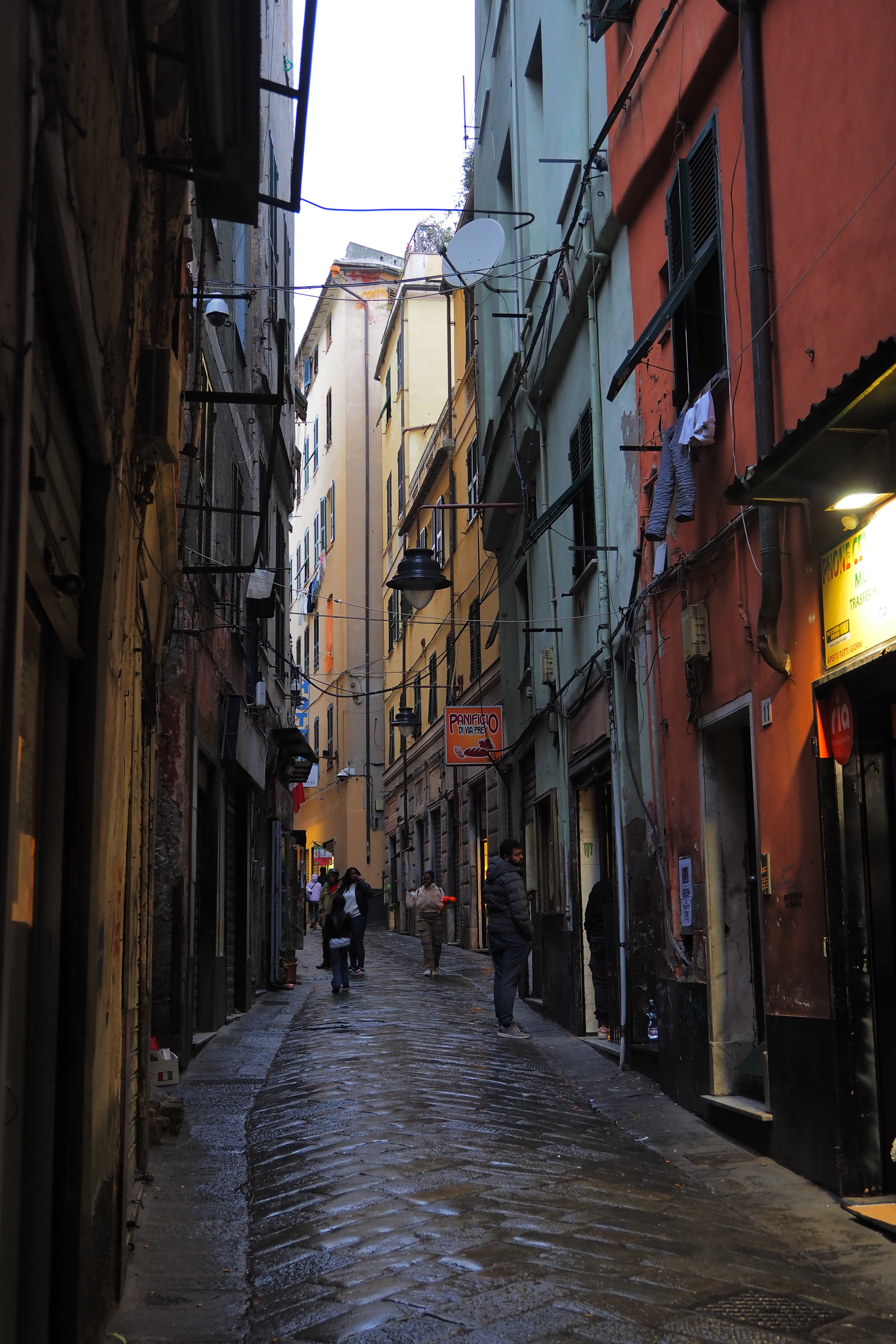 1970~90年代、特にジェノヴァ旧市街の西寄り Via di Pre; プレ通りの入り組んだ細い路地はイタリアン・マフィアの路上犯罪の温床でスラム化して 地元住民が流出するほど危険だったらしい。時代を追って、その犯罪インフラを利用するかたちでアフリカ系移民がその主導権を握ってるみたいだけど、近年にかけては旧市街の再開発や町全体のグローバル化で ほとんど安全にはなってきてる。