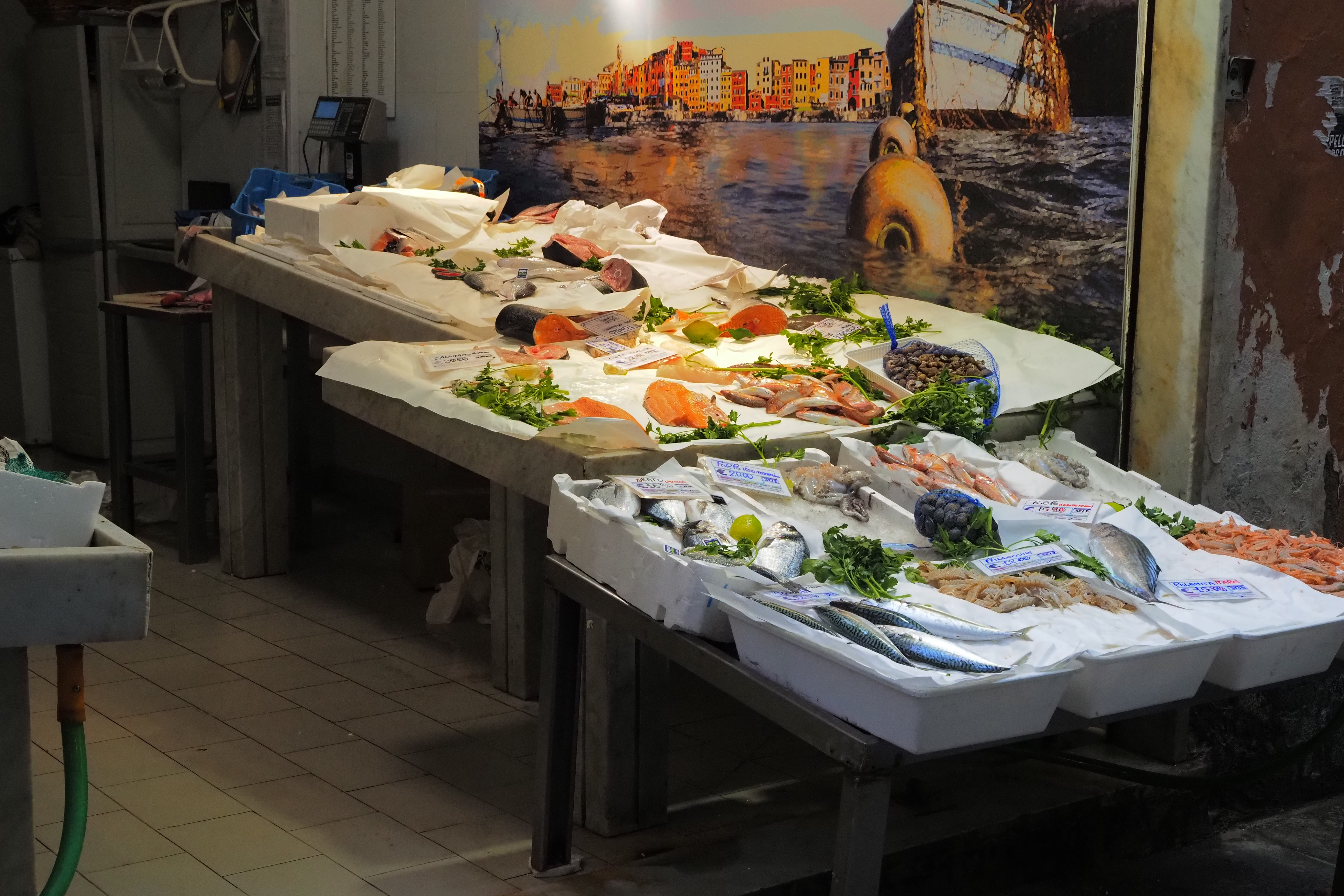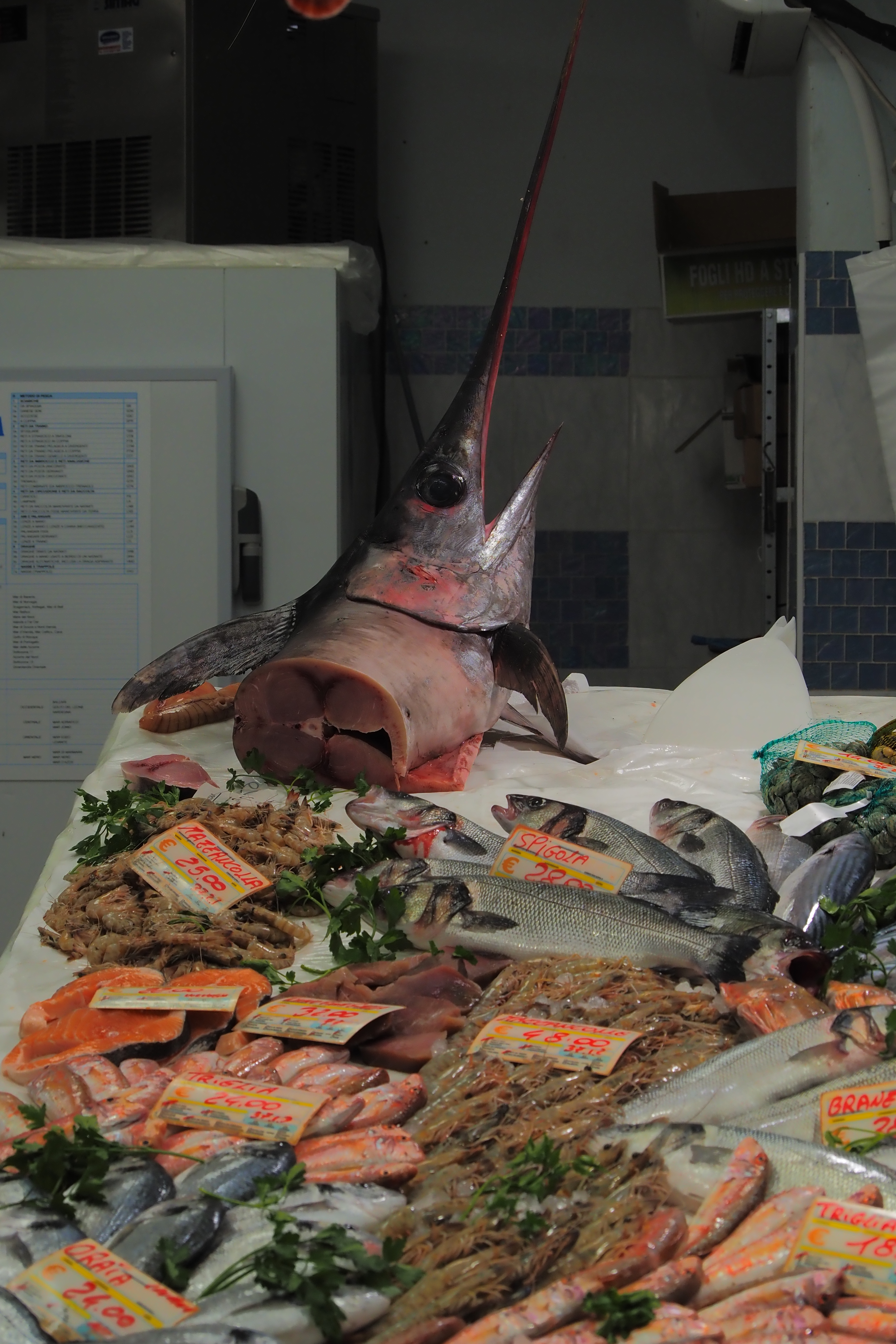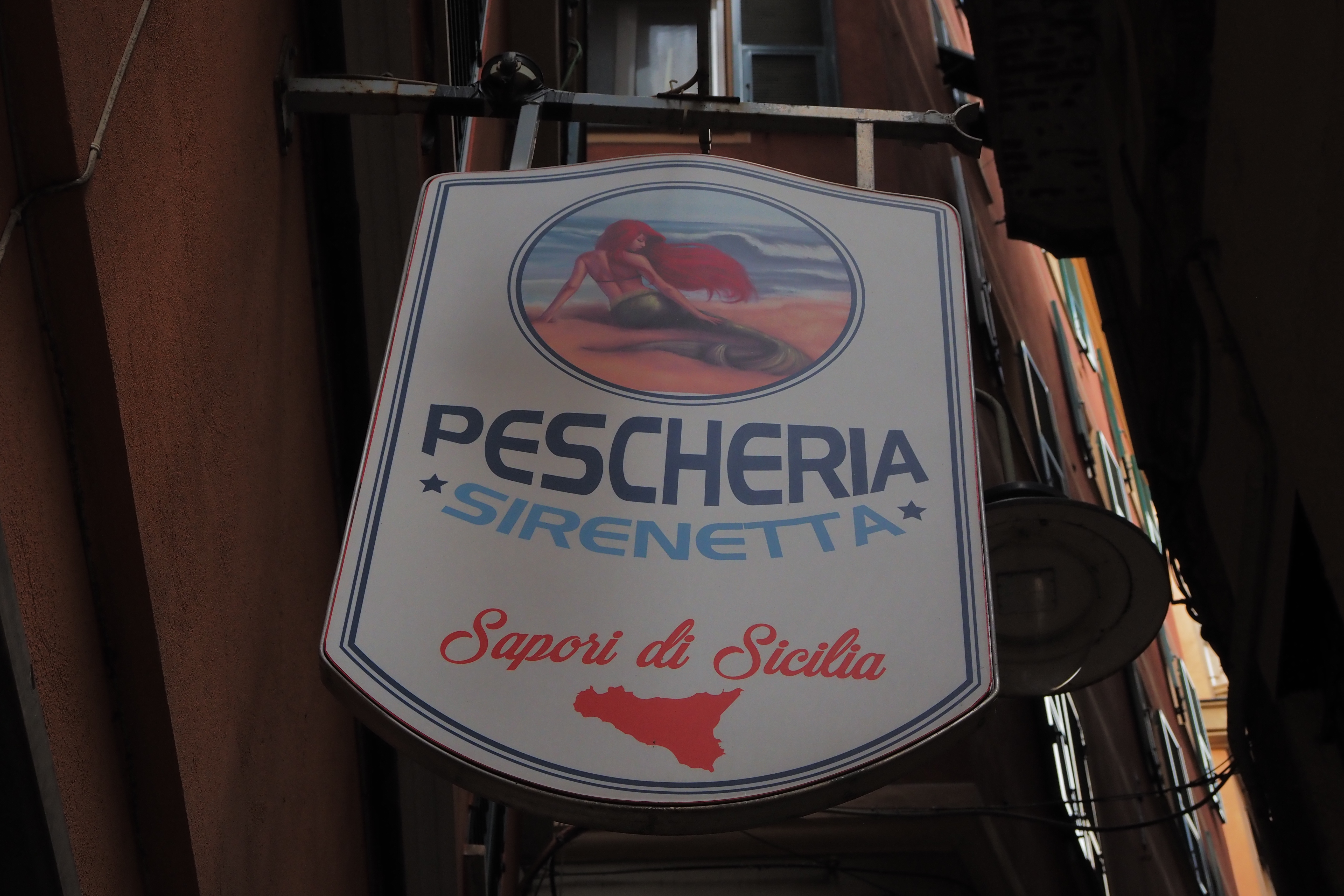 看板のデザインが秀逸な魚屋を横目に歩いていく。