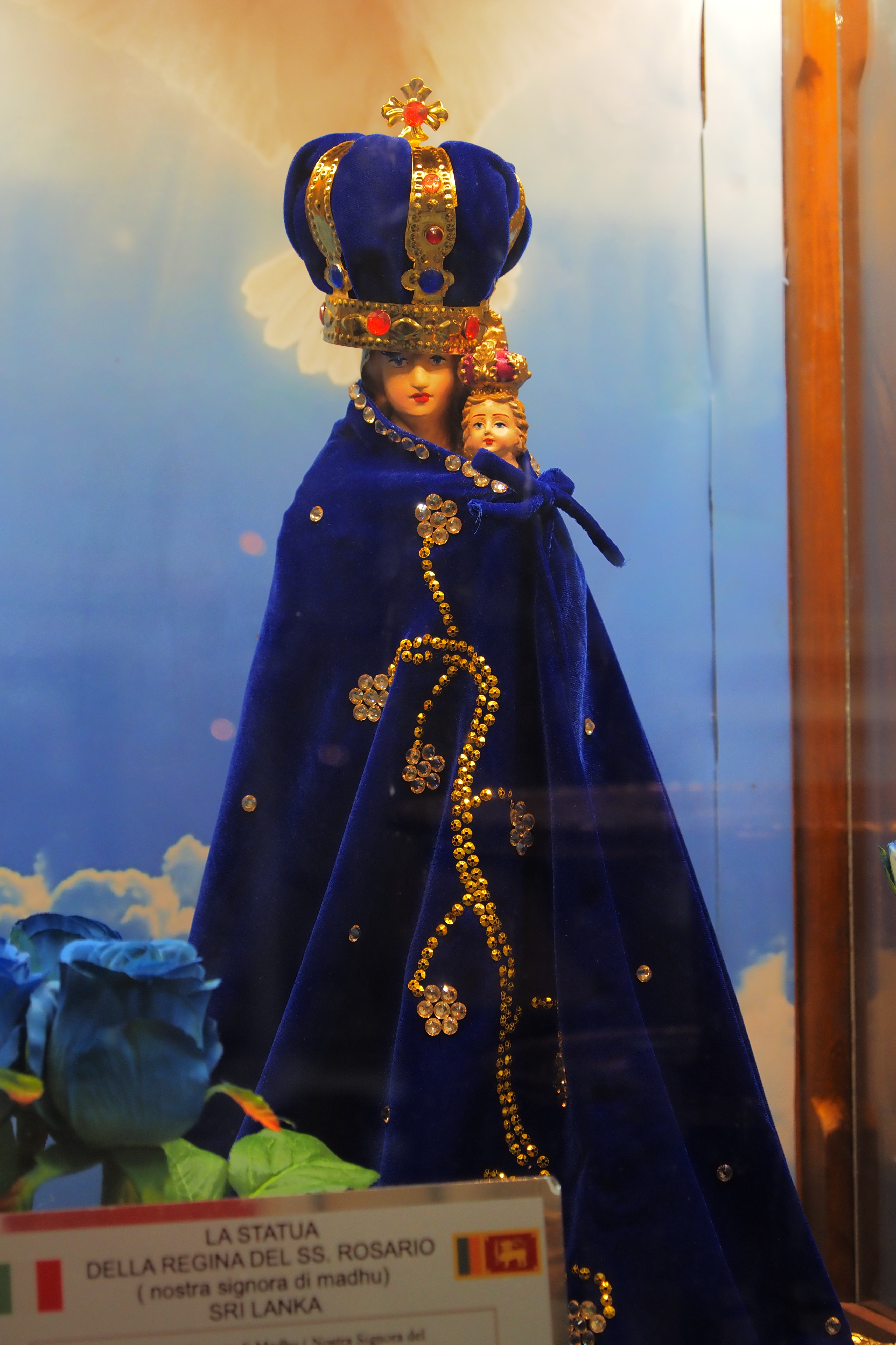 教会内にはなぜか、バービー人形に司祭の服を着せたような Nostra Signora di Madhu; マドゥの聖母像が置かれていた。スリランカのカトリック教会で崇拝されるものらしい。