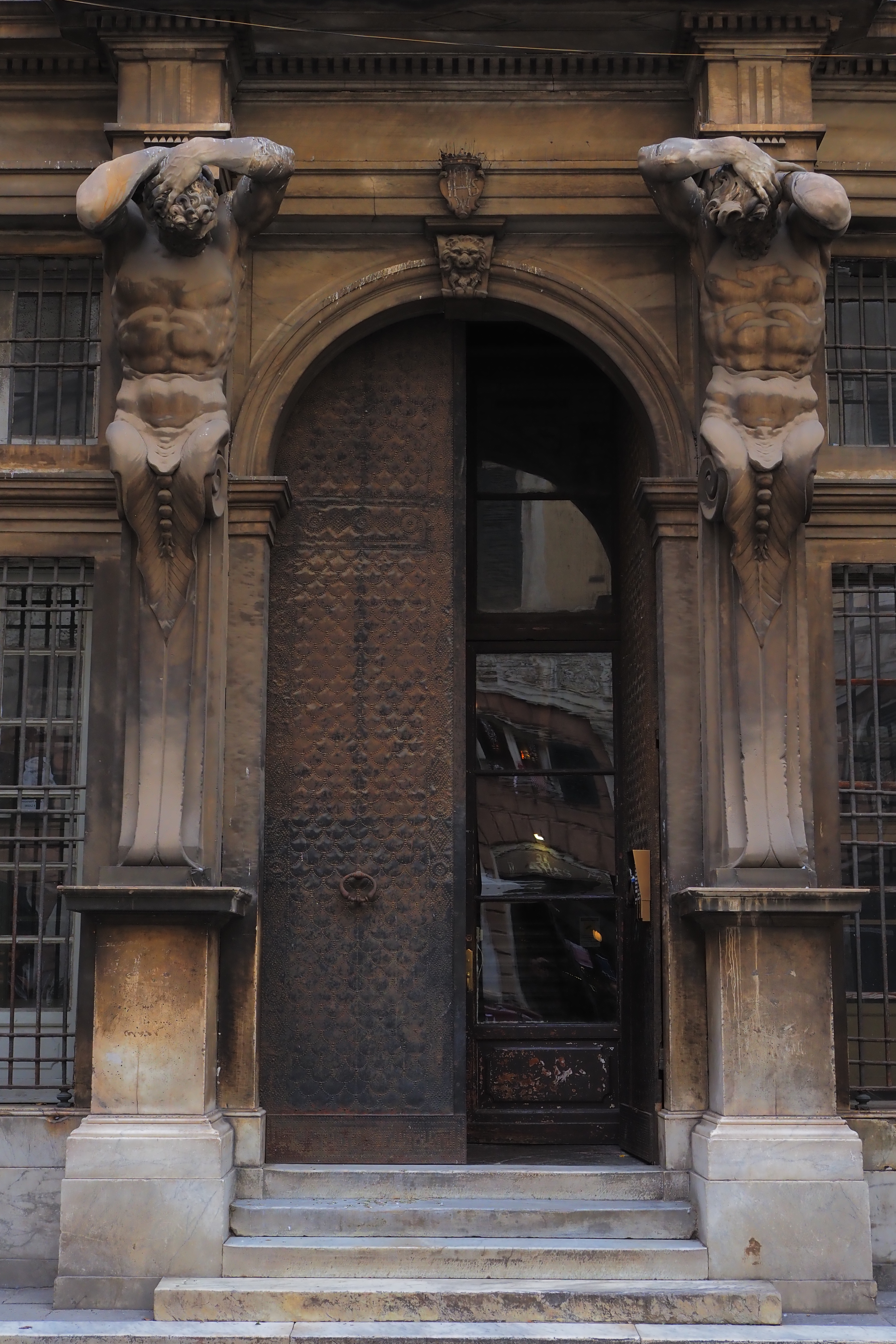 プリニョーレ宮の入口を支える2体の巨人像。かっこええ門構えだな。