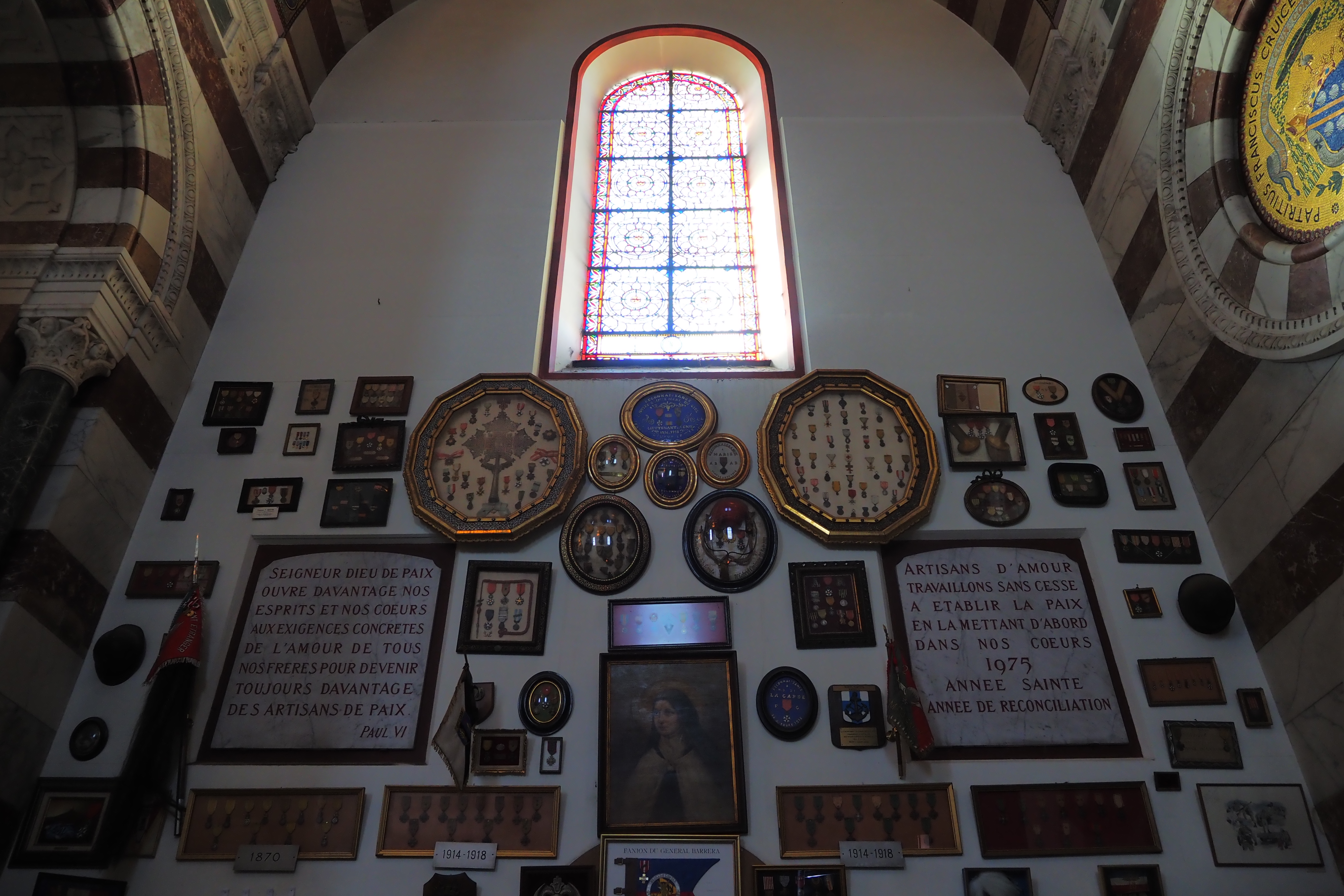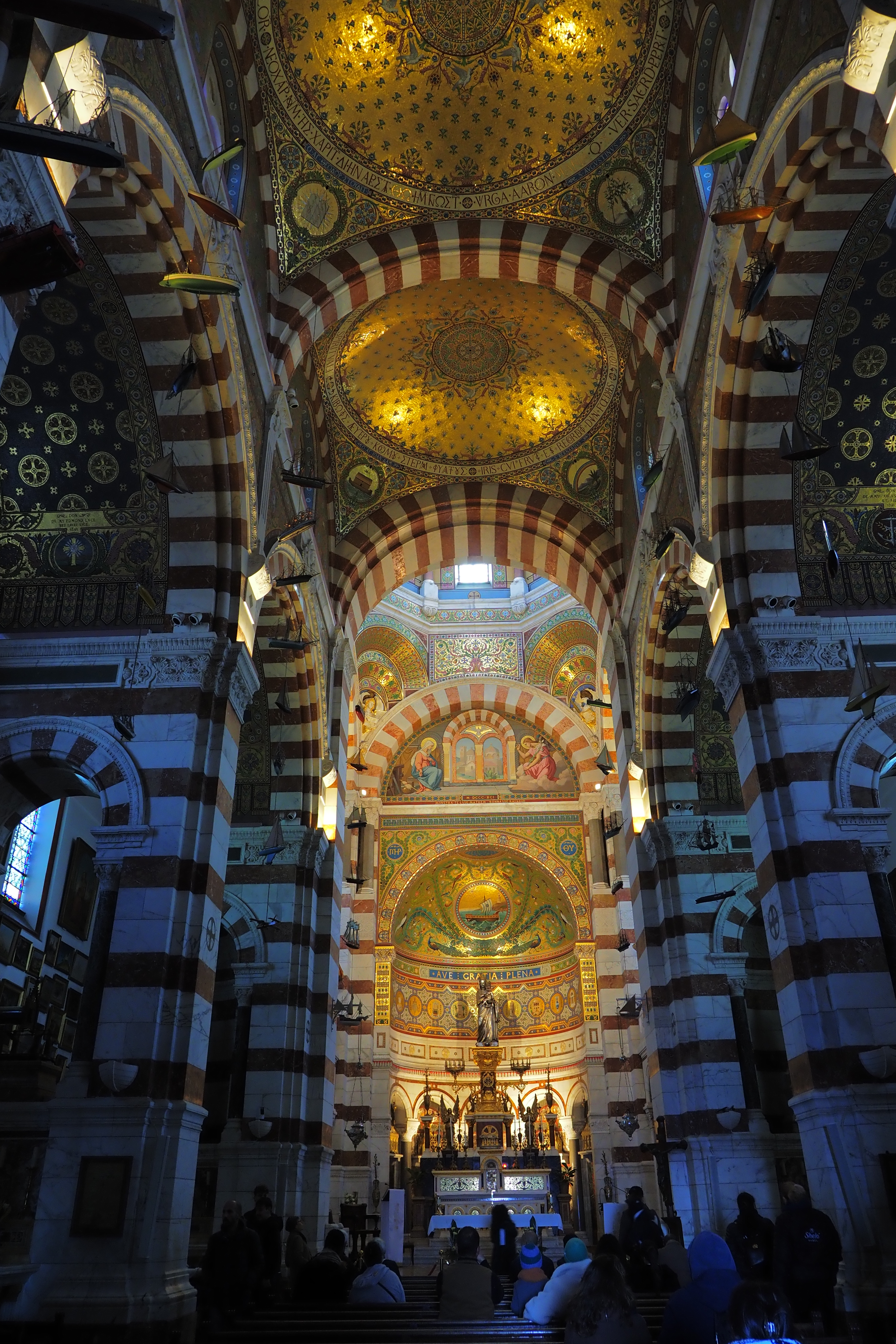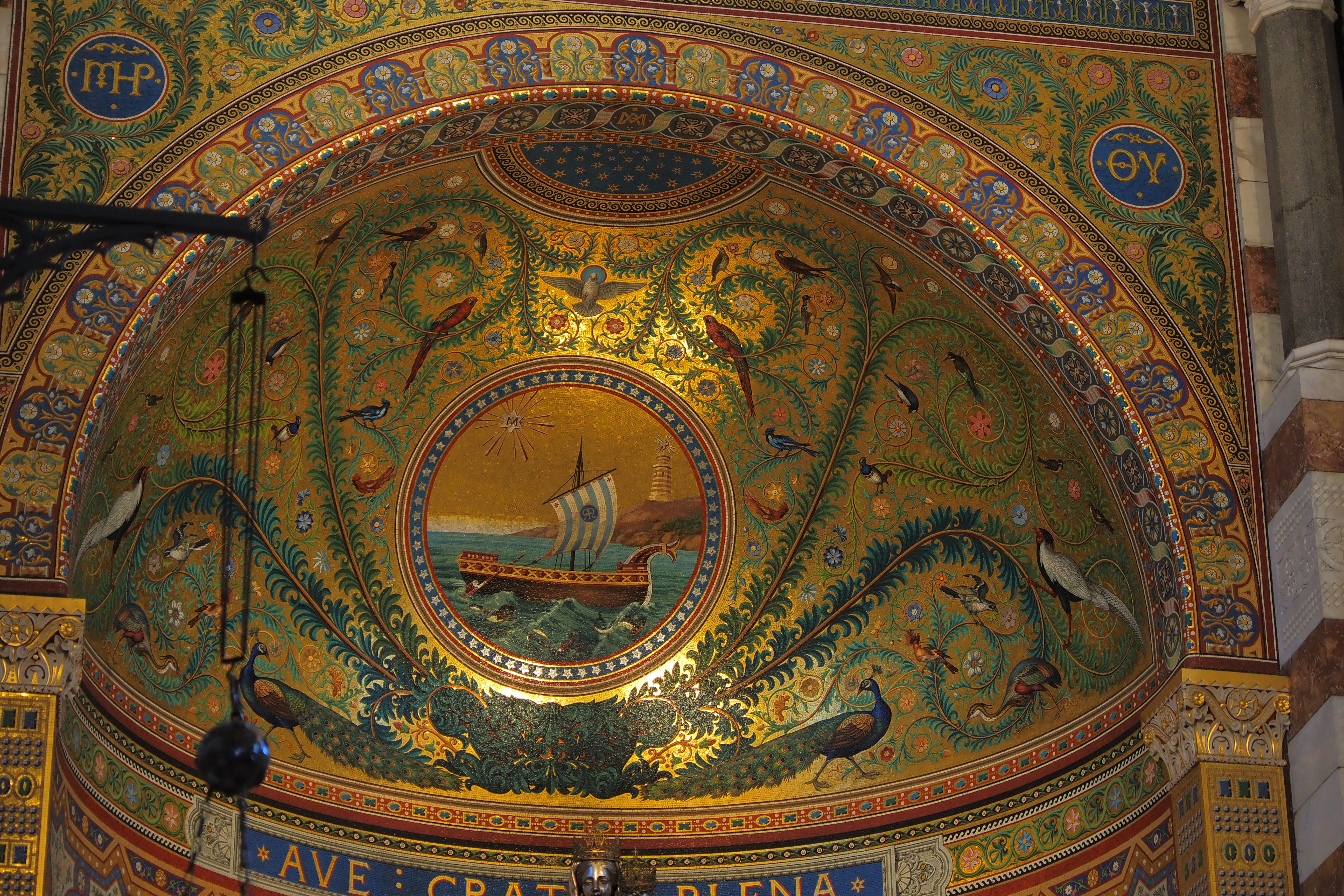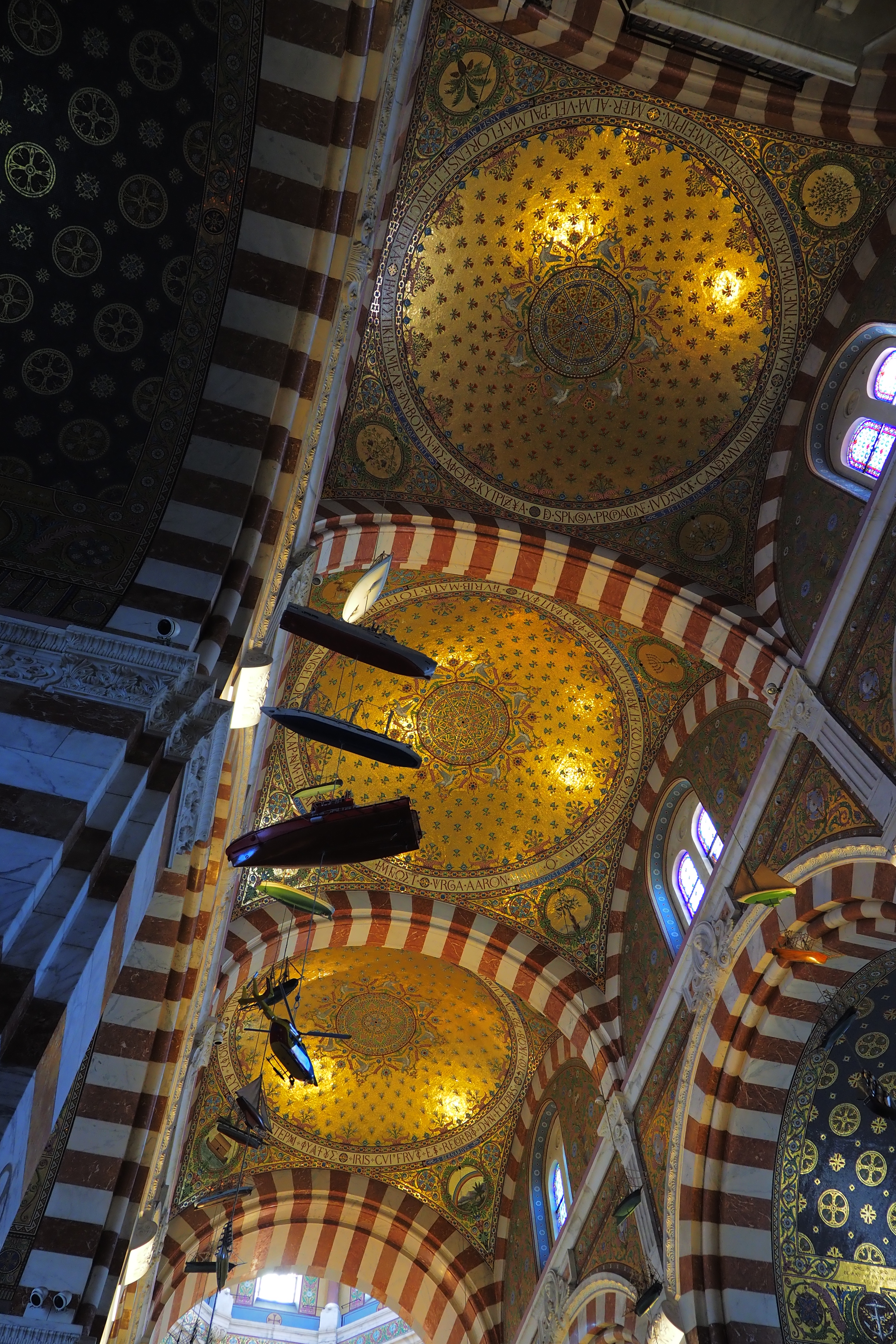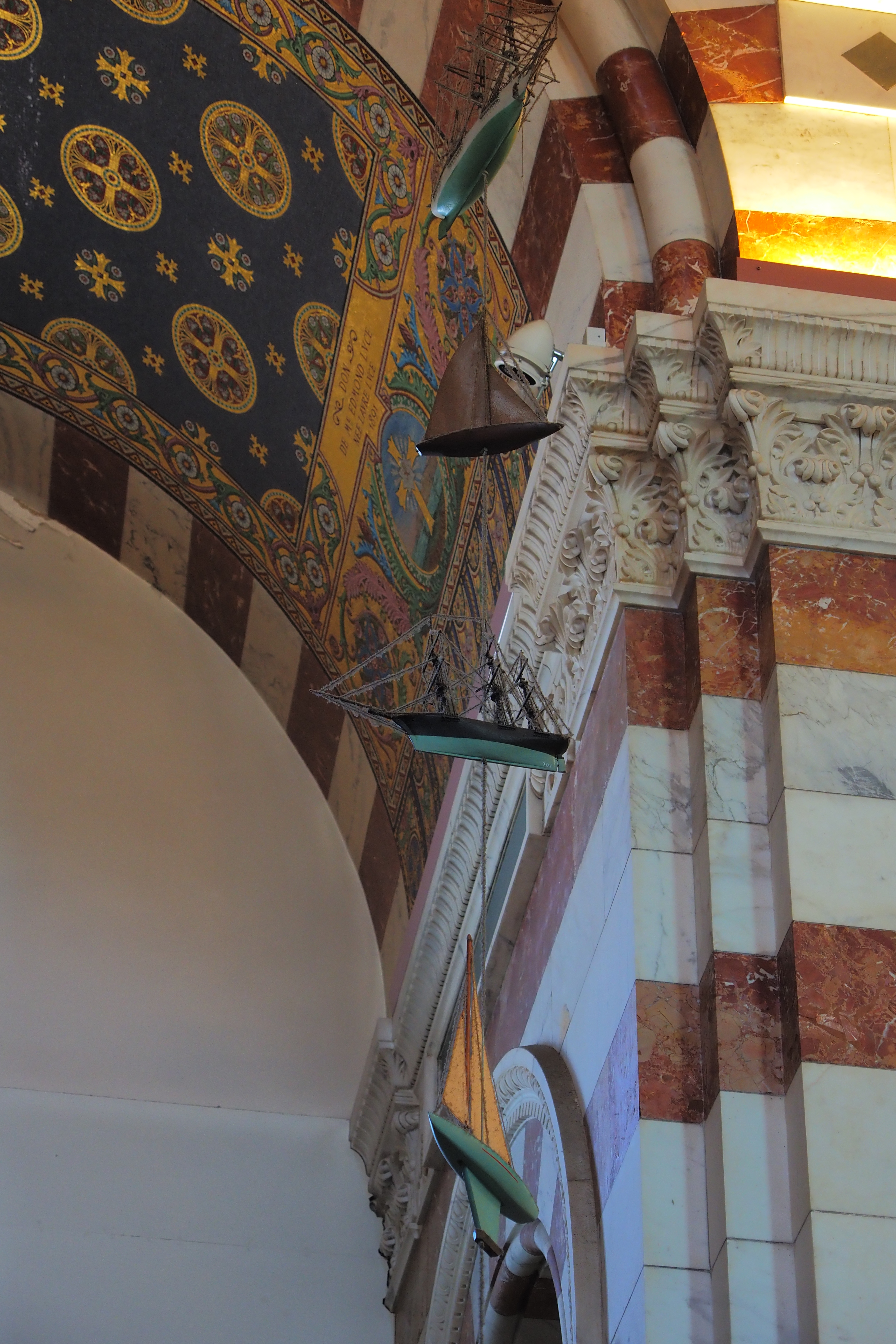 これはこの教会ならではの Ex-Voto; 感謝の奉納品 で、航海から無事に帰還した船乗りたちが教会に寄進していったものらしい。海と深い結びつきのあるマルセイユならではといったかんじだろうか。
