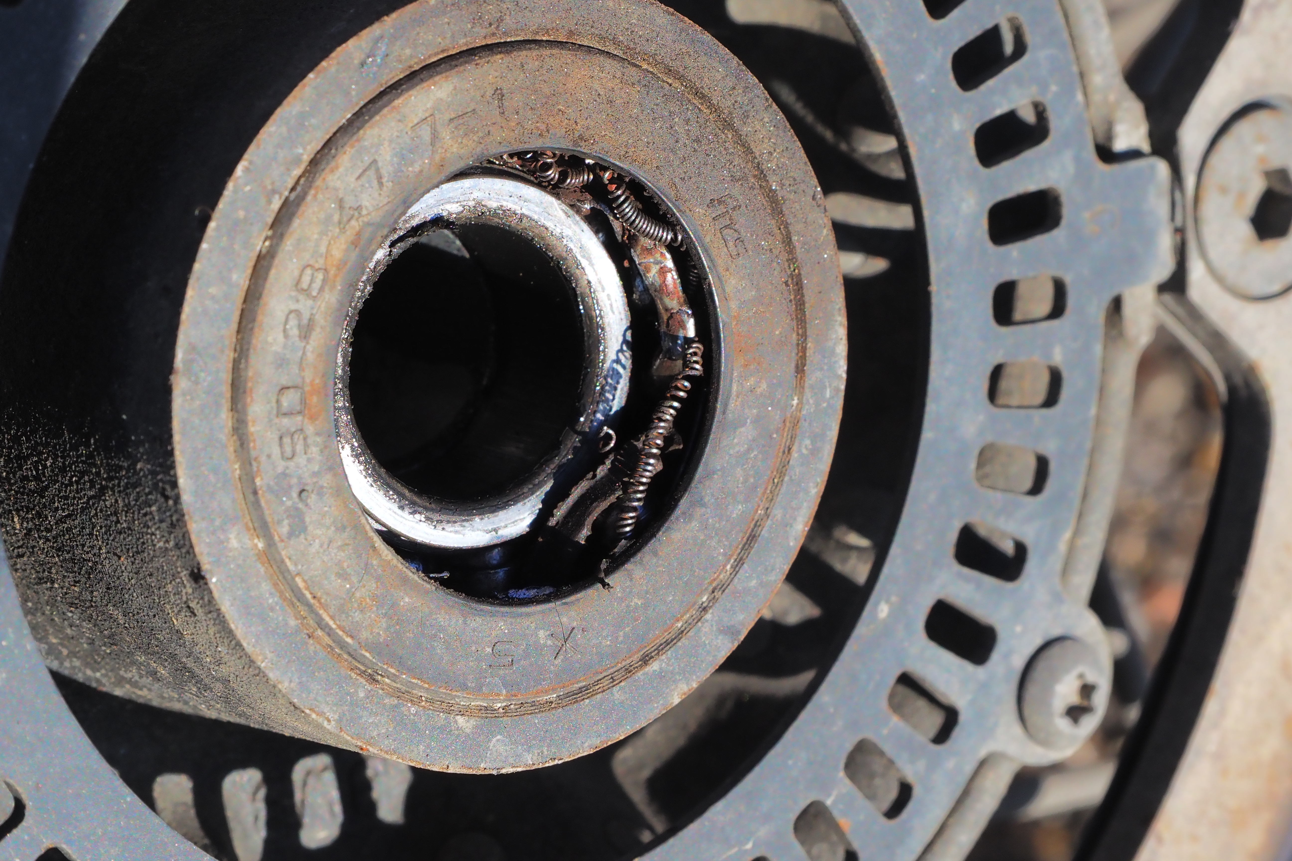 なんとリアホイールの右側のハブベアリングが完全に破損しているじゃないか!