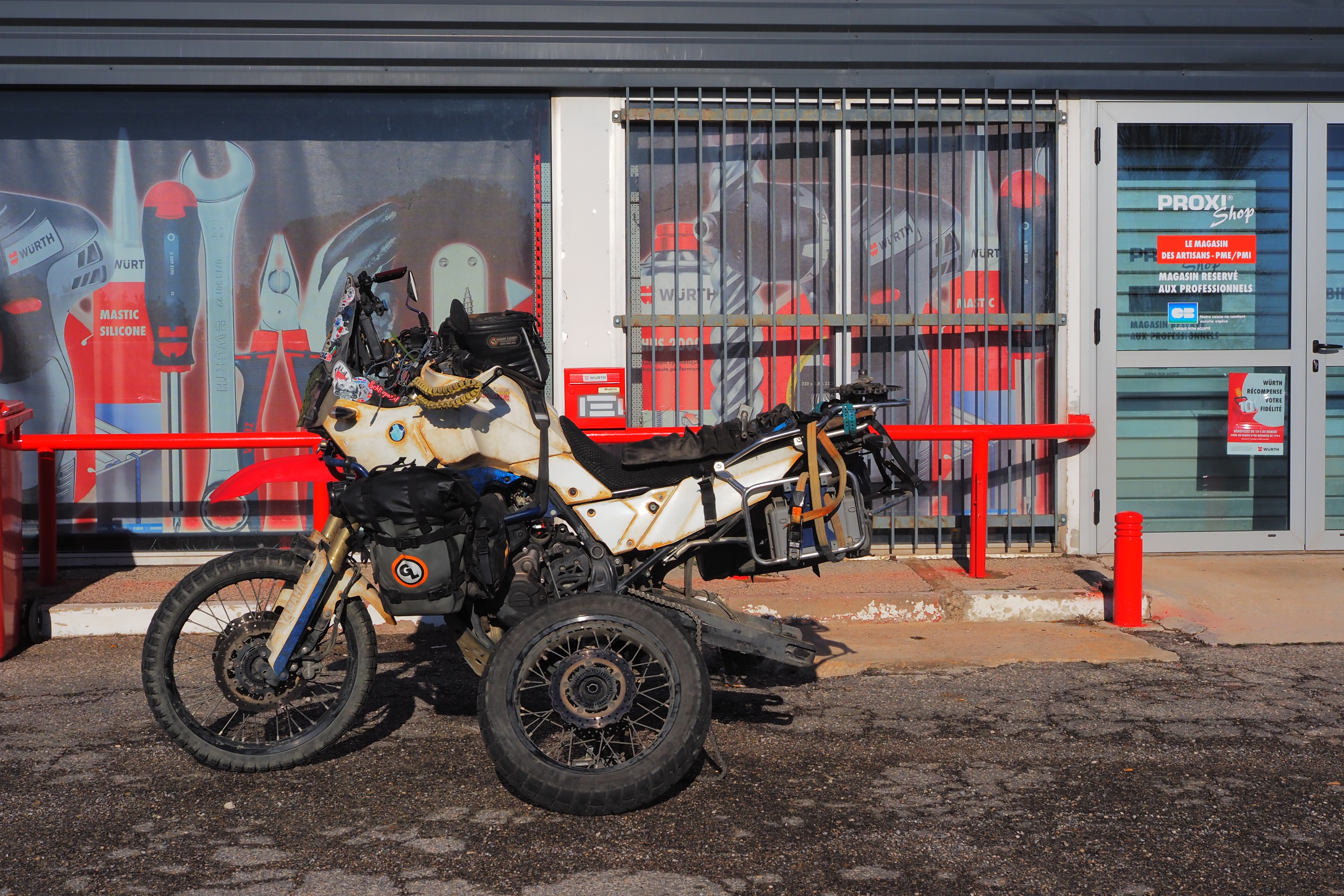 一度バイクと荷物を Arnaud 家のガレージに置かせてもらう。