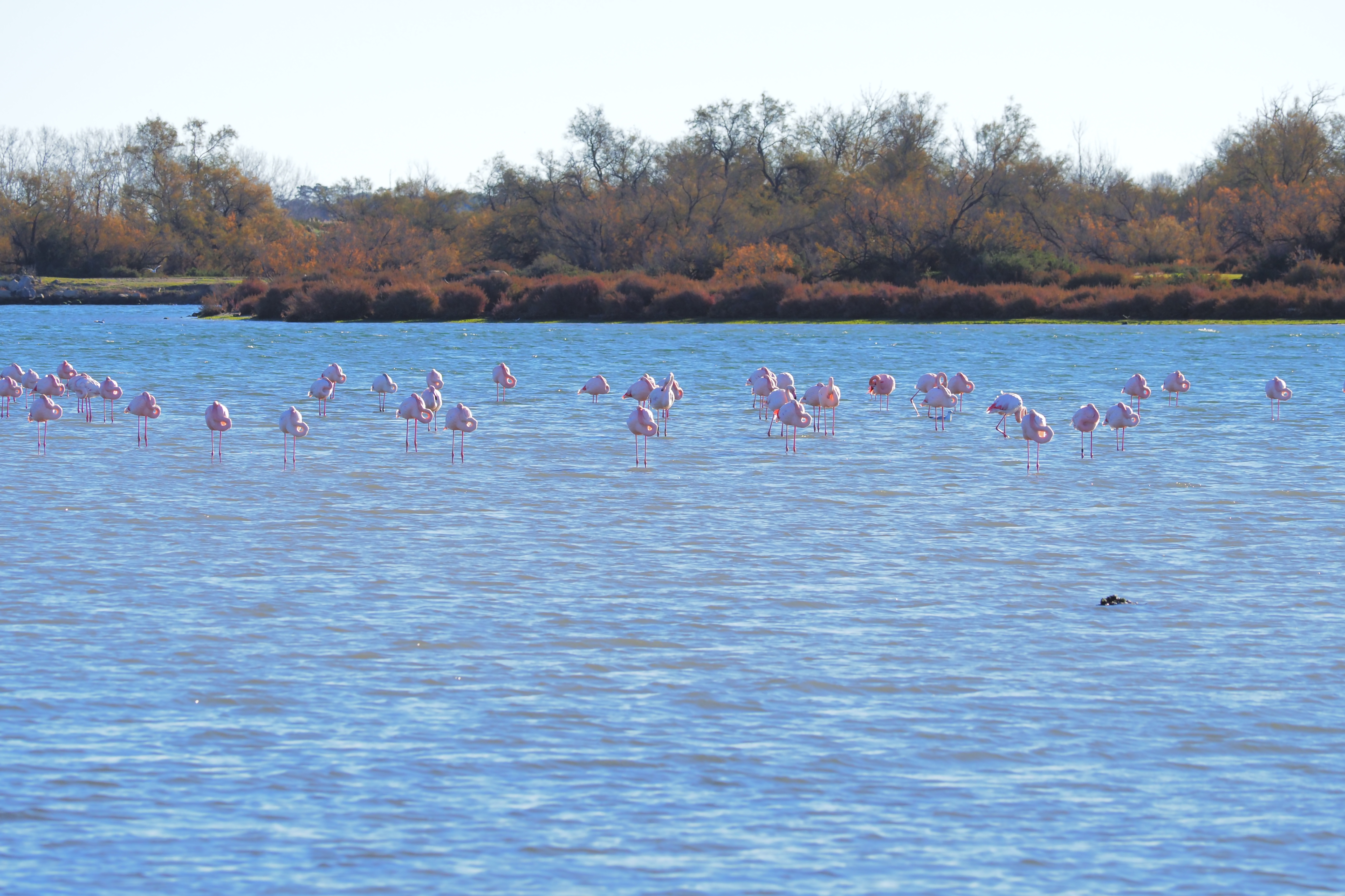 「カマルグの白い馬」を発見することはできなかったけど、点在するラグーンにはフラミンゴの群れを見つけることができた。