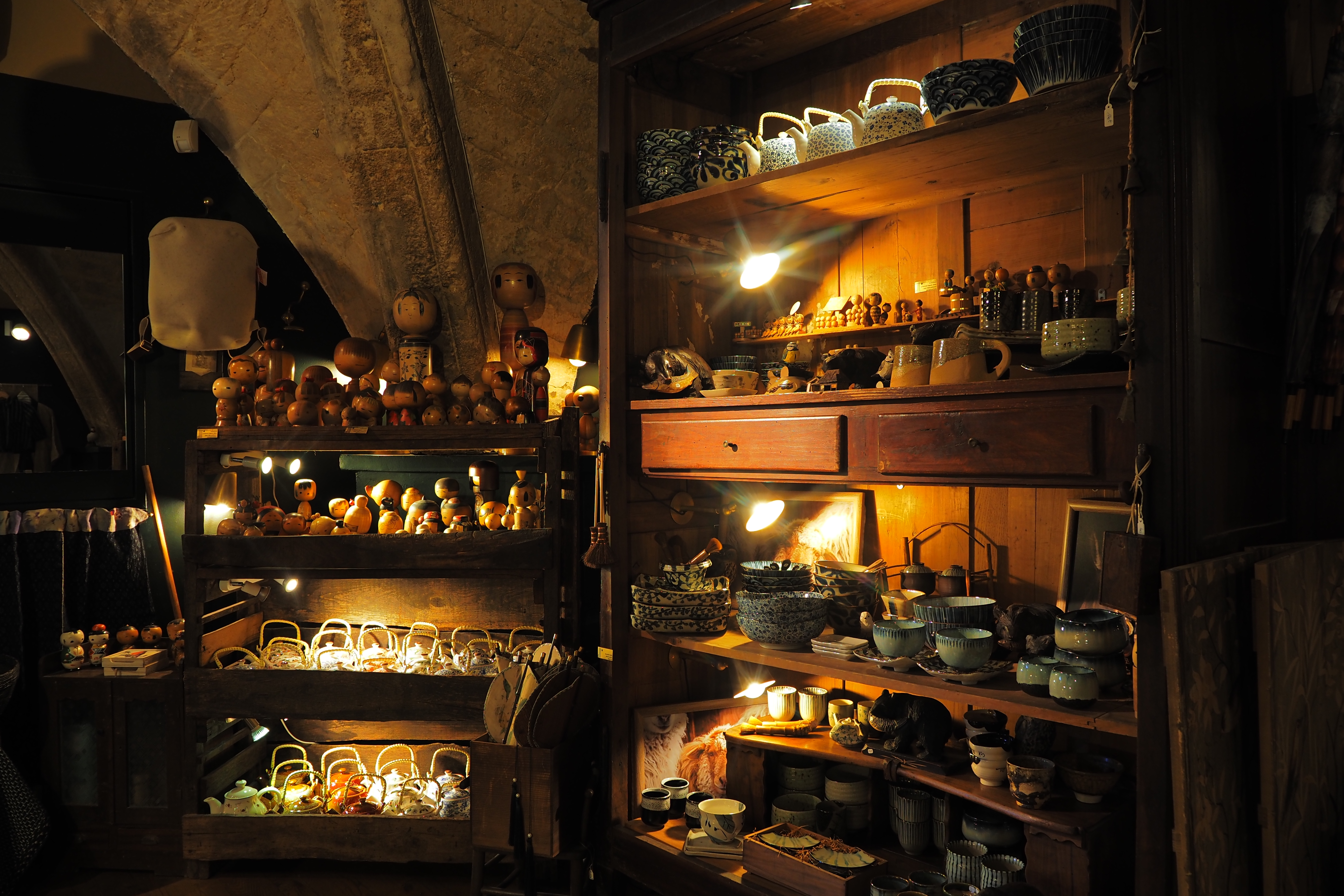 石造りの外壁に溶け込んだ素敵な和雑貨屋さんがあった。