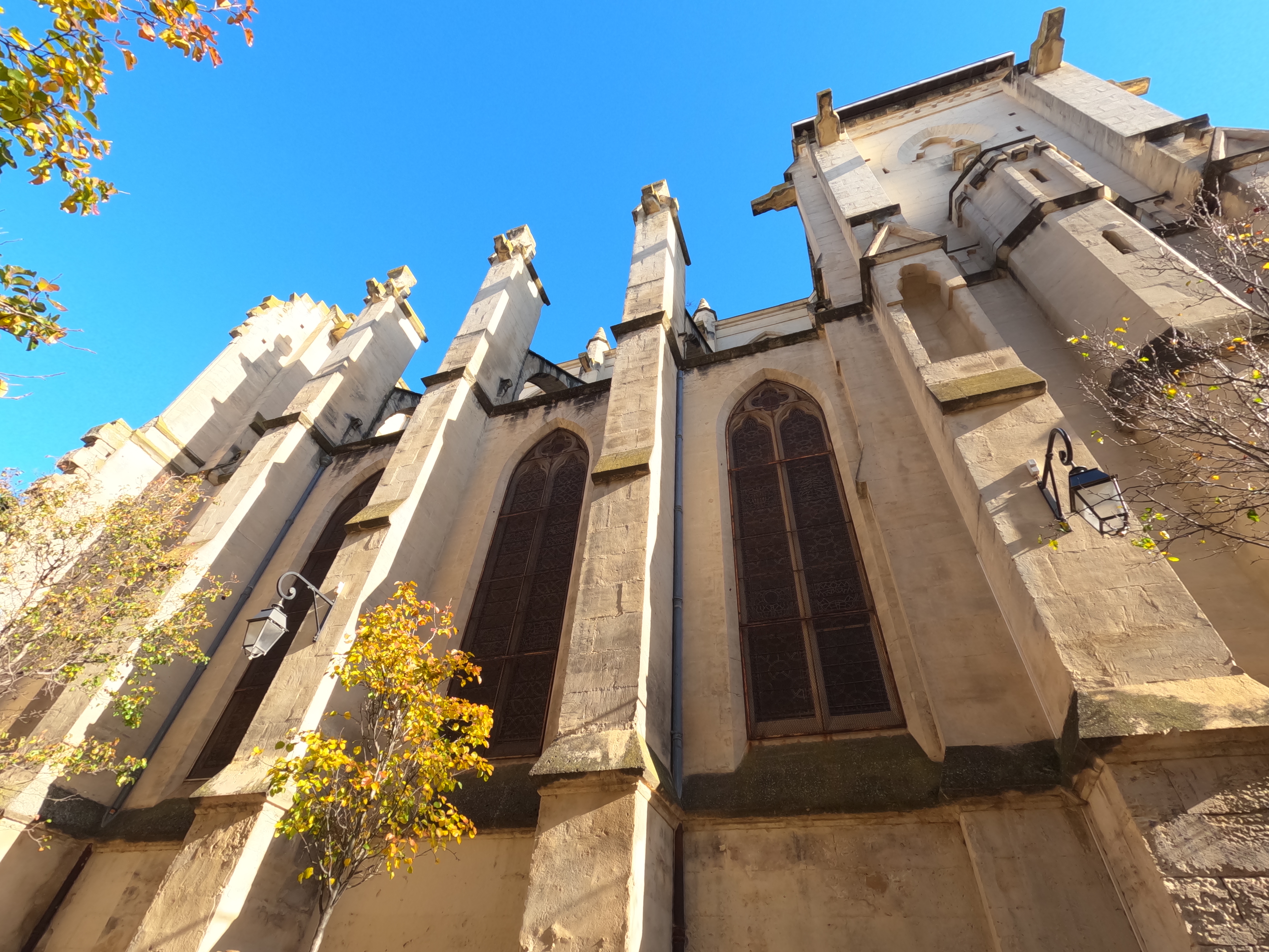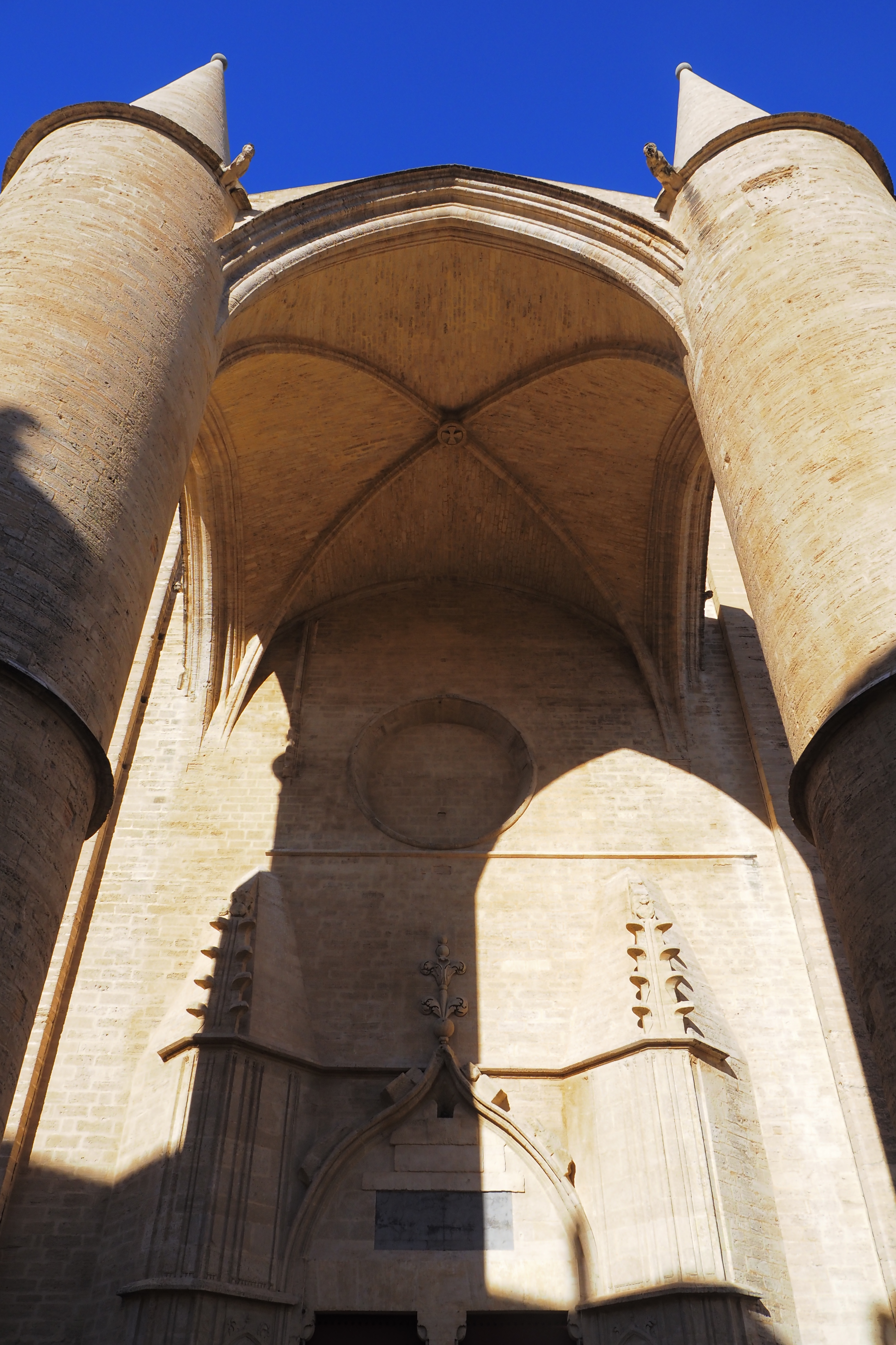 この特徴的な見た目は、ゴシック様式の中でも gothique méridional; 南フランスゴシックと呼ばれる様式で、元々の発生由来が軍事建築から引き継がれてることによって北フランスのゴシックより、少装飾で頑強・戦闘的なフォルムをしてる。うん、かっこいい!