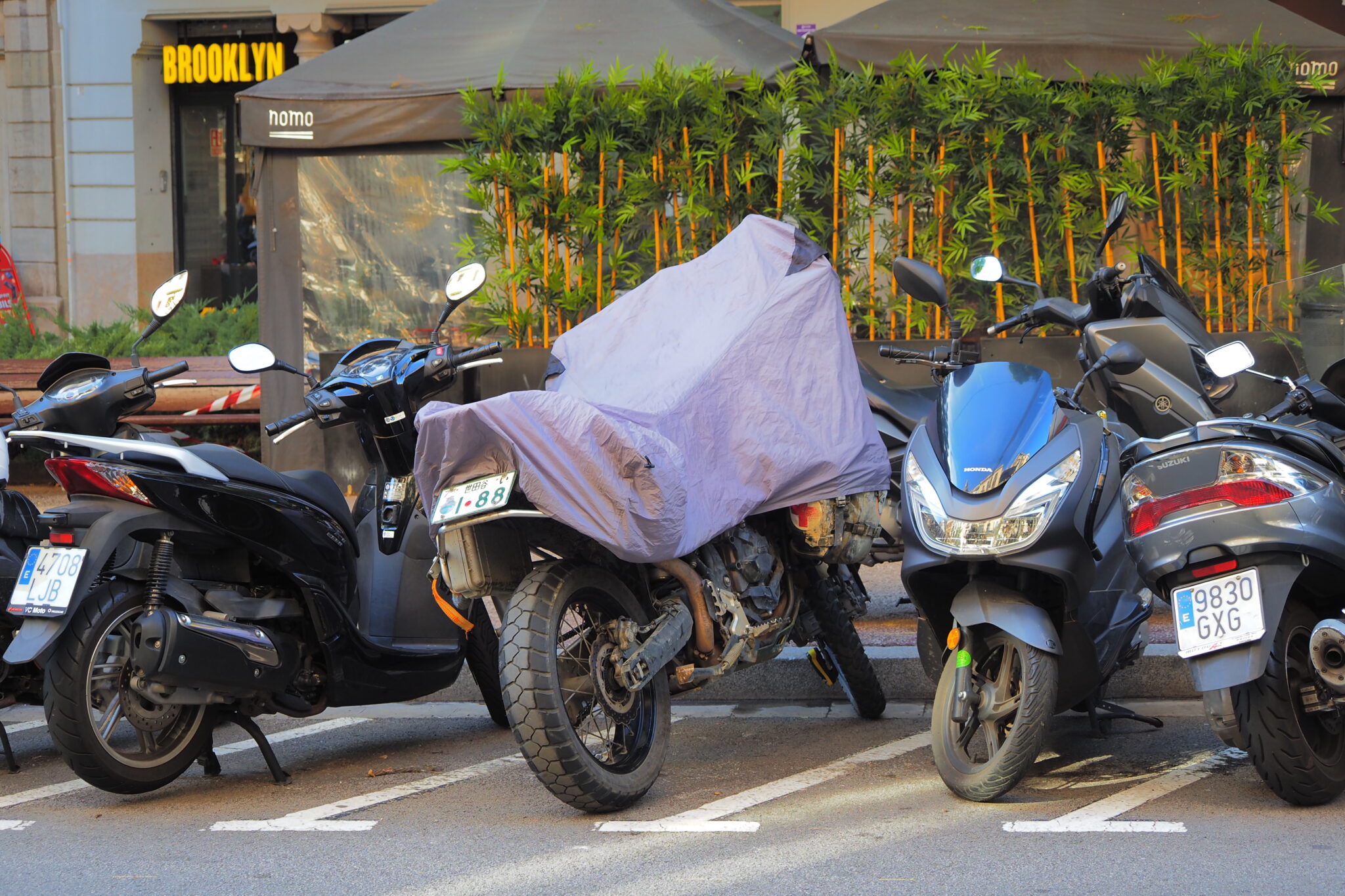 西ヨーロッパの都市部では、荷物は全部外してカバーをかけた上でディスクロック。一般的な印象としては、中東=危険で、ヨーロッパ=安全 だと思うけど、バイクのセキュリティという意味では西ヨーロッパ大都市の治安が圧倒的に悪い。