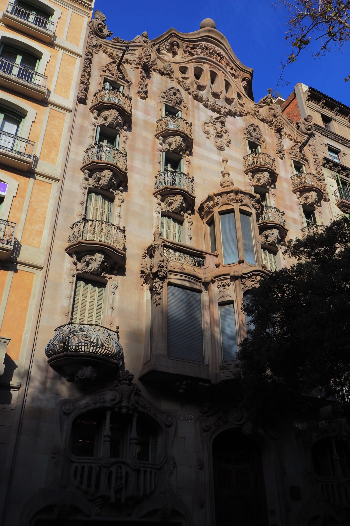 バルセロナといえば、サグラダファミリアを始めとしたガウディ建築が何よりも目玉だと思うけど、何気なく街角に建つ建物がこのクオリティで大量に散りばめられてることにも注目したい。