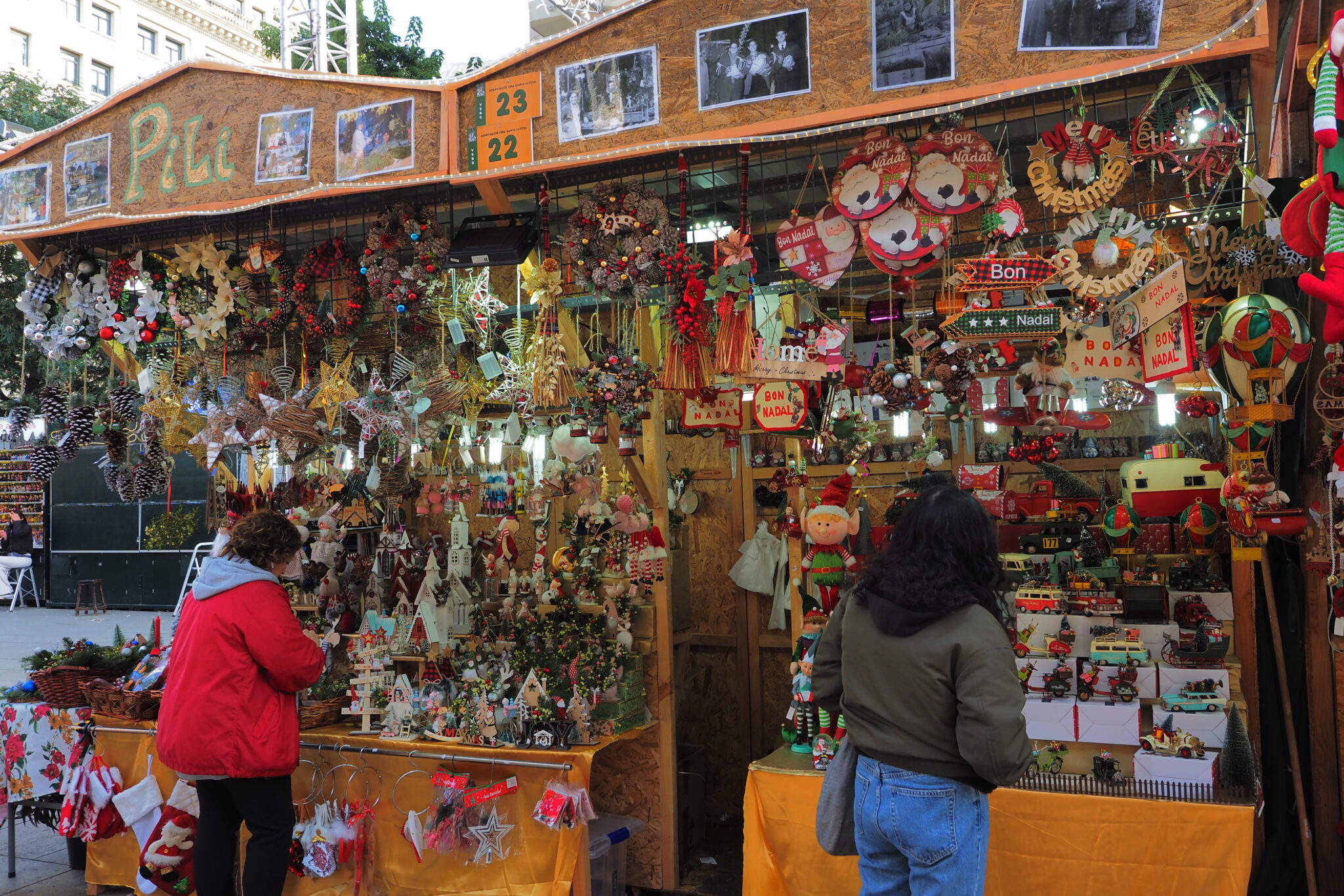 どこも賑やかなクリスマス用品店。