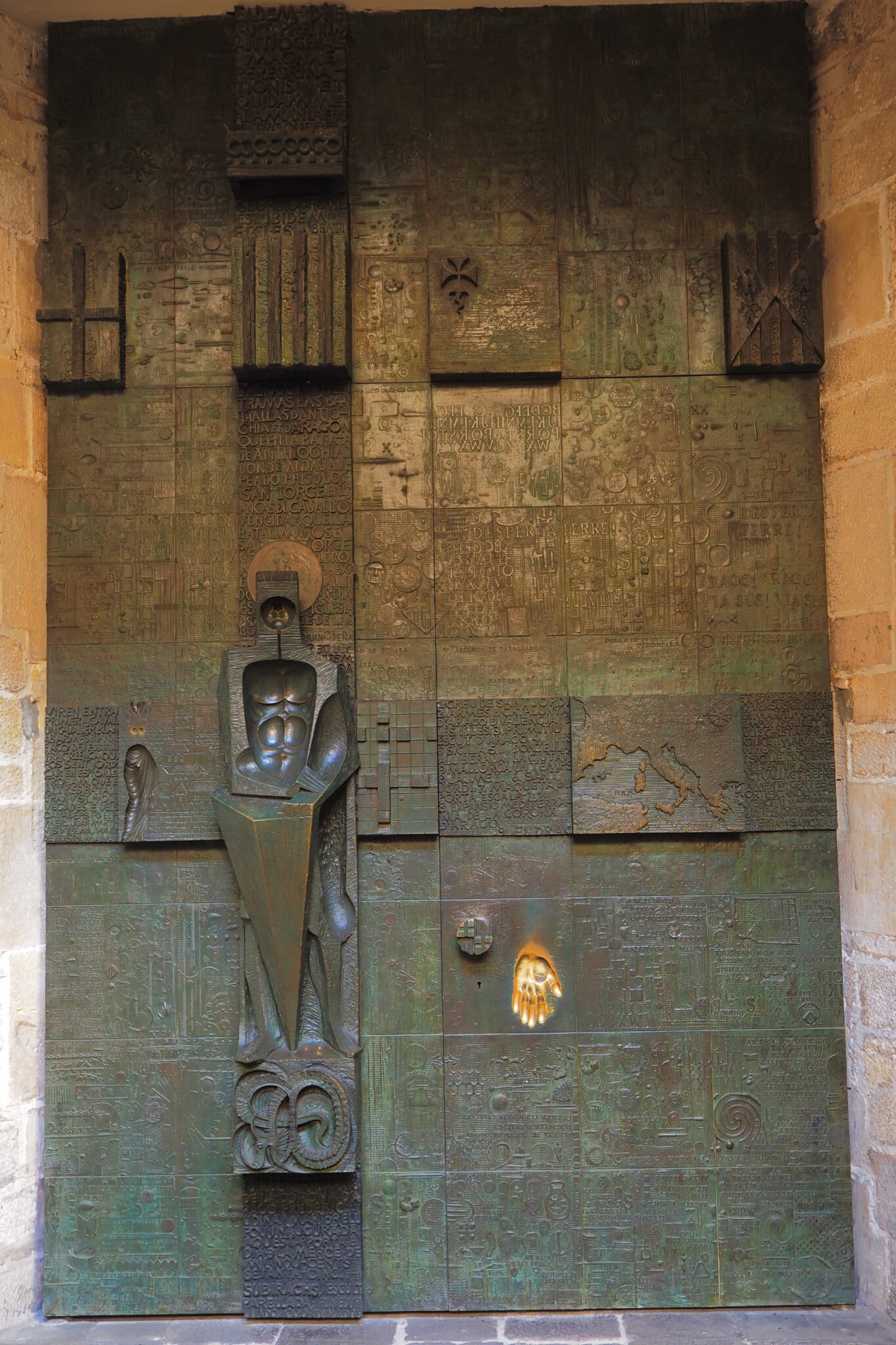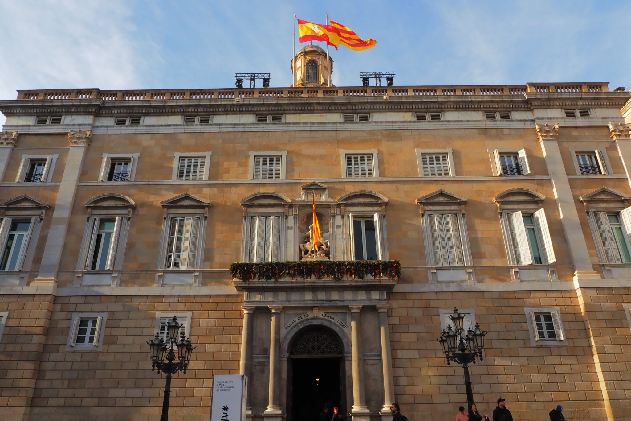 広場の西側にある吹き抜けの空間 Palau del Lloctinent; 副王の間, 内部の階段を上ったところには、現代彫刻家によって1975年につくられたブロンズ製の扉 Porta de Sant Jordi; 聖ジョルディの門がある。