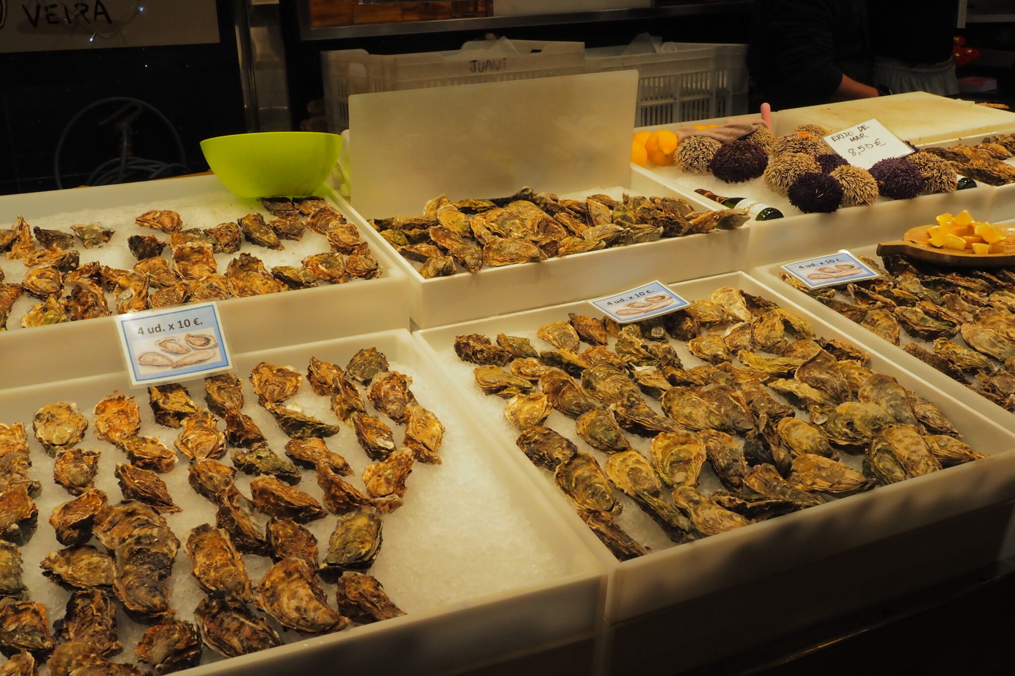 バルセロナの胃袋 と称されるだけあって、フルーツから肉、魚介に香辛料と 見てるだけでも楽しい品ぞろえだった。まぁ本当に見てるだけなんだけど。