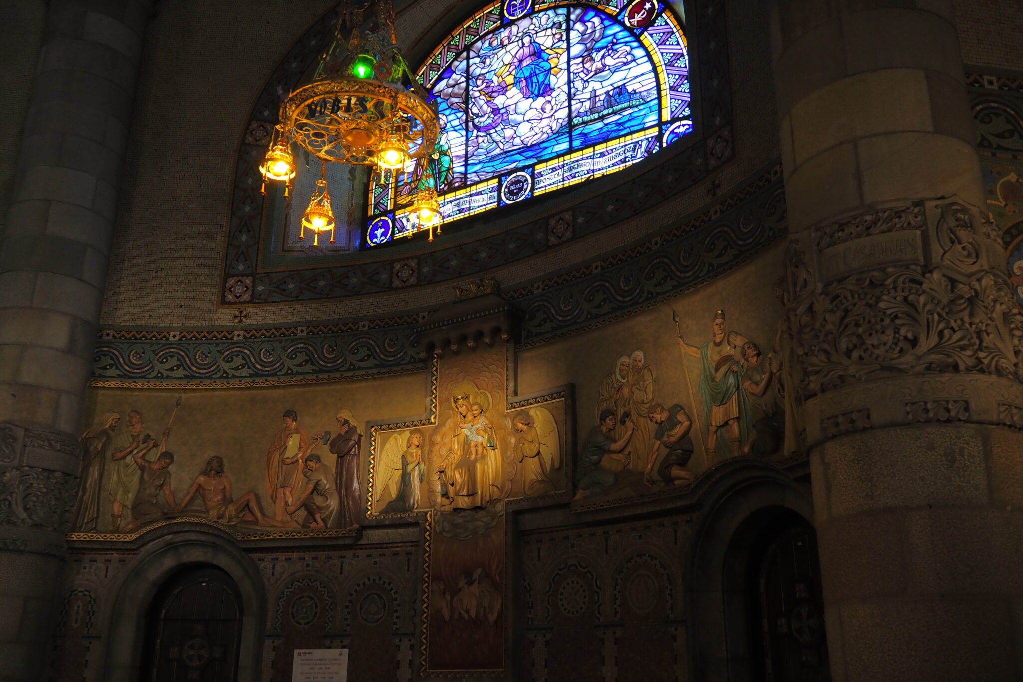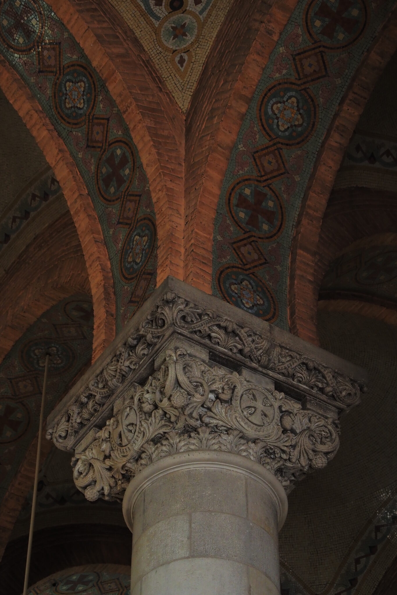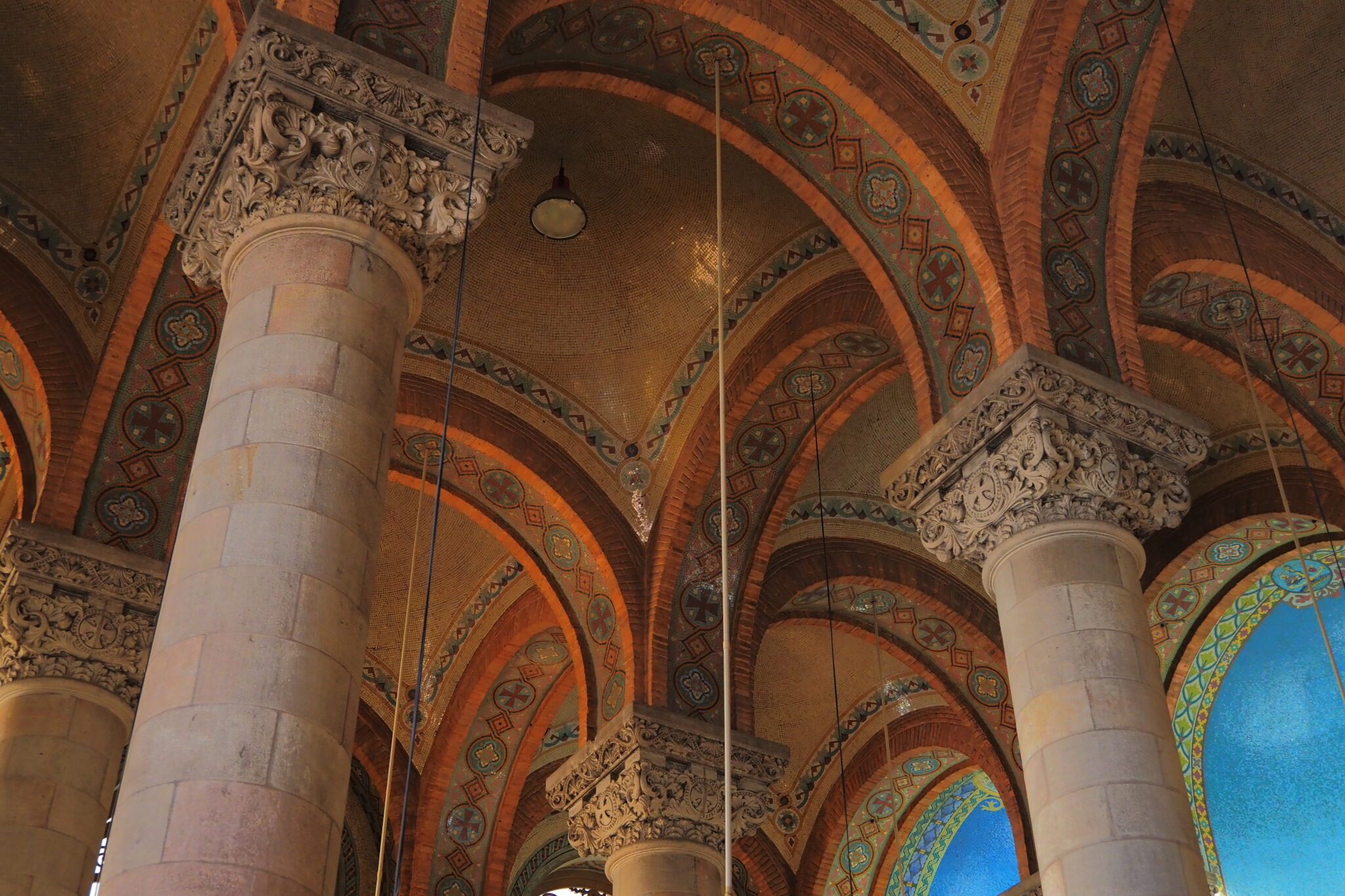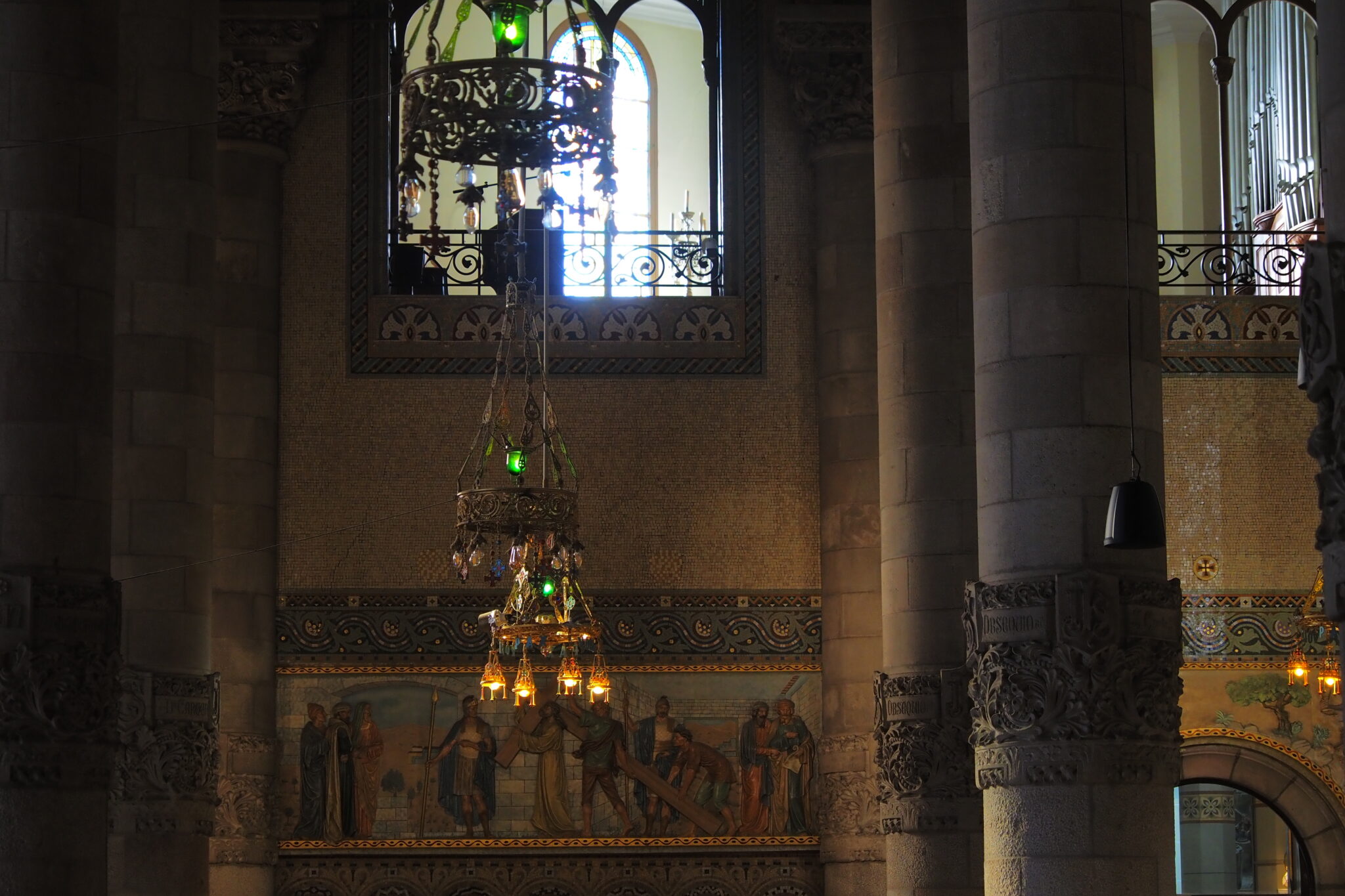 壮麗なフレスコ画に、柱にも絢爛な装飾があって、ネオ・ビザンティンにモダニズムをふんだんに取り入れた ということらしい。