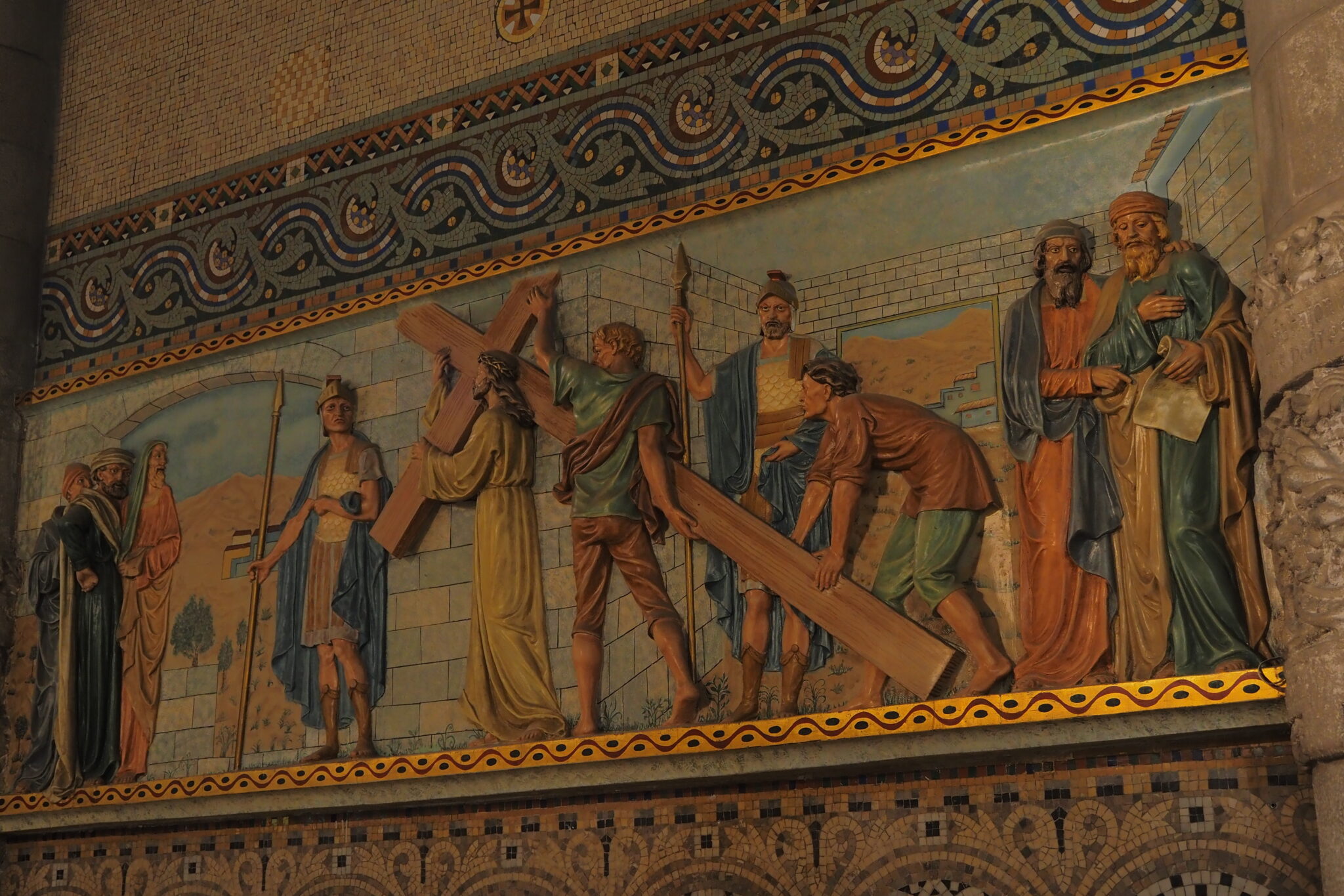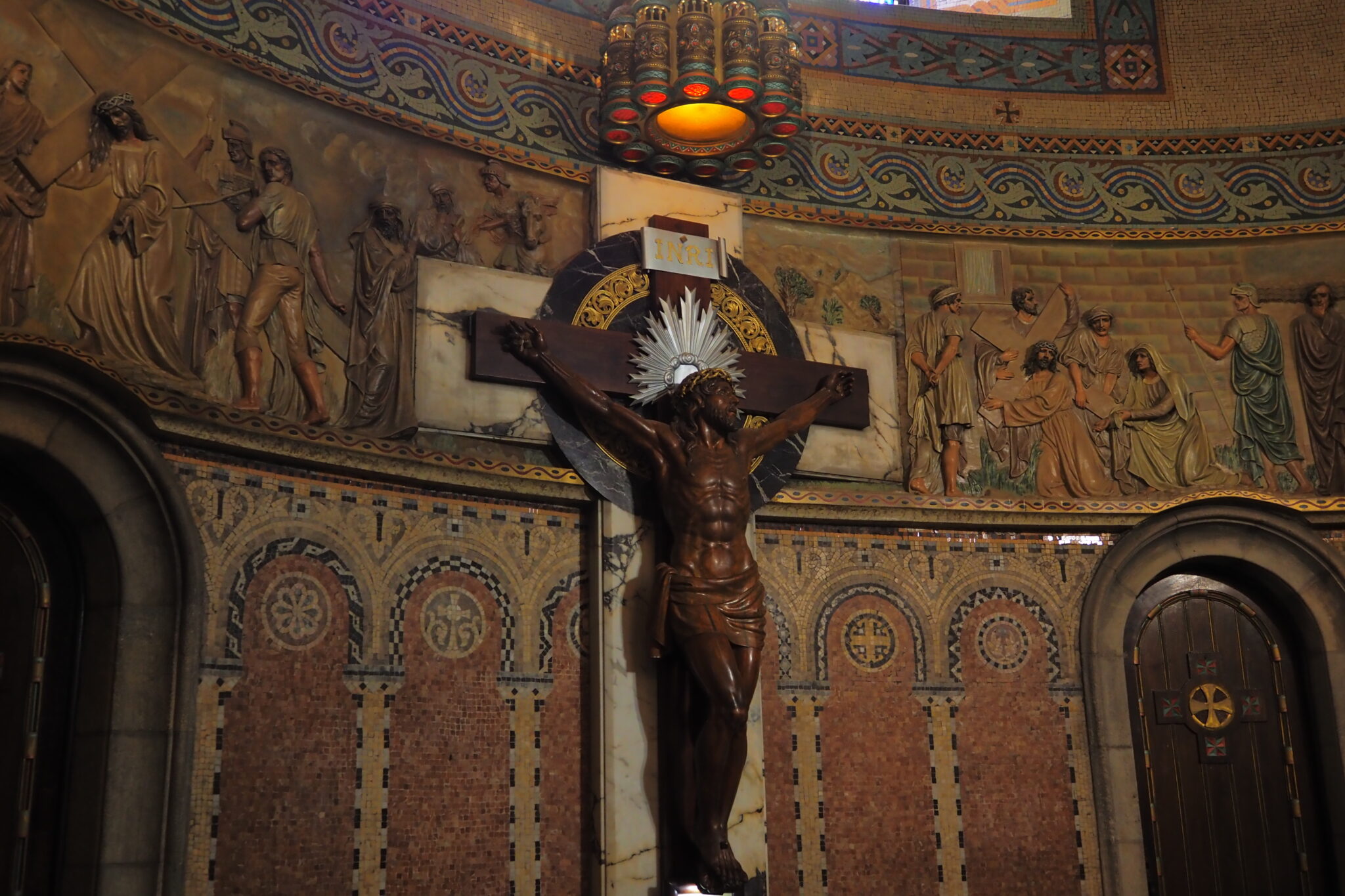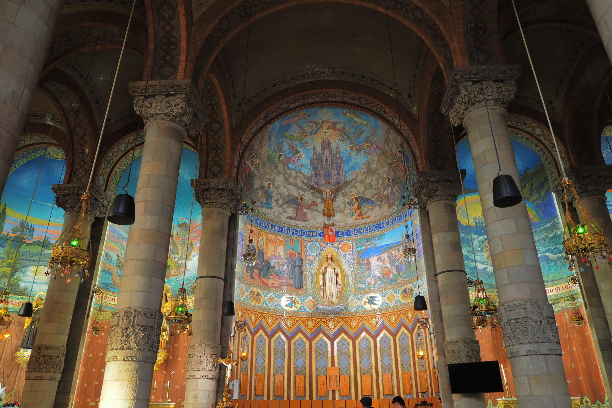 壮麗なフレスコ画に、柱にも絢爛な装飾があって、ネオ・ビザンティンにモダニズムをふんだんに取り入れた ということらしい。