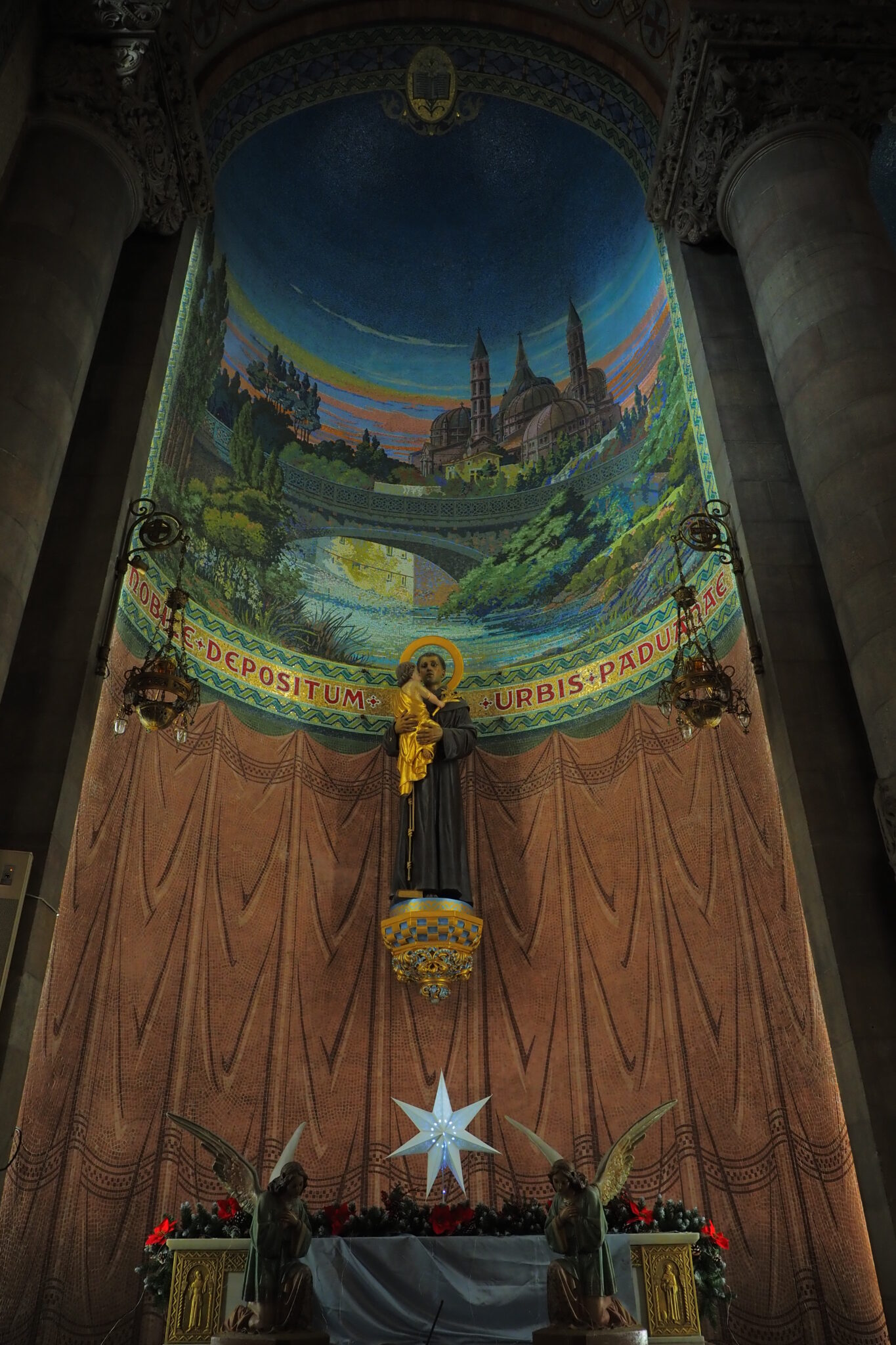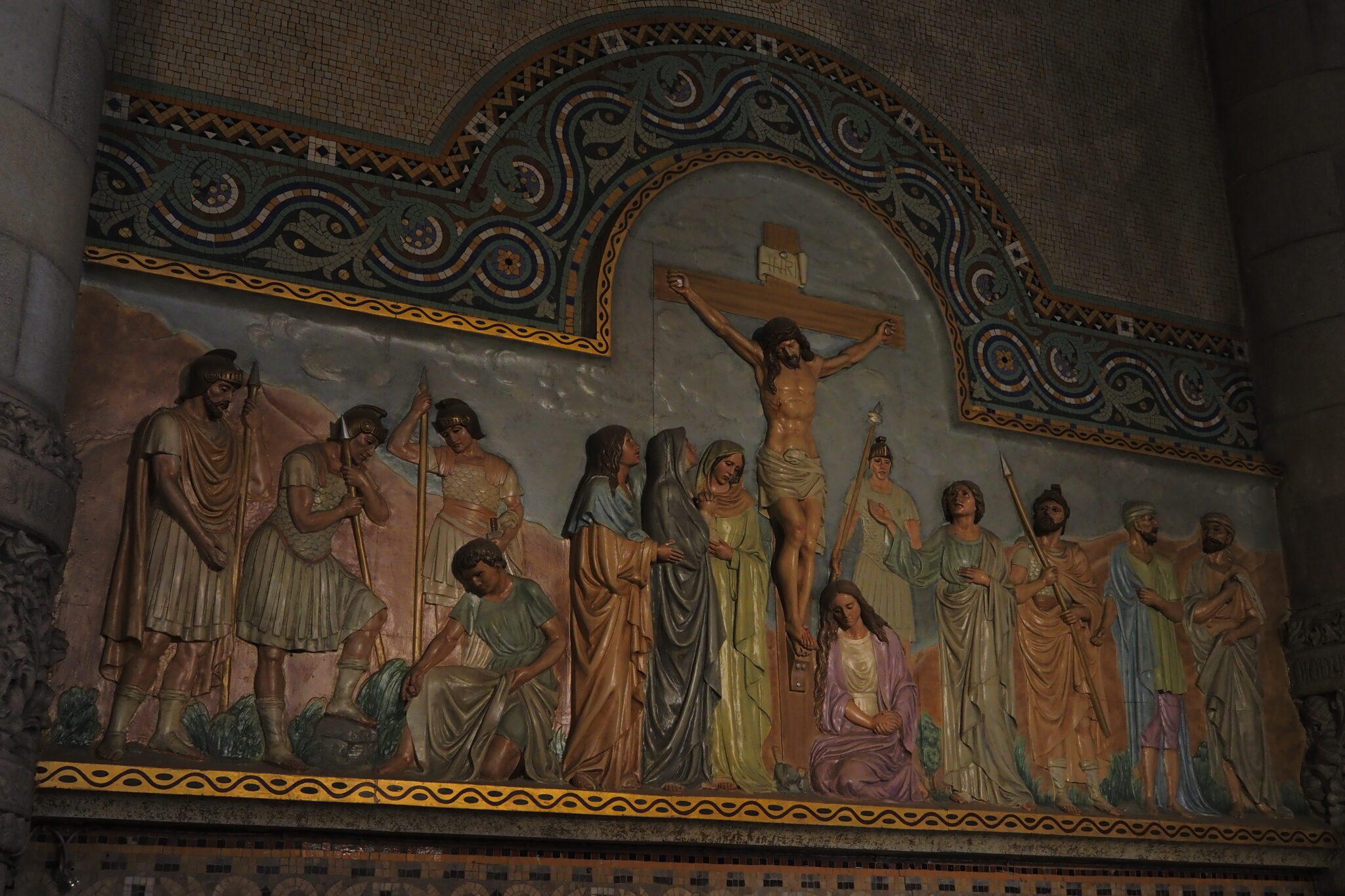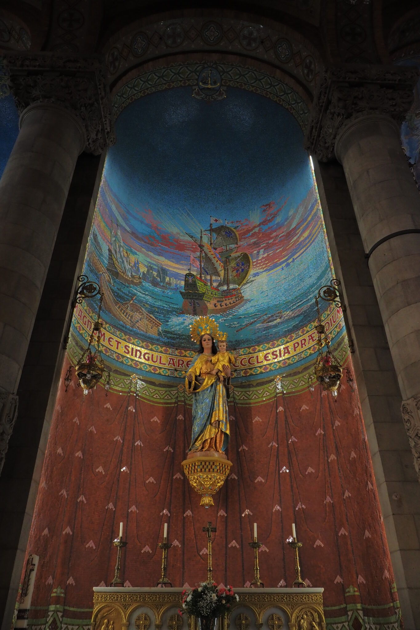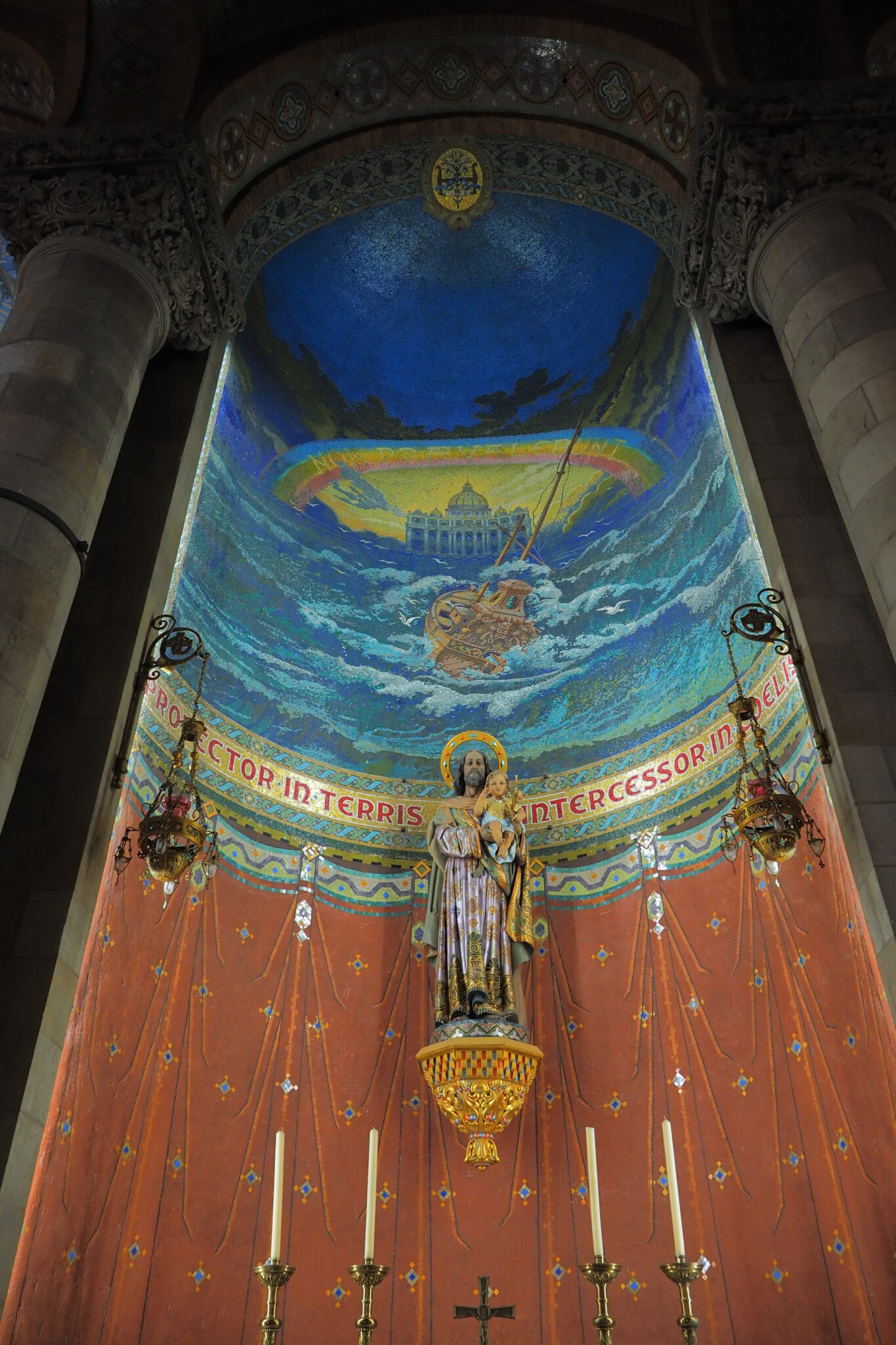壮麗なフレスコ画に、柱にも絢爛な装飾があって、ネオ・ビザンティンにモダニズムをふんだんに取り入れた ということらしい。